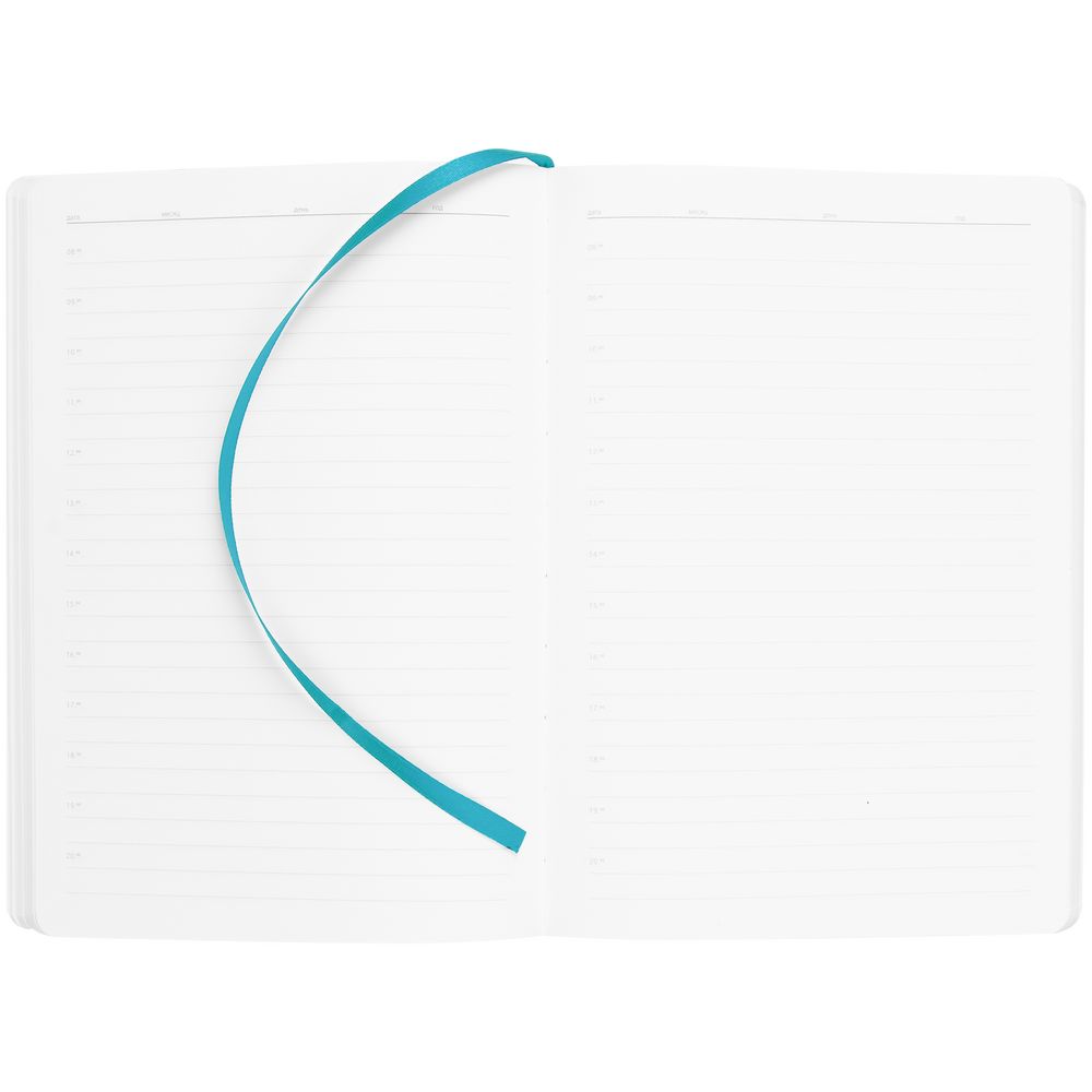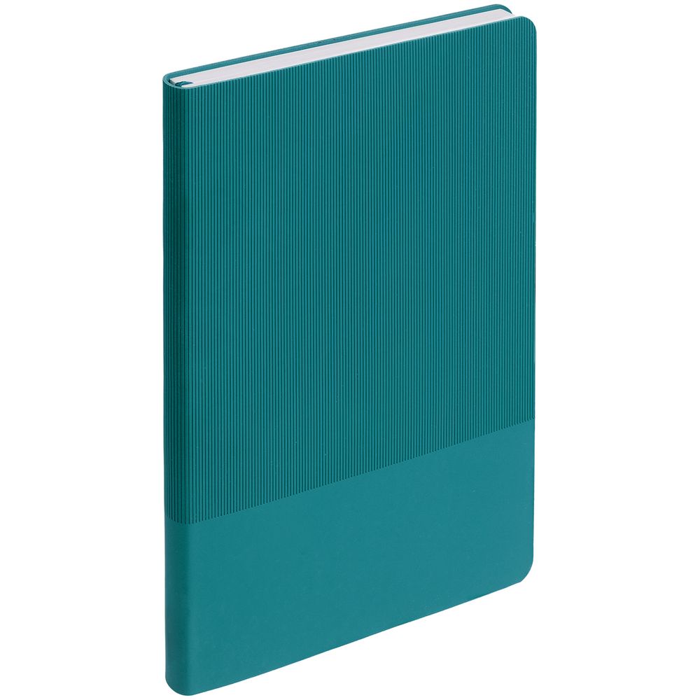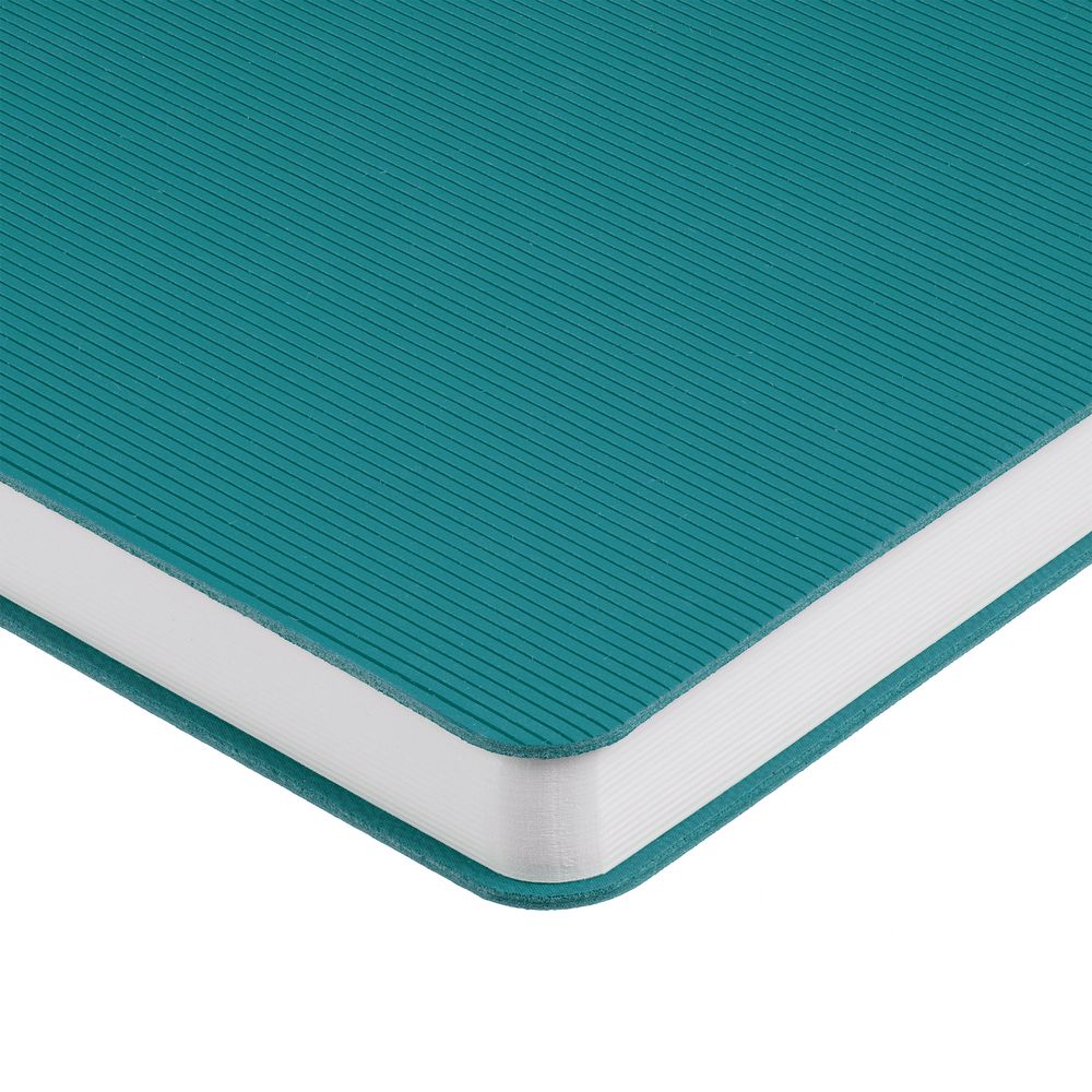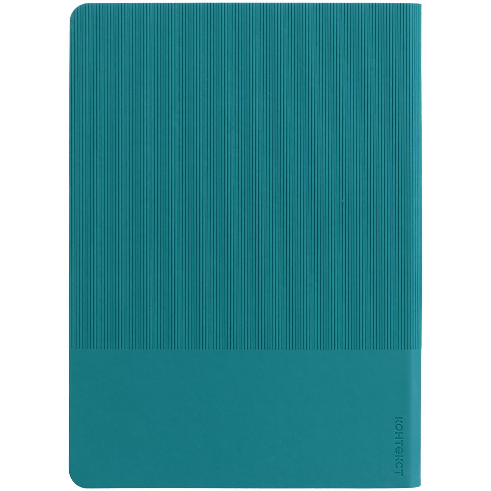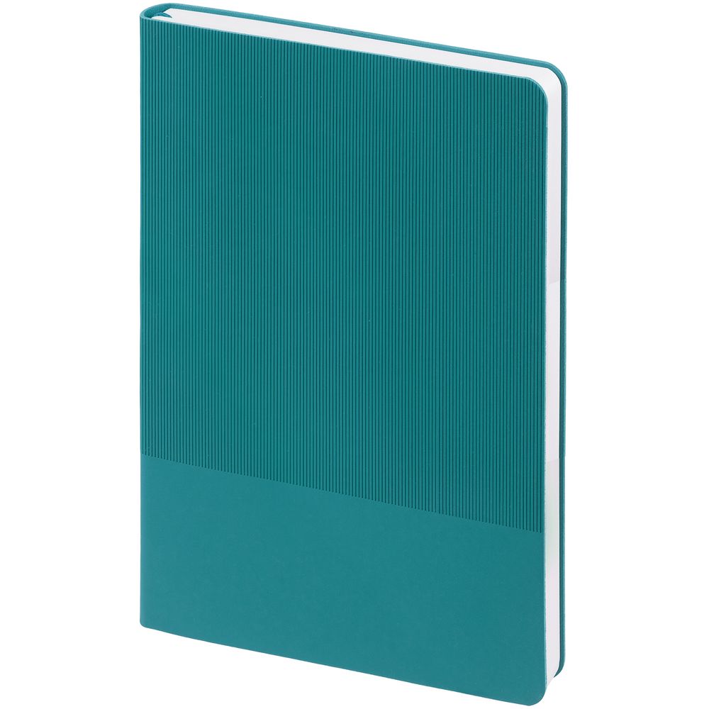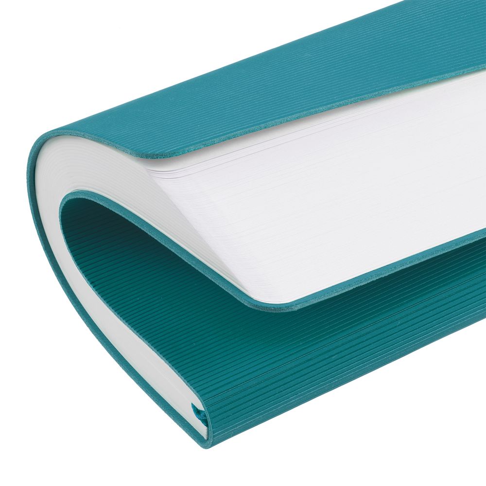 Ежедневник с гибкой обложкой выполнен из материала Soft Touch, цвет морской волны II и Latte, цвет морской волны (внутренний материал); дополнен ляссе бирюзового цвета и фактурным тиснением обложки.