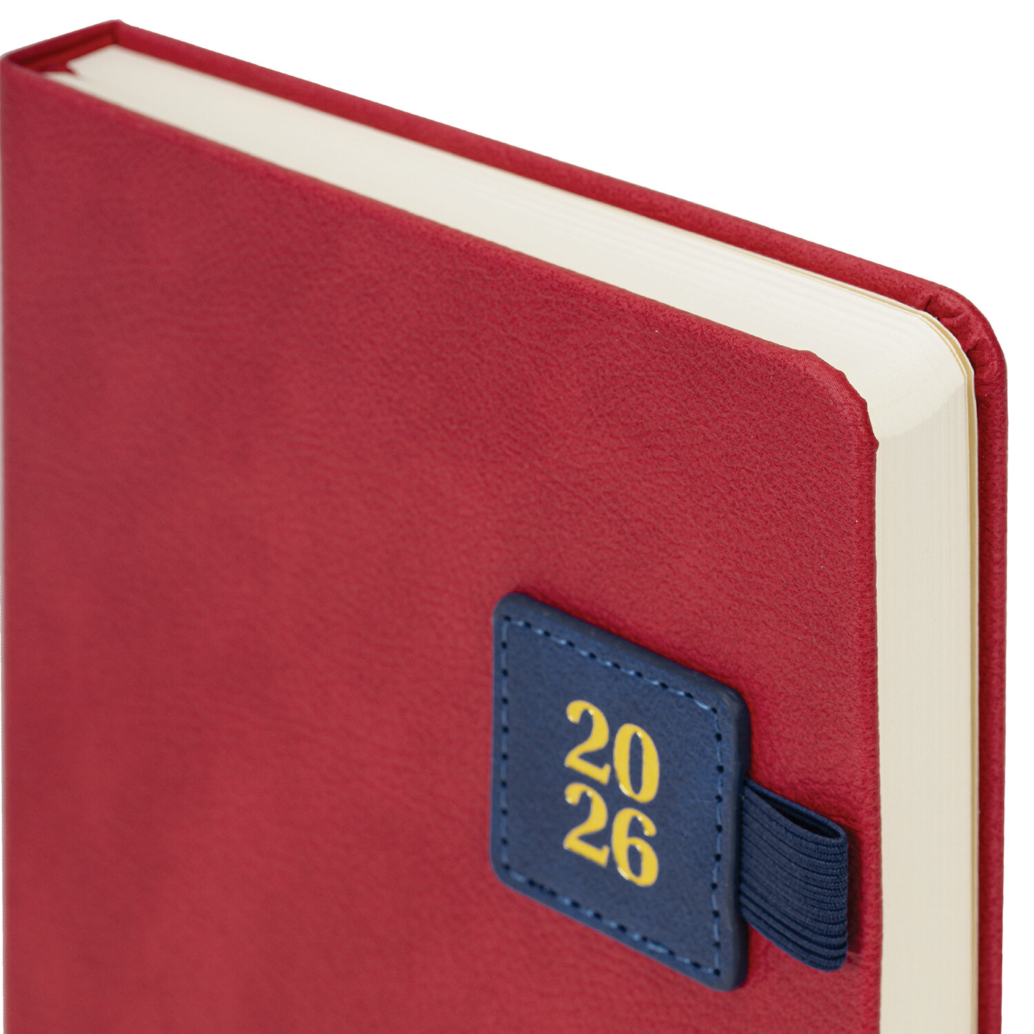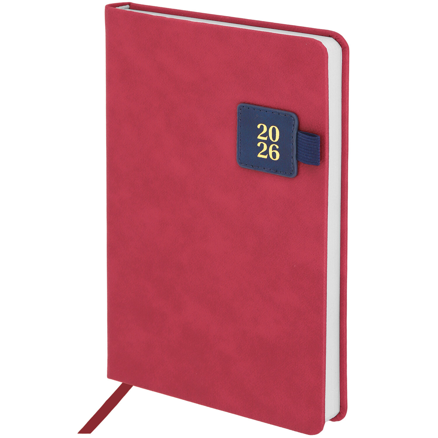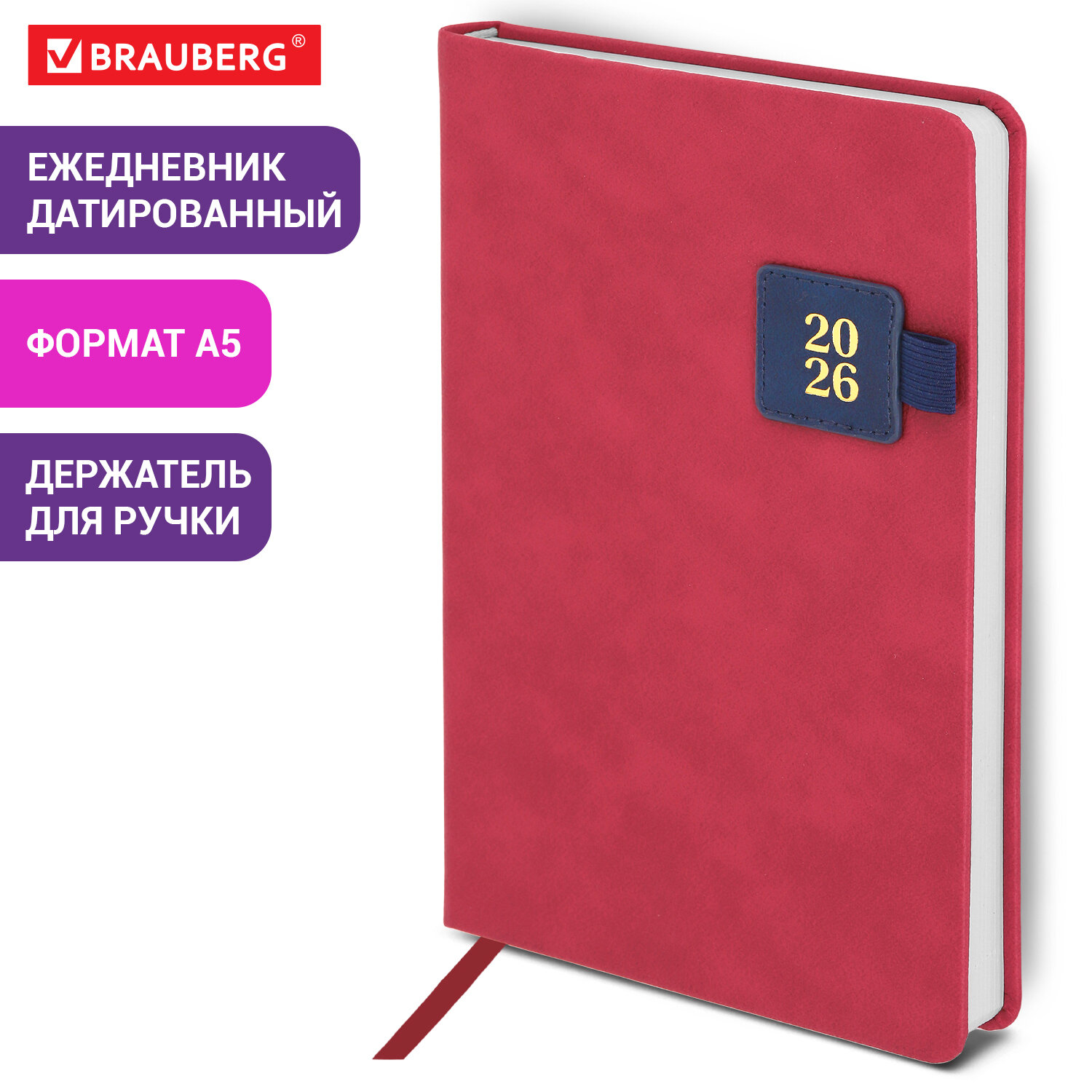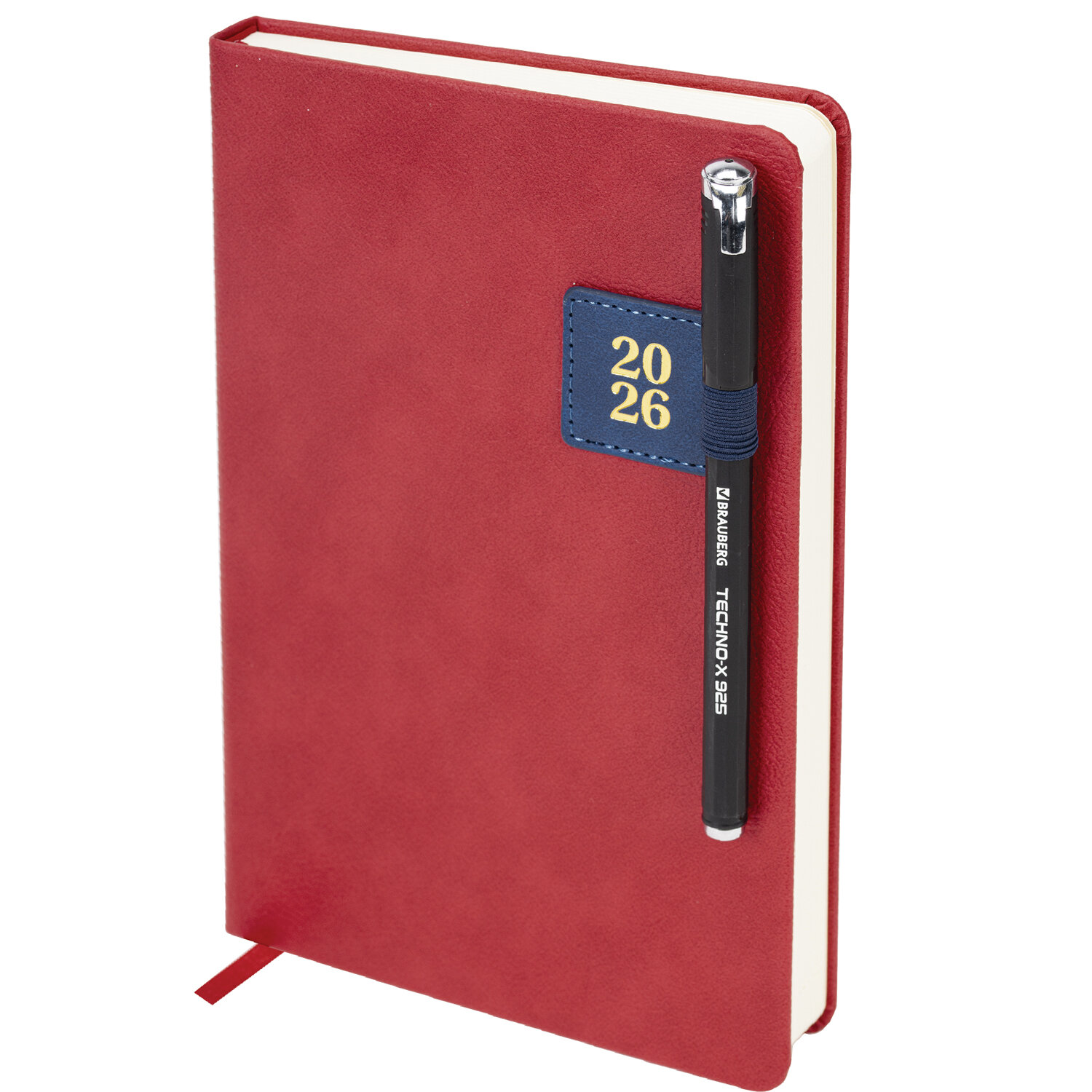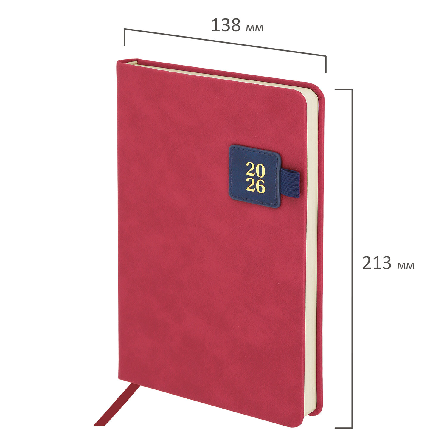 Ежедневник датированный 2026 А5 138х213 мм, BRAUBERG «Accent», под кожу, держатель, красный/синий, 117384