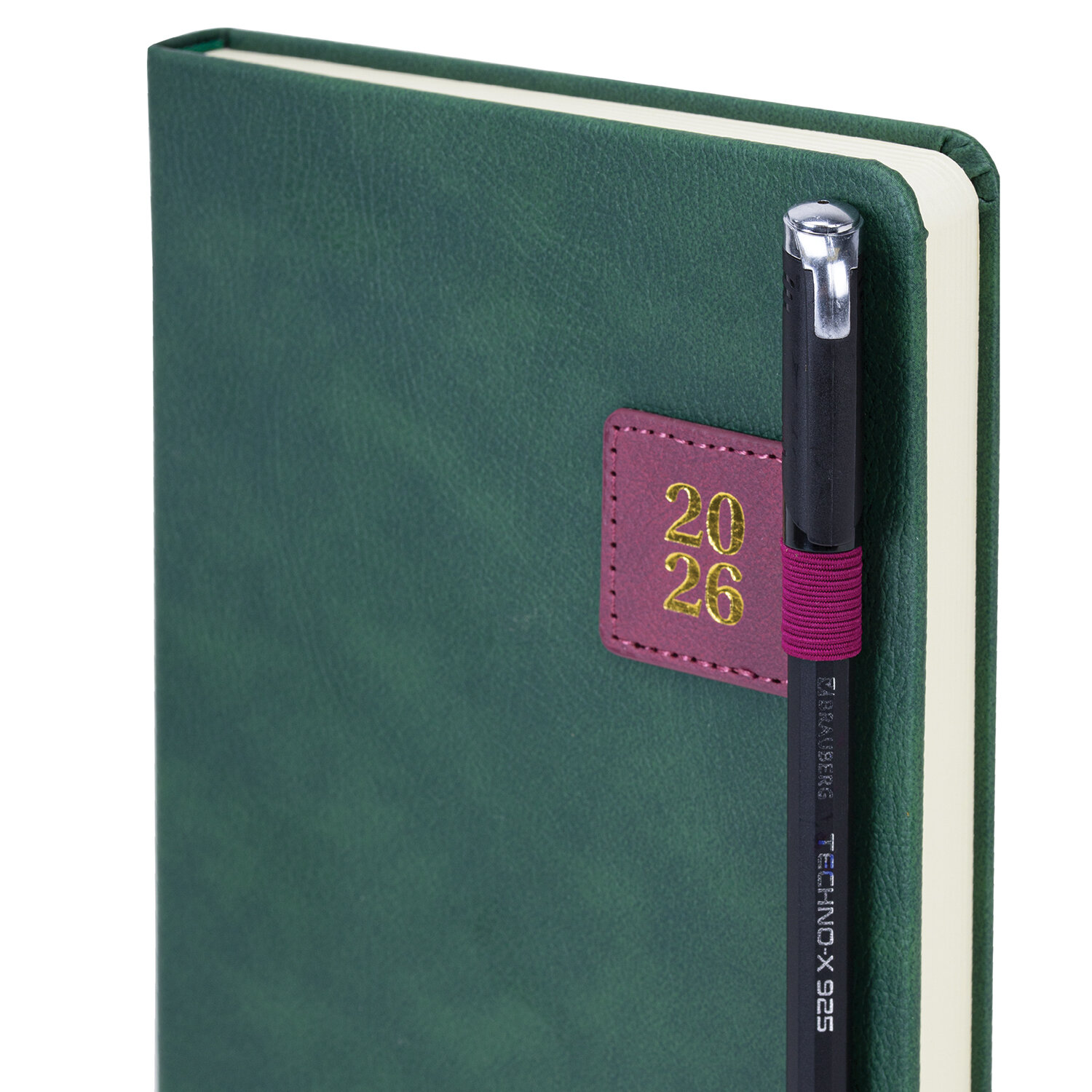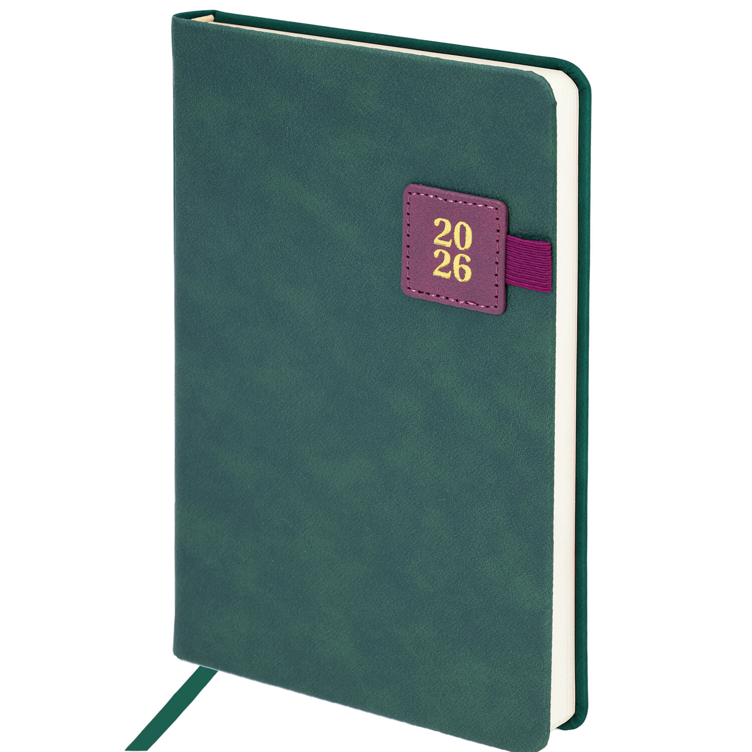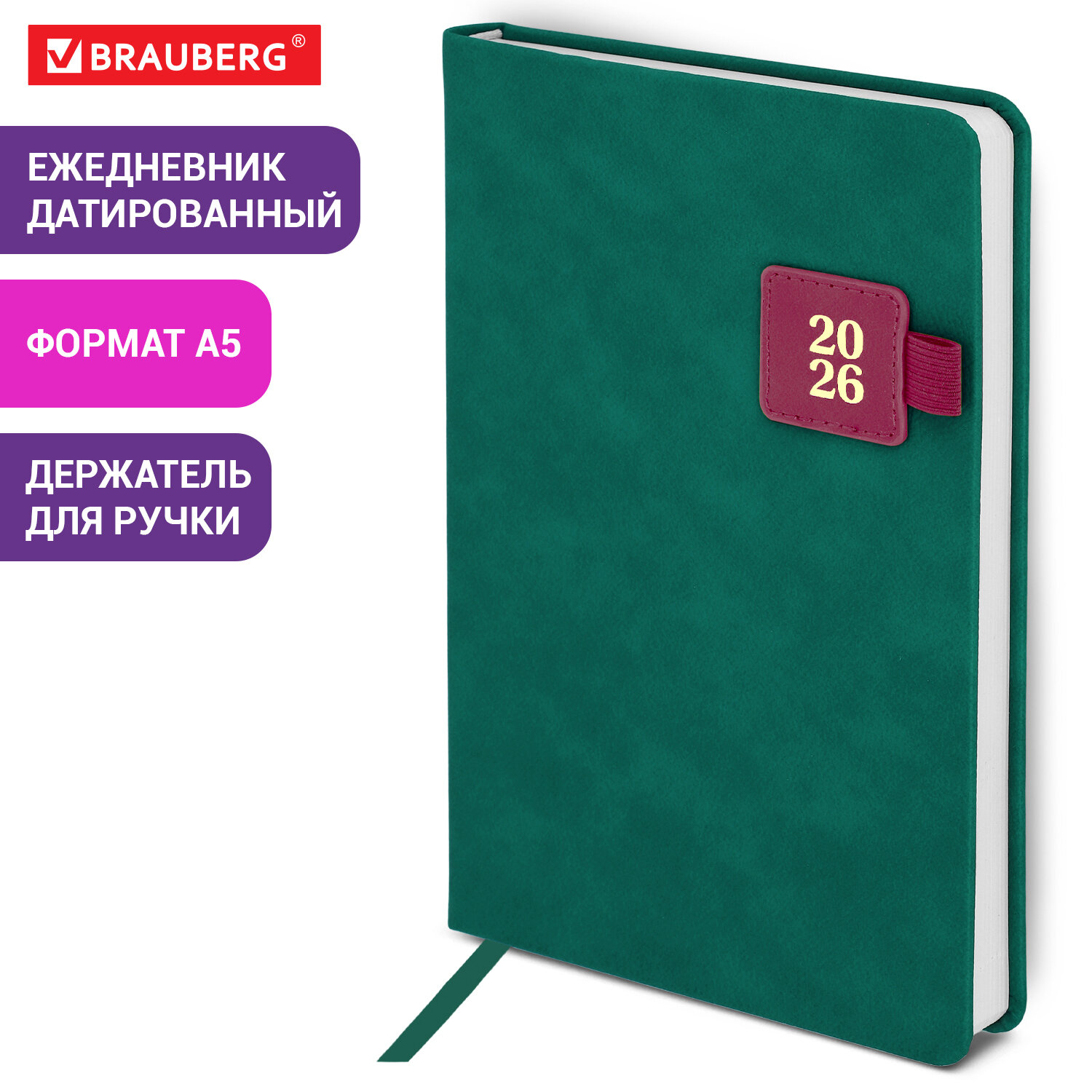 Ежедневник датированный 2026 А5 138х213 мм, BRAUBERG «Accent», под кожу, держатель, зеленый/бордо, 117387