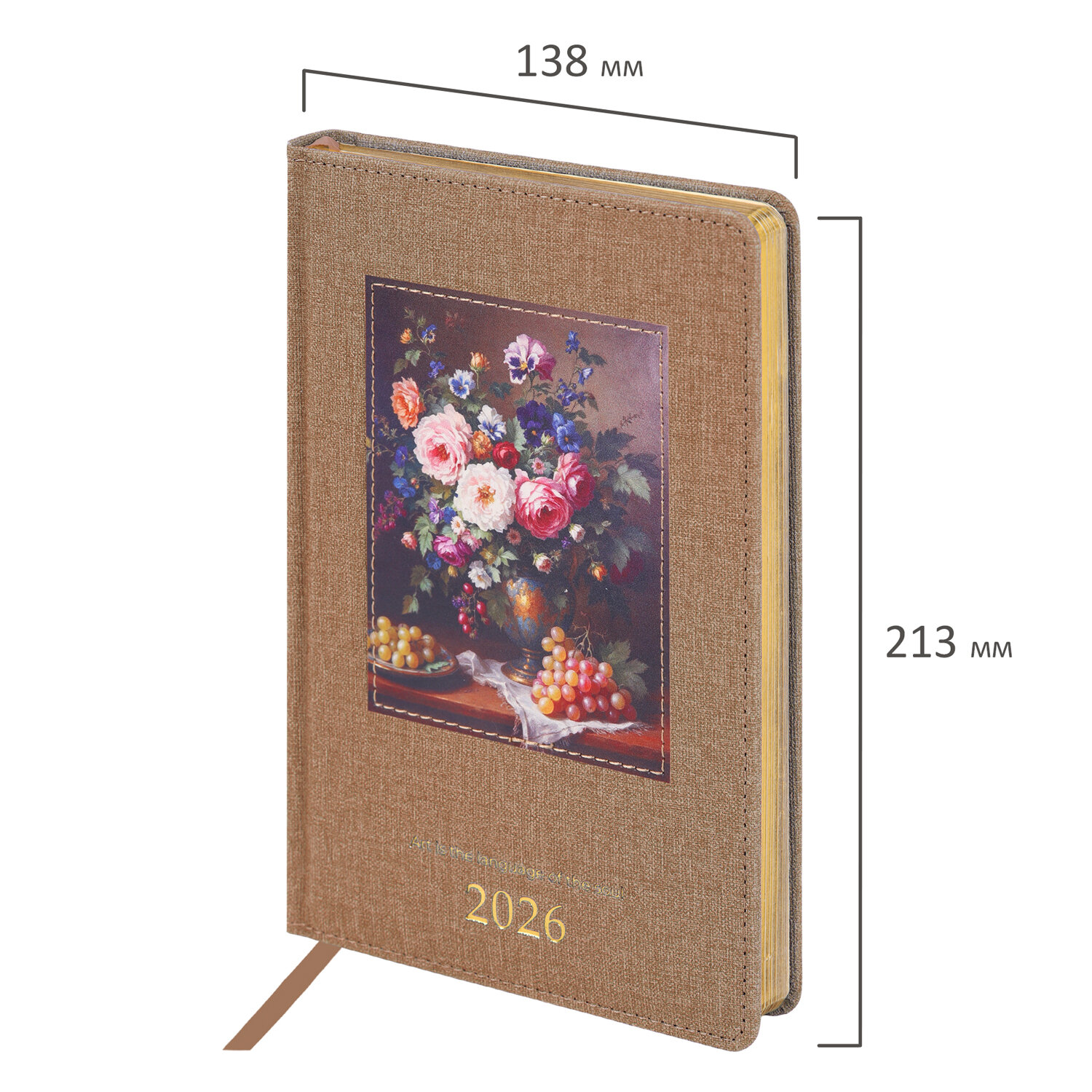 Ежедневник датированный 2026 А5 138х213 мм, BRAUBERG «ArtGallery», под кожу, нашивка, бежевый, 117404