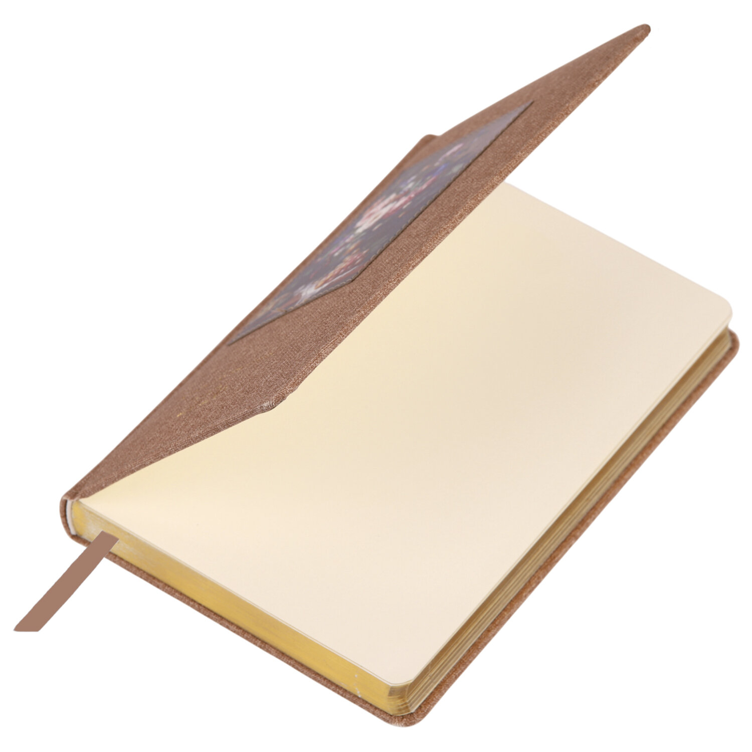 Внутренний блок включает 168 листов кремовой бумаги плотностью 70 г/м2. Каждая страничка имеет перфорированный угол. Благодаря стандартному формату А5 (138х213 мм) датированный ежедневник удобно использовать как в офисе, так и на выездных деловых встречах. Твердая обложка стилизована под текстурную кожу и имеет интересную деталь в виде нашивки с полноцветной печатью. Подходит для горячего тиснения. Дополнением является закладка-ляссе, с помощью которой при необходимости можно быстро открыть ежедневник на нужной странице. Ежедневник снабжен справочным материалом. В конце есть 4 страницы для записей и заметок.