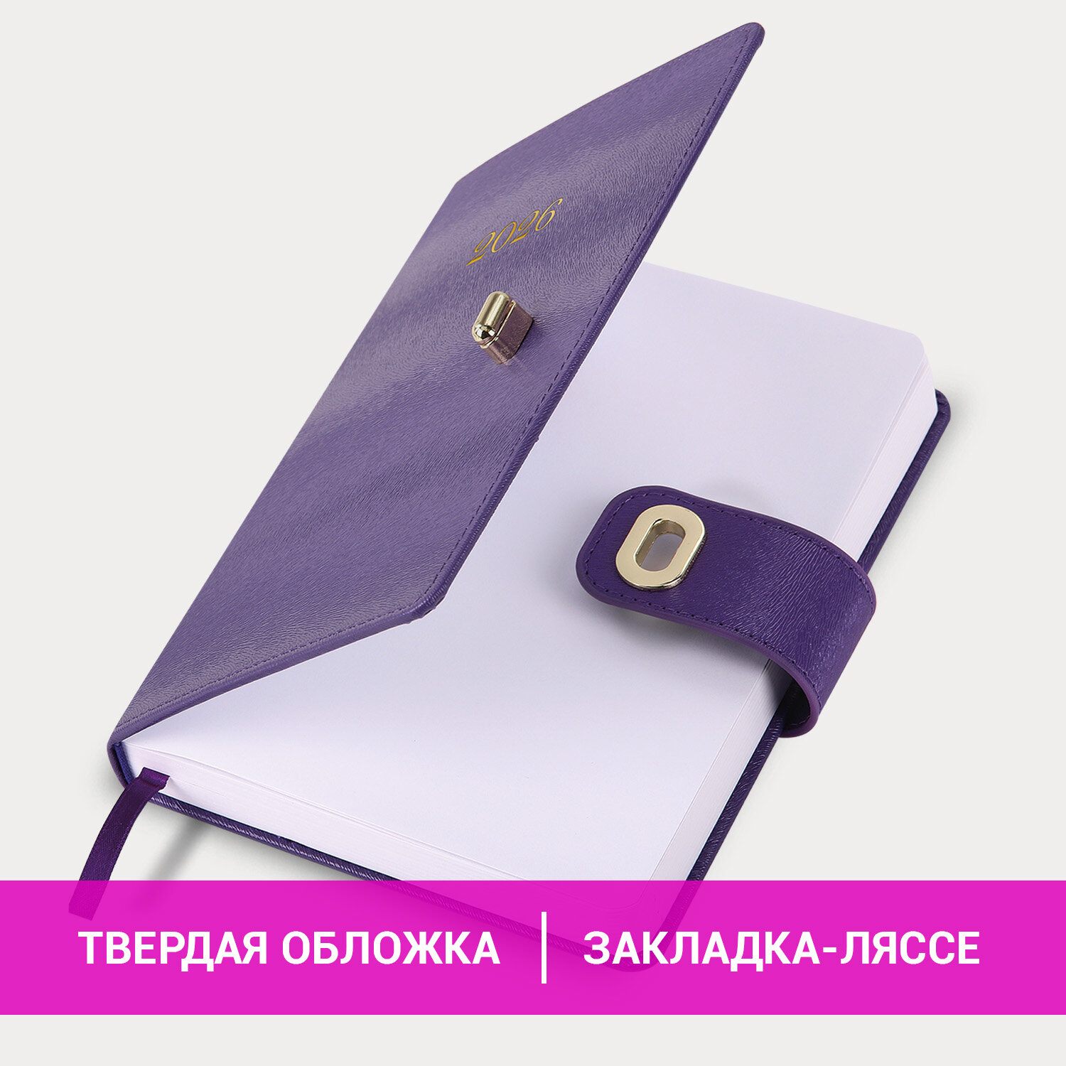 Ежедневник датированный 2026 А5 138х213 мм, BRAUBERG «Elegant», под кожу, застежка, фиолетовый, 117370