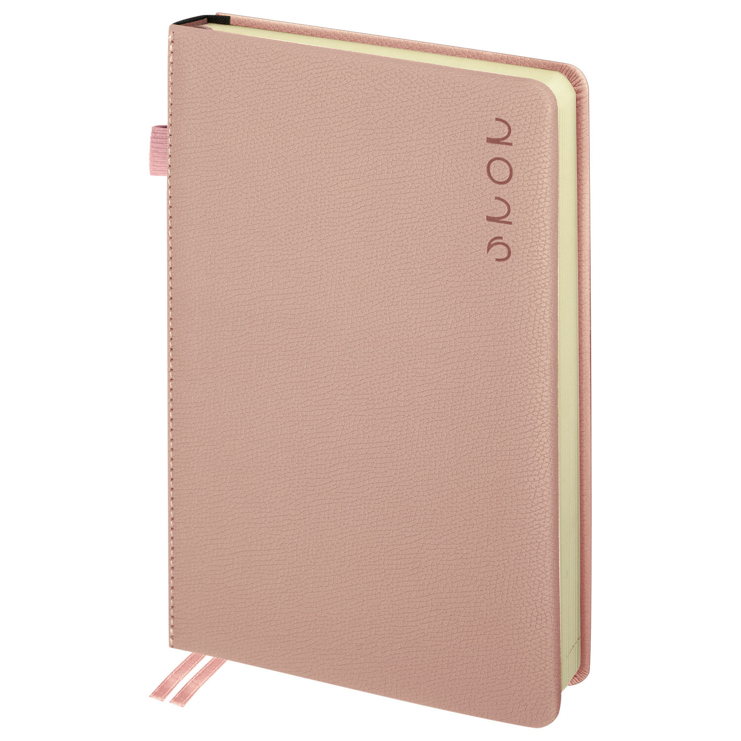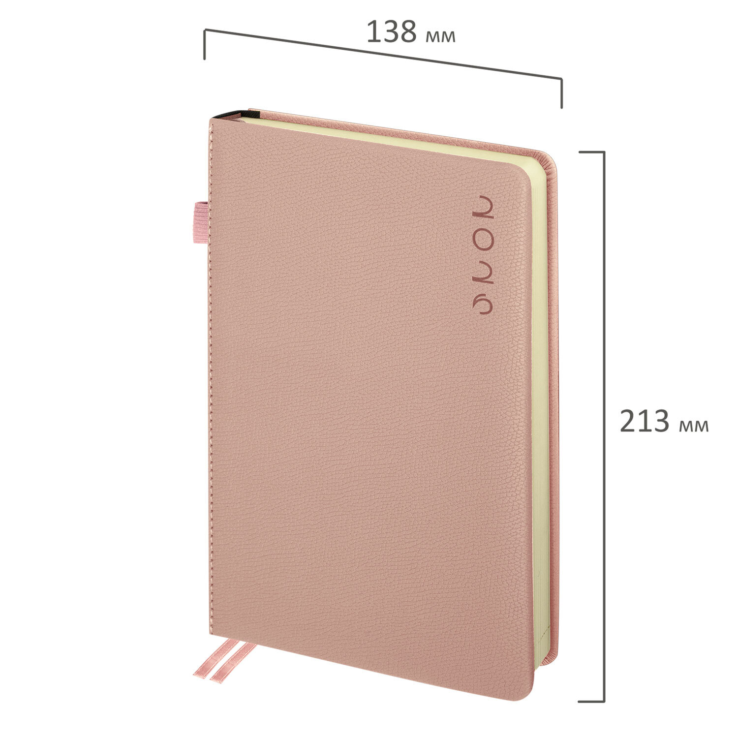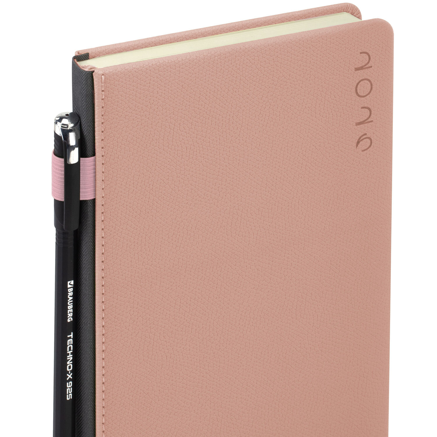 Ежедневник датированный 2026, А5, 138х213 мм, BRAUBERG «Essential», под кожу, держатель, розовый, 117395