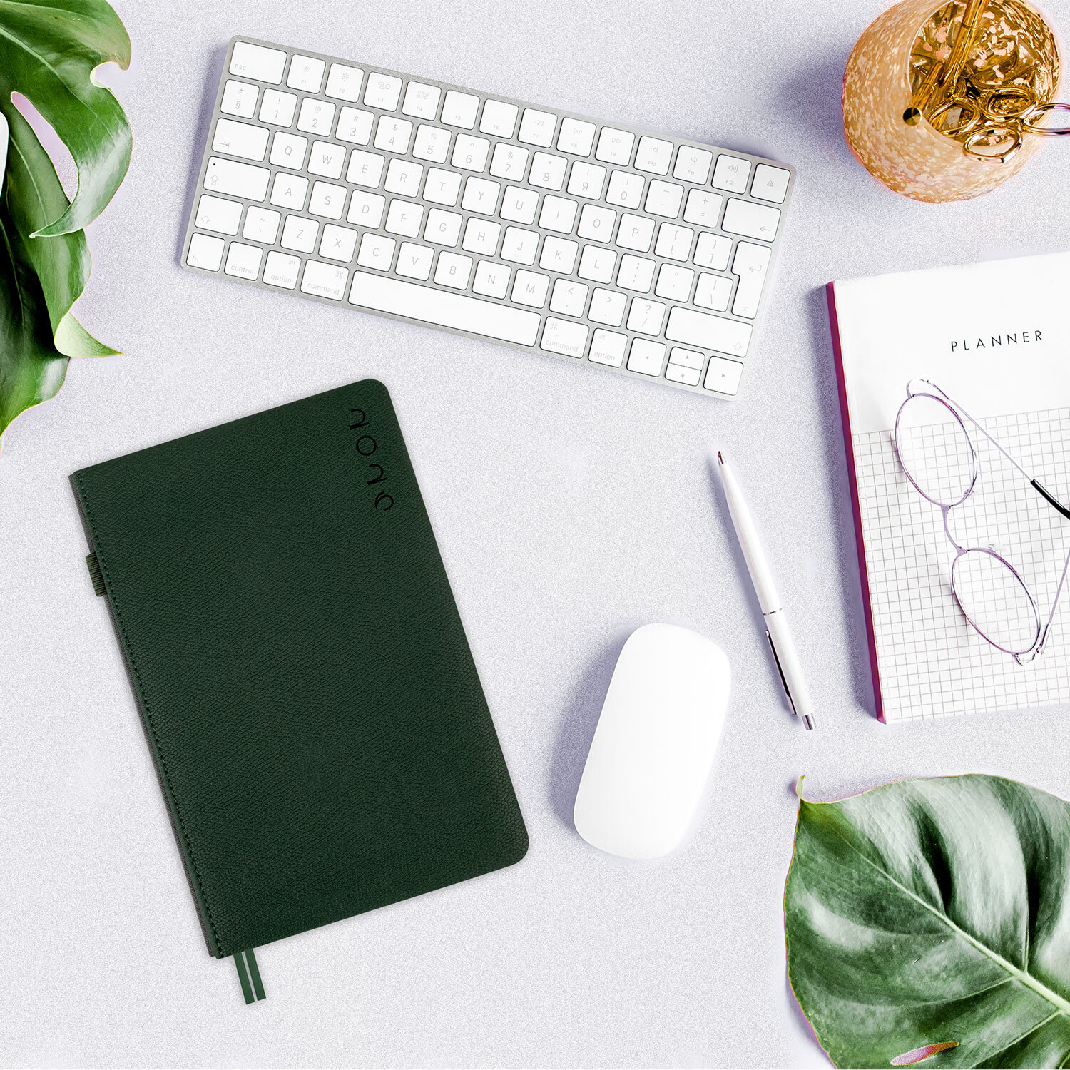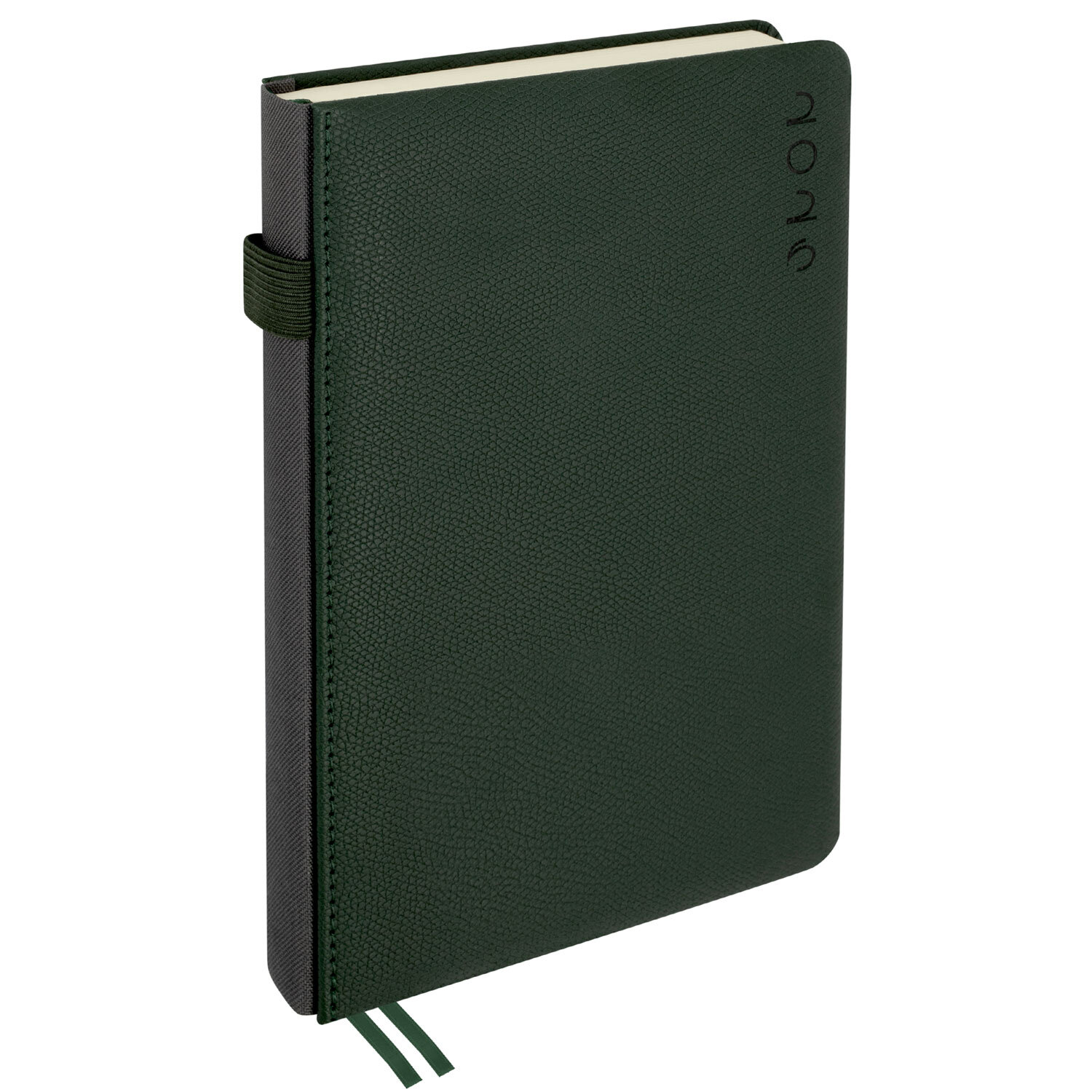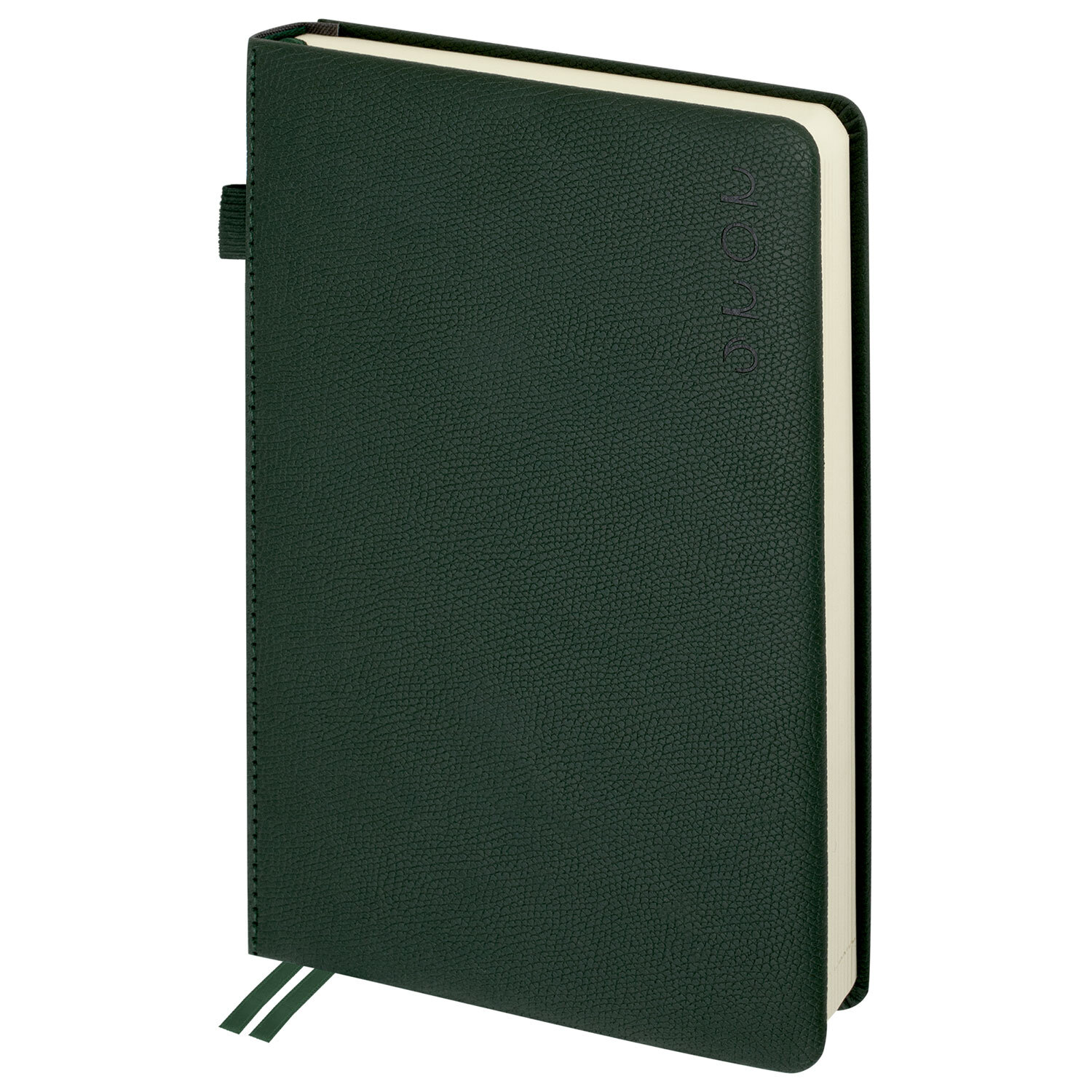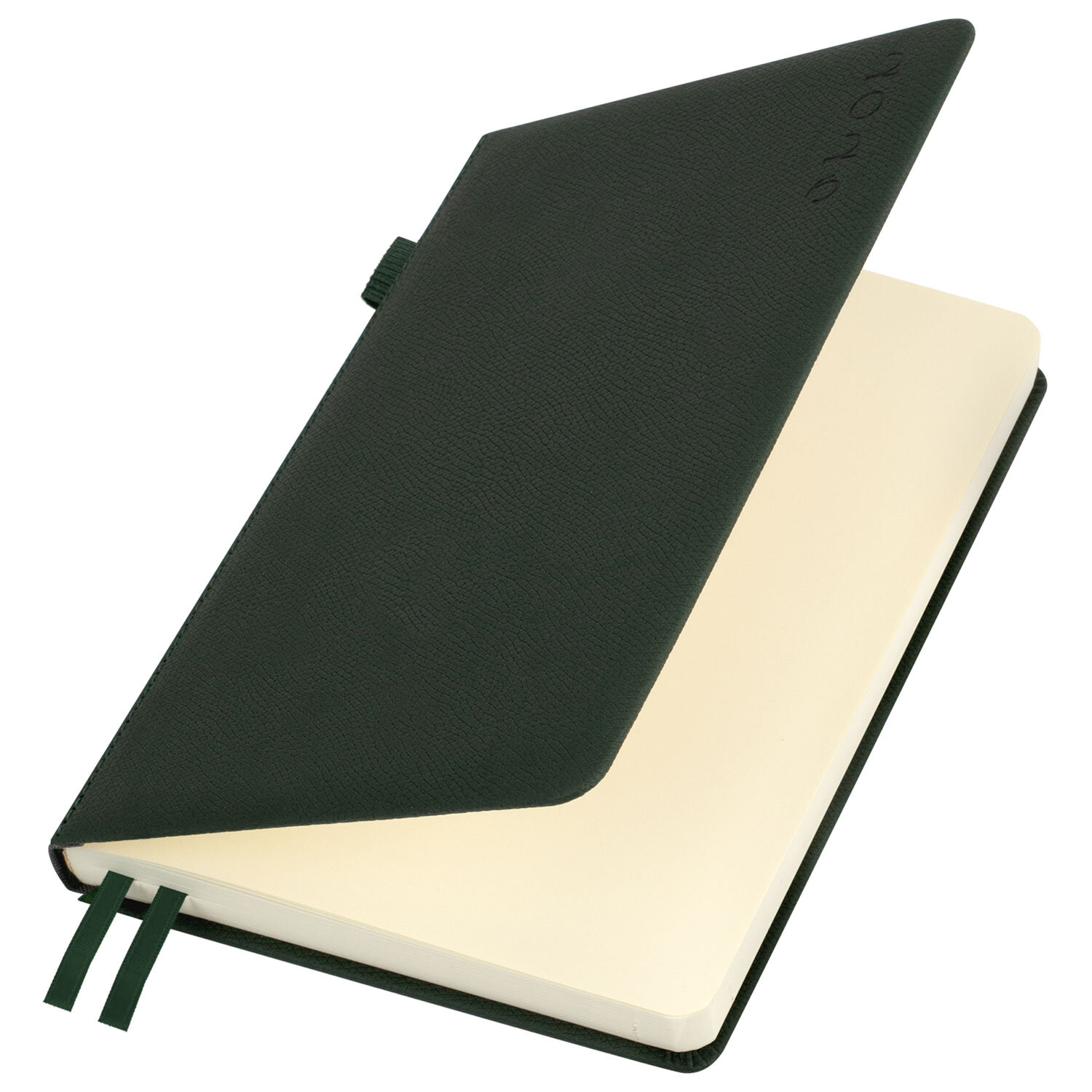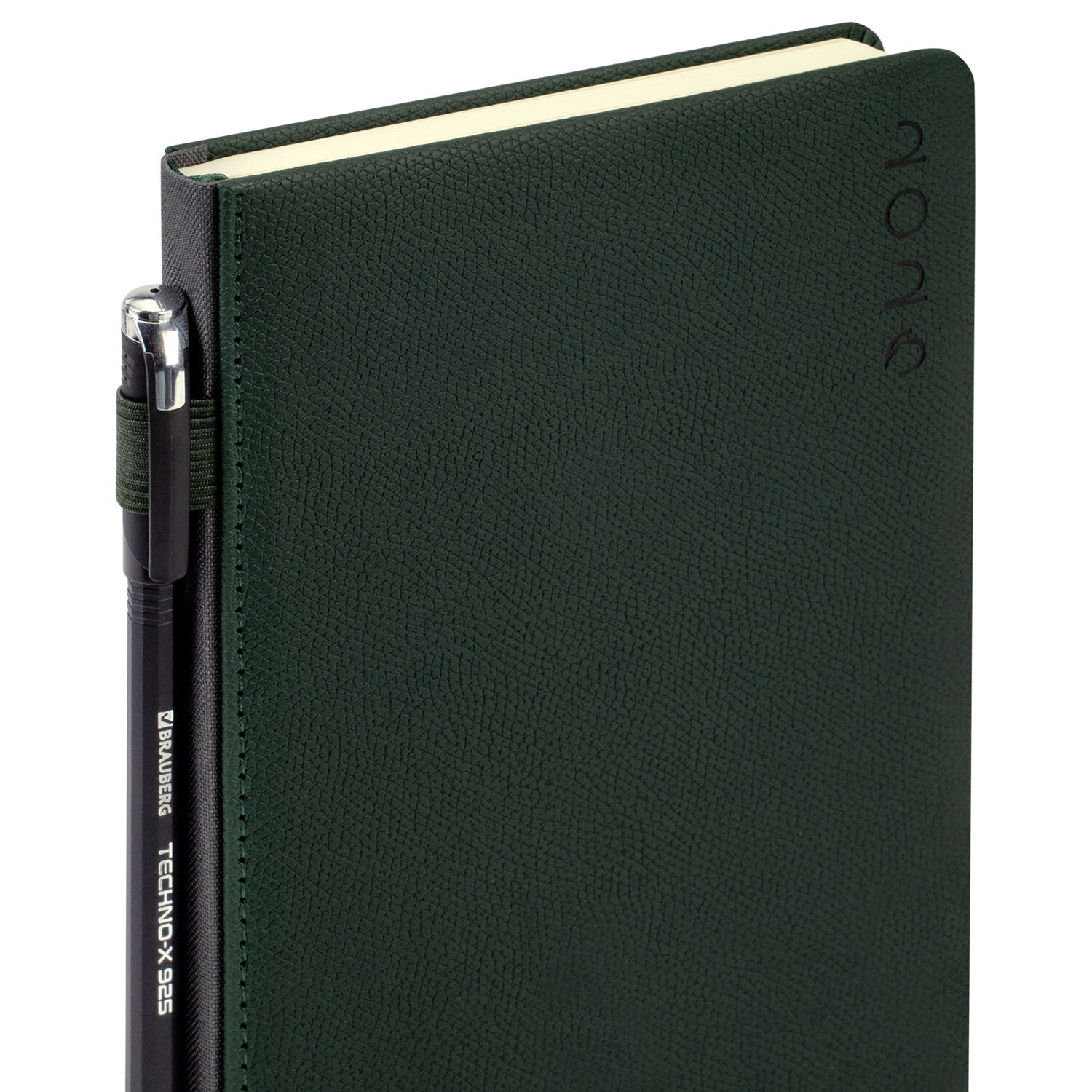 Ежедневник датированный 2026, А5, 138х213 мм, BRAUBERG «Essential», под кожу, держатель, темно-зеленый, 117394