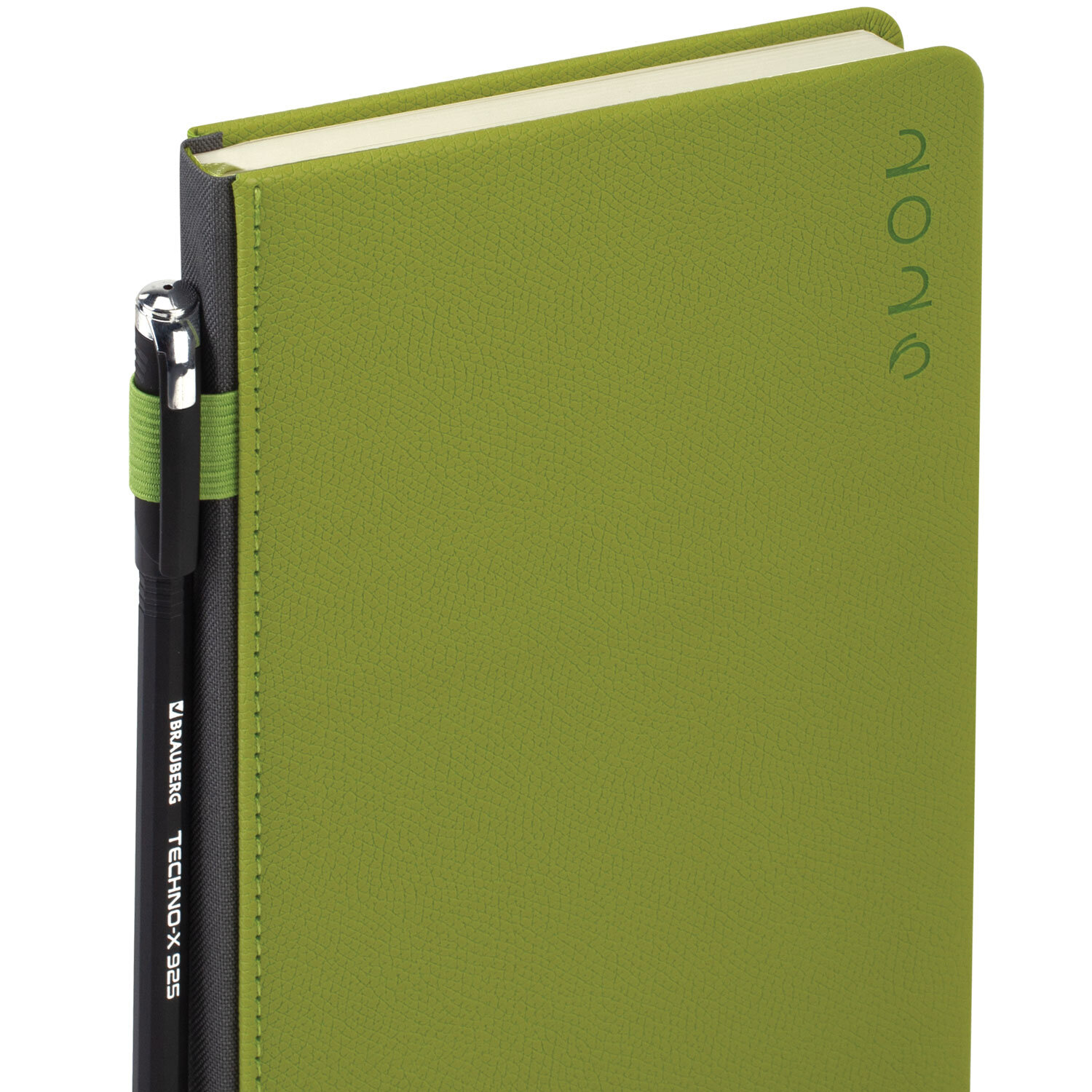 Ежедневник датированный 2026, А5, 138х213 мм, BRAUBERG «Essential», под кожу, держатель, зеленый, 117398
