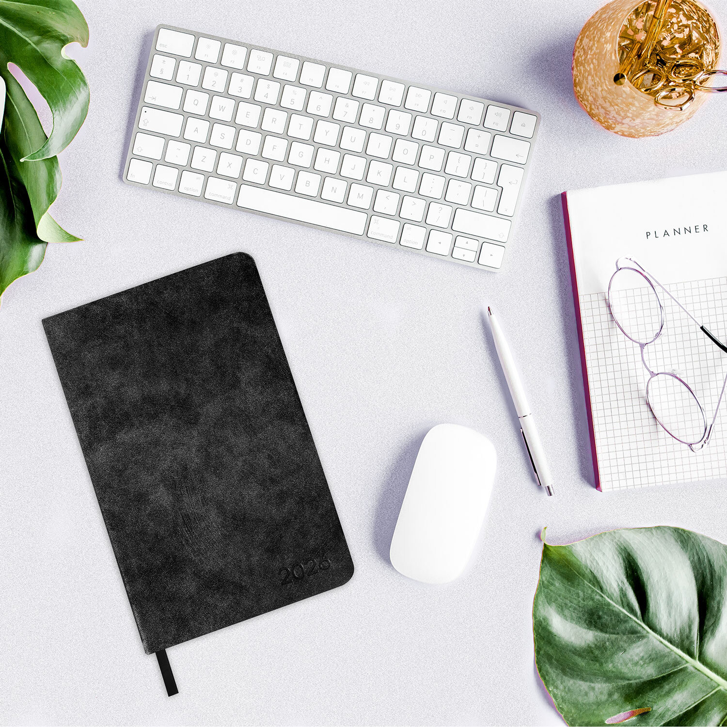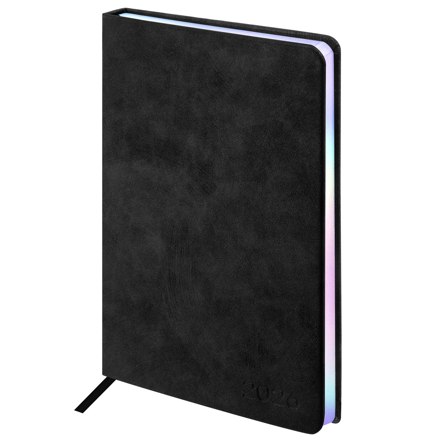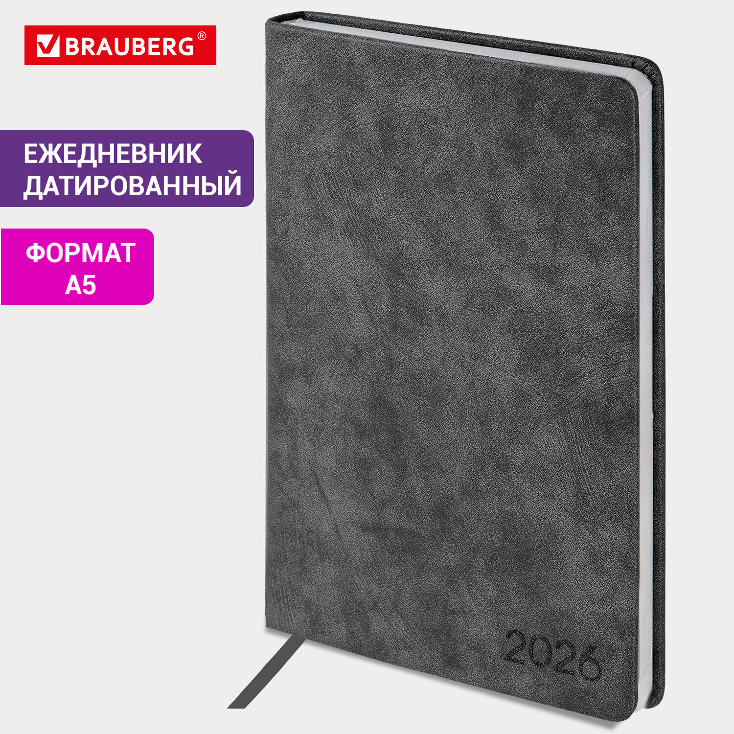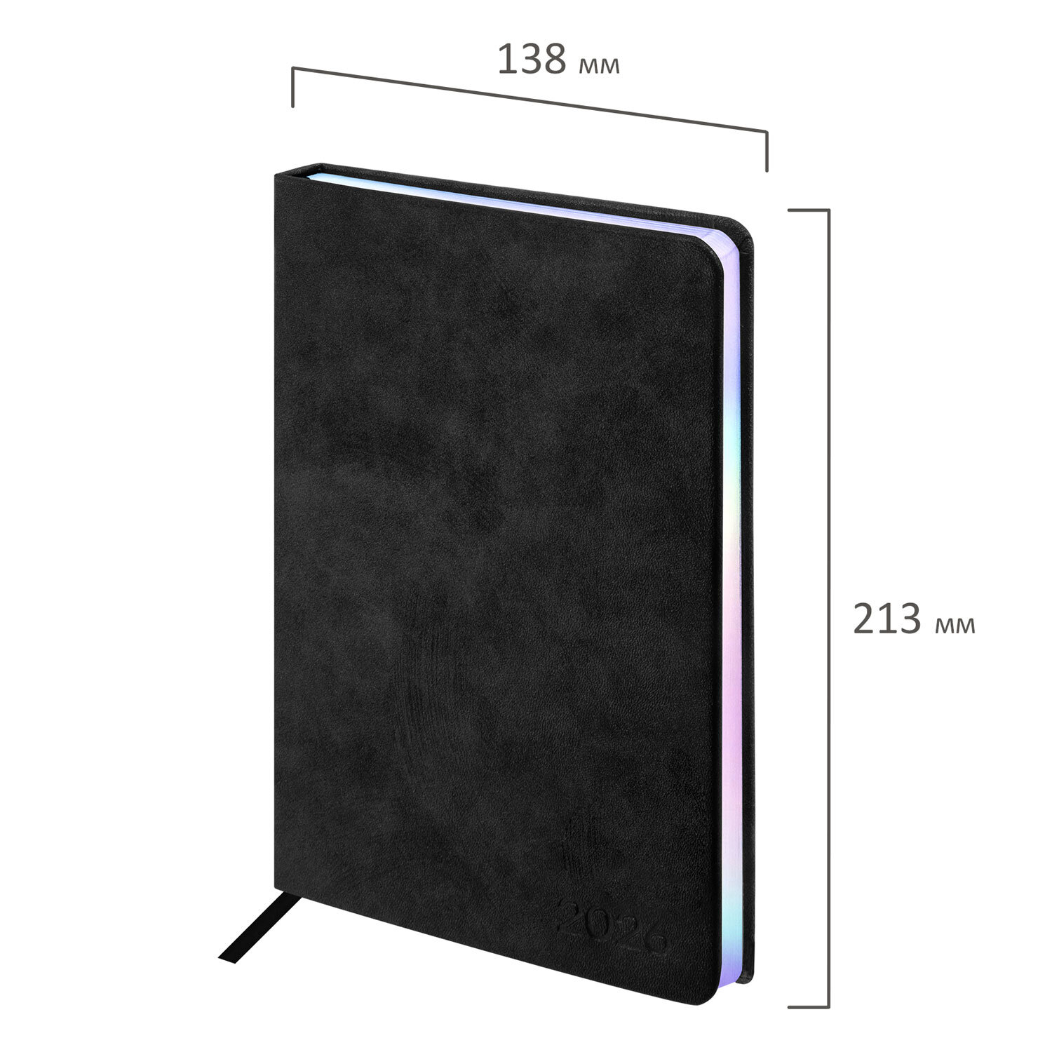 Ежедневник датированный 2026 А5 138х213 мм, BRAUBERG «Ice», под кожу, черный, 117393