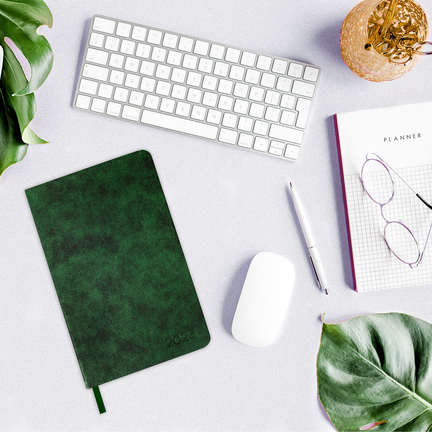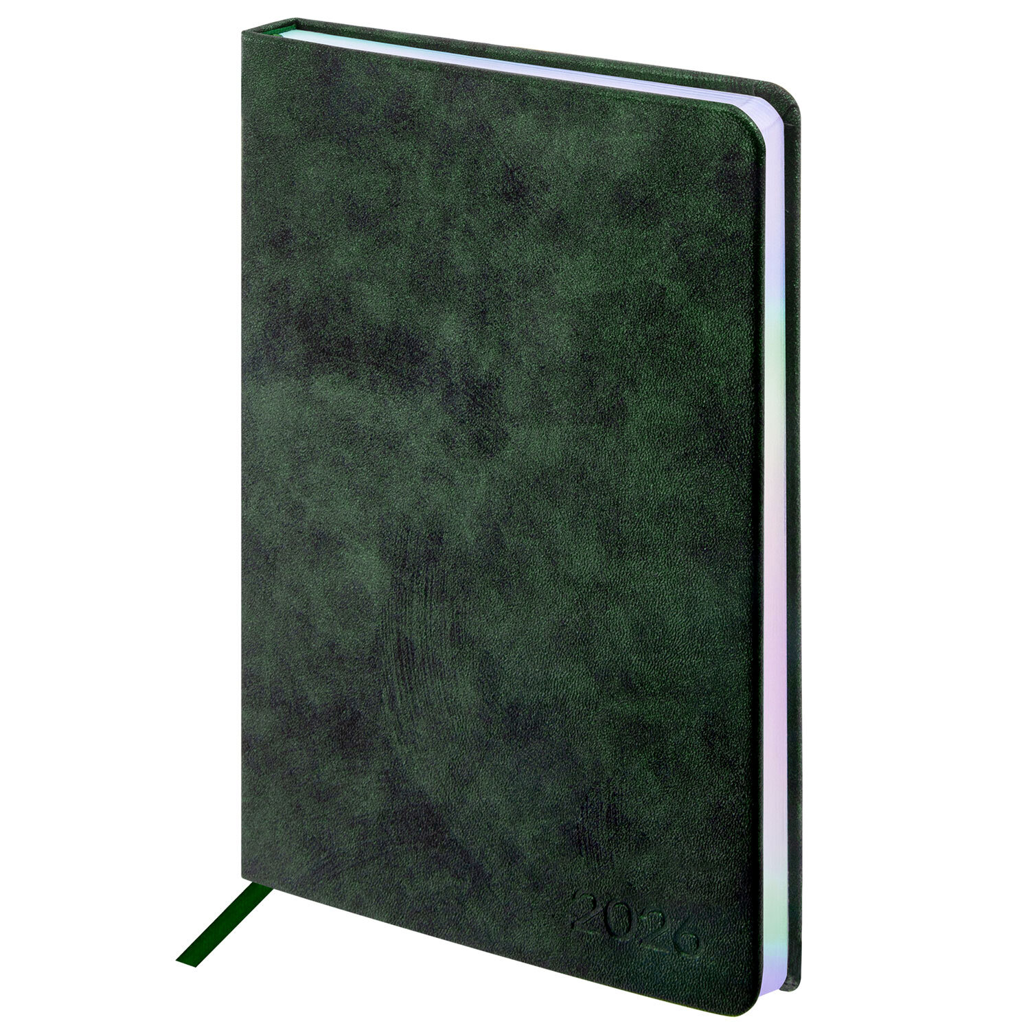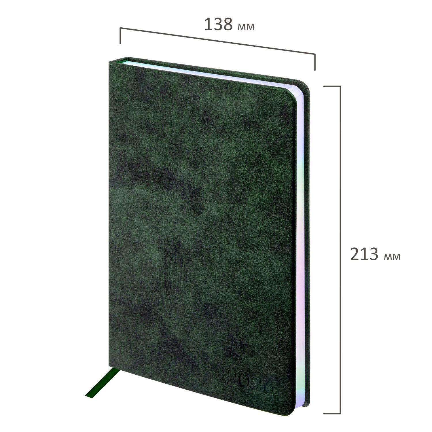 Ежедневник датированный 2026 А5 138х213 мм, BRAUBERG «Ice», под кожу, темно-зеленый, 117391
