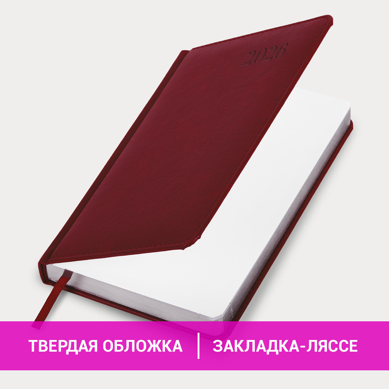 Ежедневник датированный 2026, А5, 138х213 мм, BRAUBERG «Impression», под кожу, бордовый, 117512