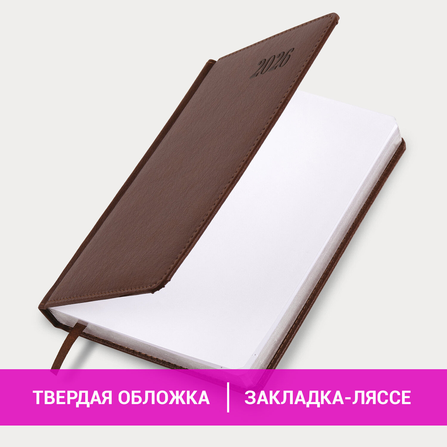 Ежедневник датированный 2026, А5, 138х213 мм, BRAUBERG «Impression», под кожу, коричневый, 117511