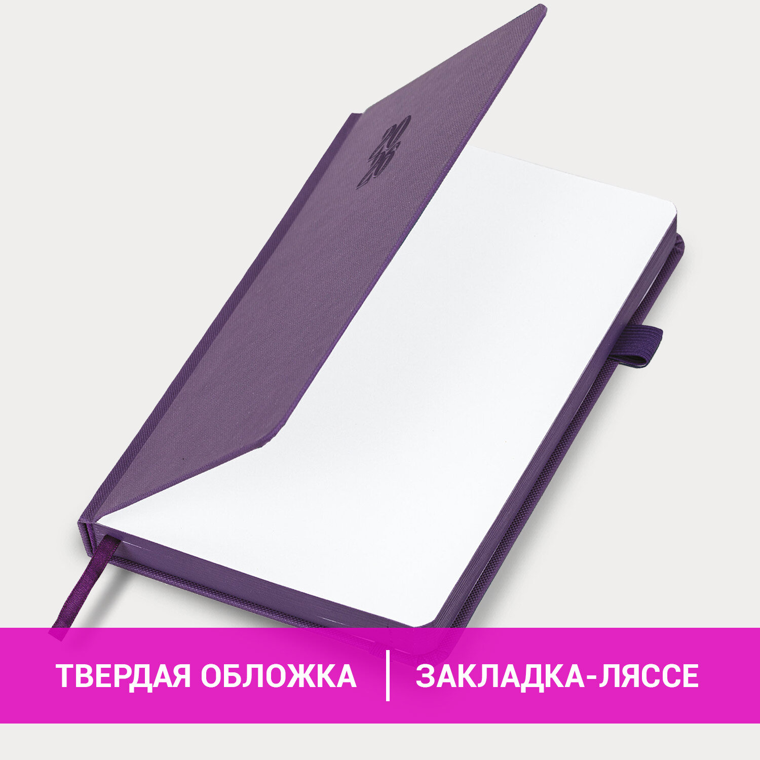 Ежедневник датированный 2026, А5, 138х213 мм, BRAUBERG «Plain», под кожу, резинка, держатель для ручки, фиолетовый, 117509