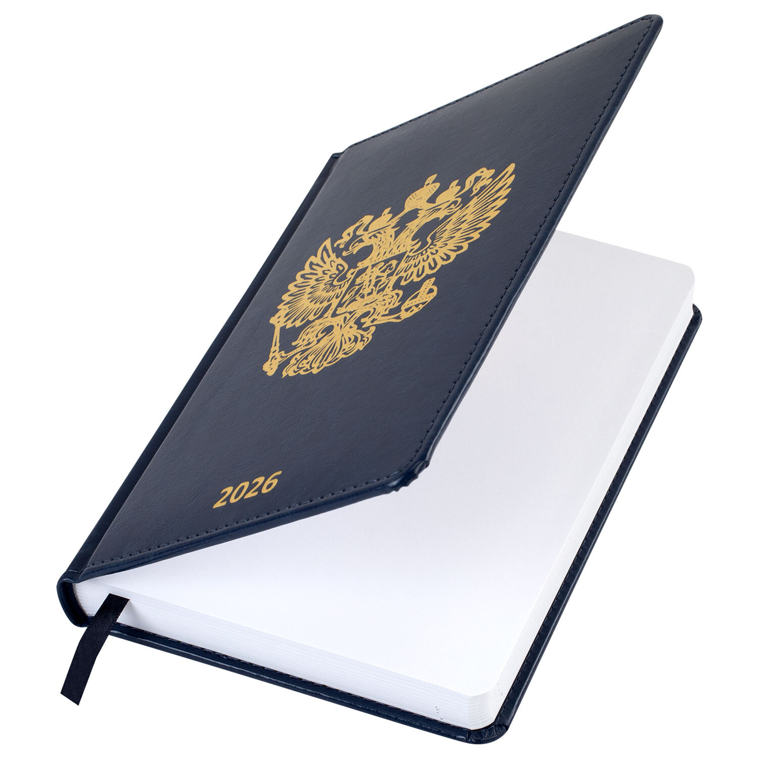 Ежедневник датированный 2026 А5 138х213 мм, BRAUBERG «State», под кожу, синий, 117416