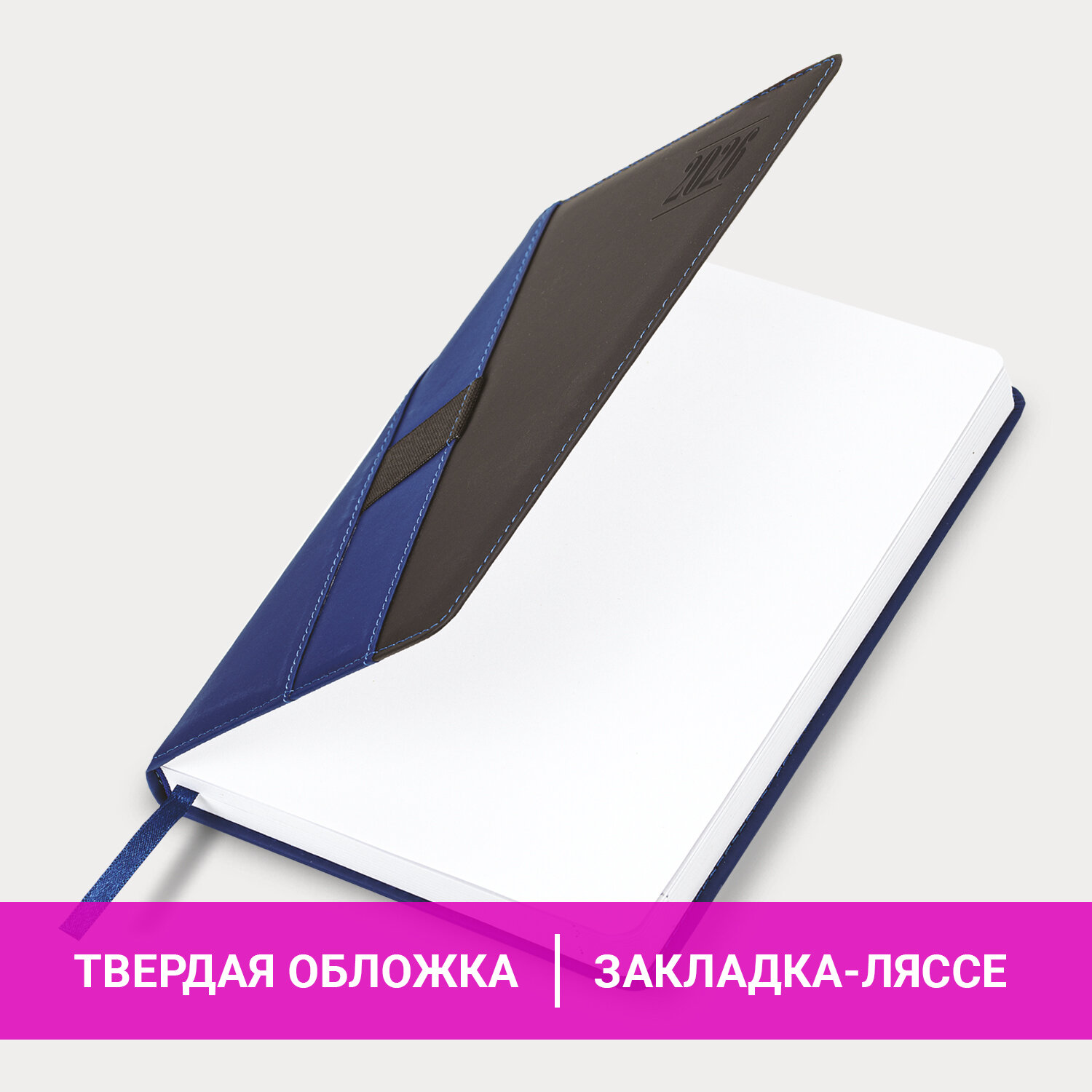 Ежедневник датированный 2026, А5, 138х213 мм, BRAUBERG «Swirl», под кожу, держатель для ручки, синий, 117479