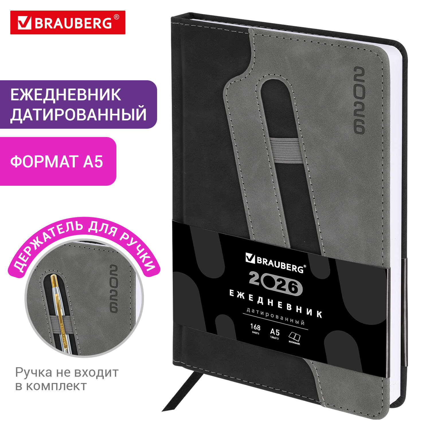 Датированный ежедневник BRAUBERG «Assistant» с оригинальным дизайном обложки. Приятная на ощупь обложка дополнена удобным держателем для ручки.