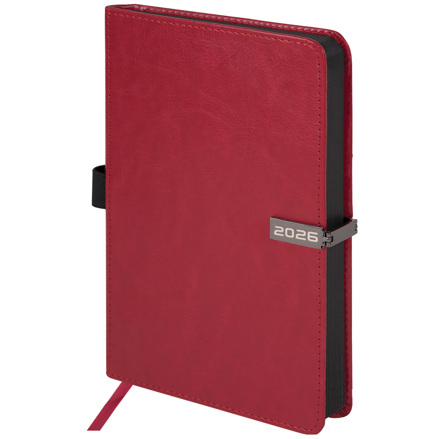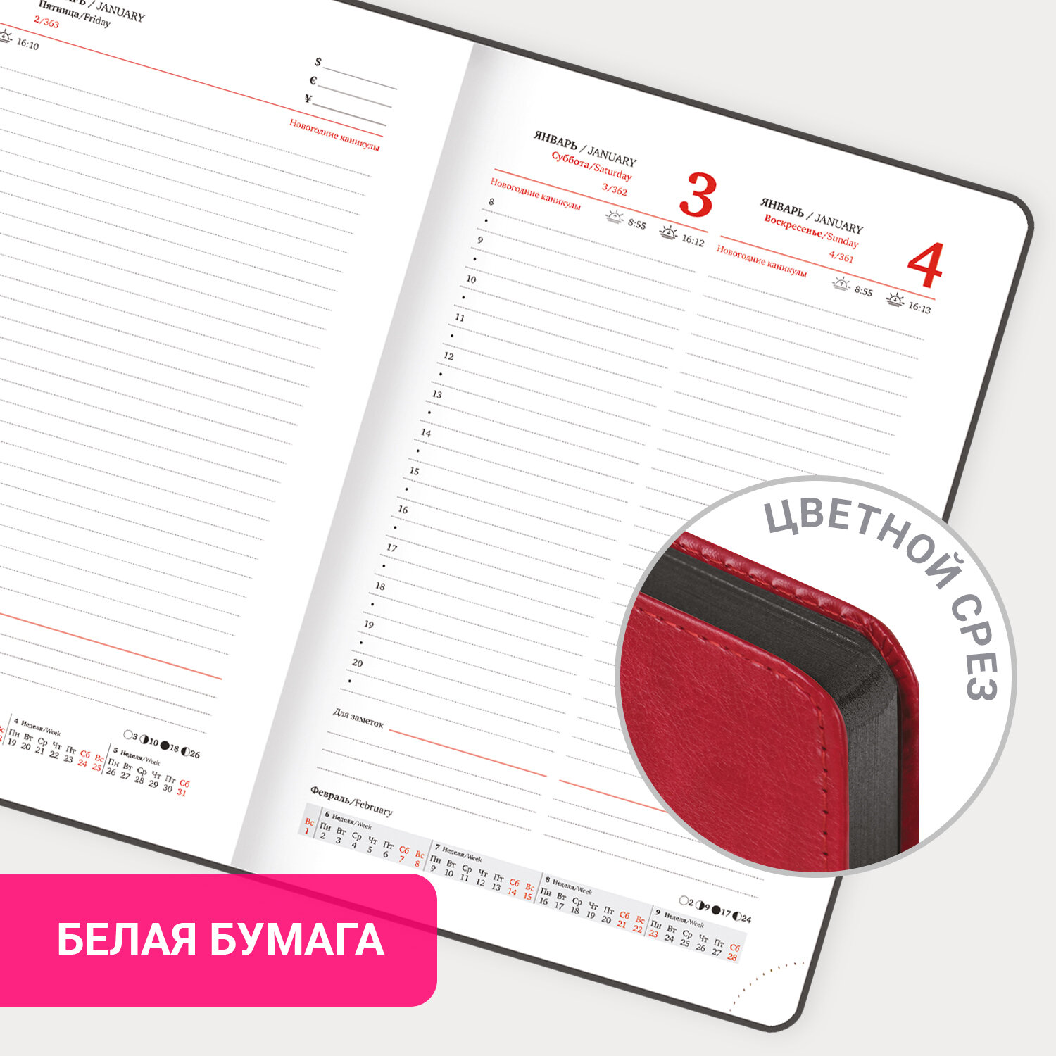 Ежедневник датированный 2026 А5 138×213 мм, BRAUBERG «Inspiration», под кожу, цветной срез, красный, 117475