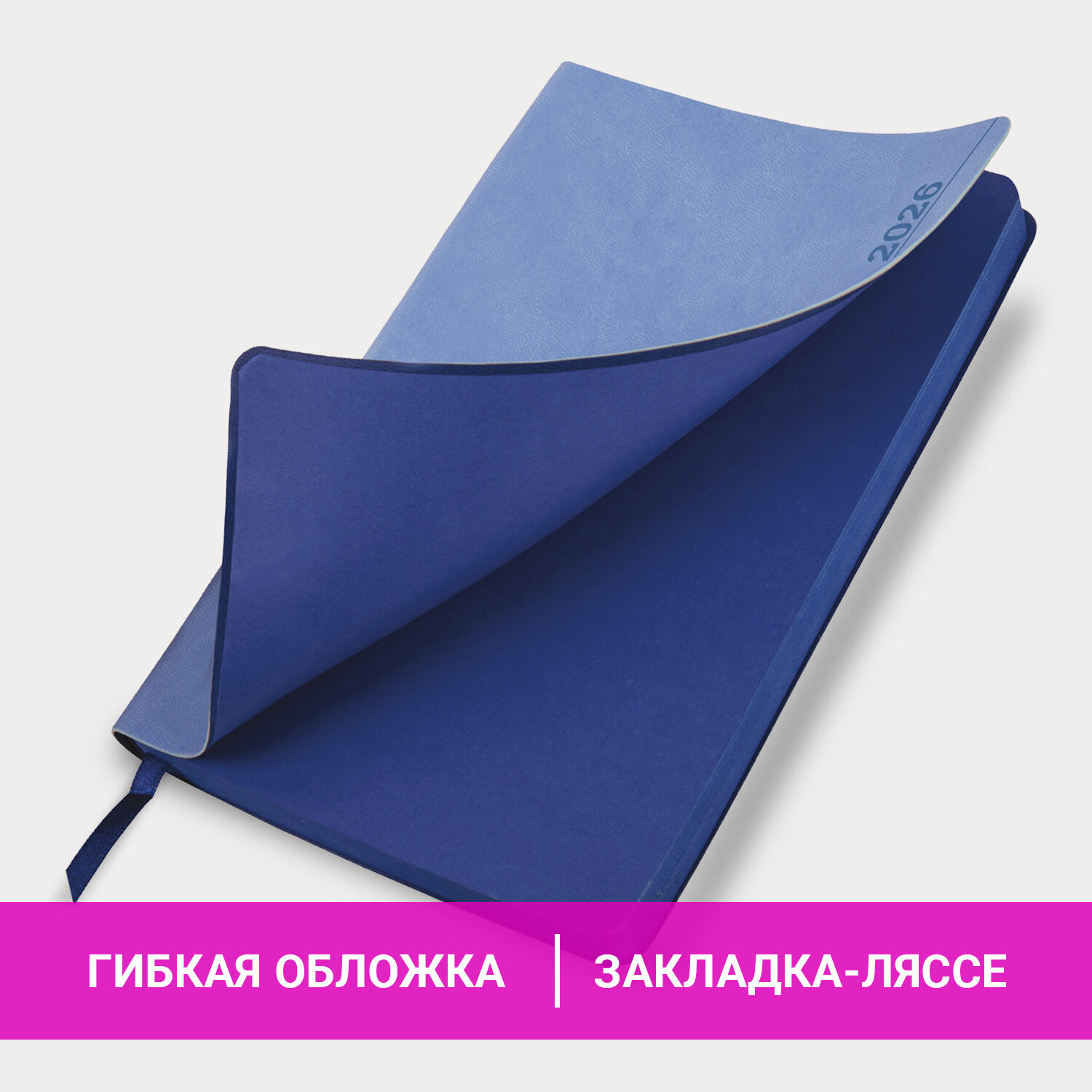 Ежедневник датированный 2026 А5 138×213 мм, BRAUBERG «Metropolis Mix», под кожу, гибкий, голубой, 117444
