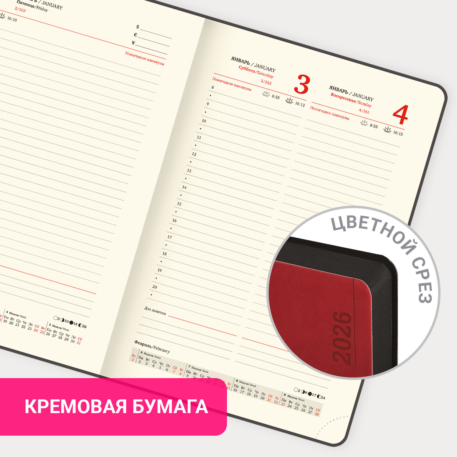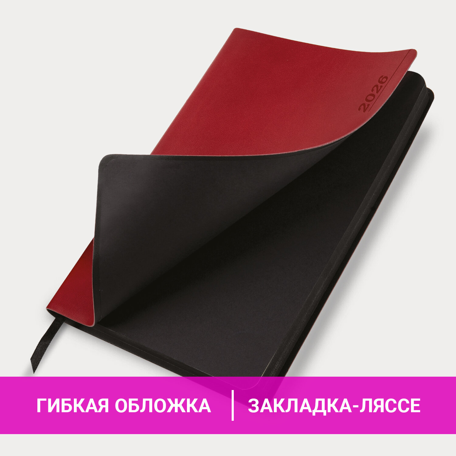 Ежедневник датированный 2026 А5 138×213 мм, BRAUBERG «Metropolis Mix», под кожу, гибкий, красный, 117442