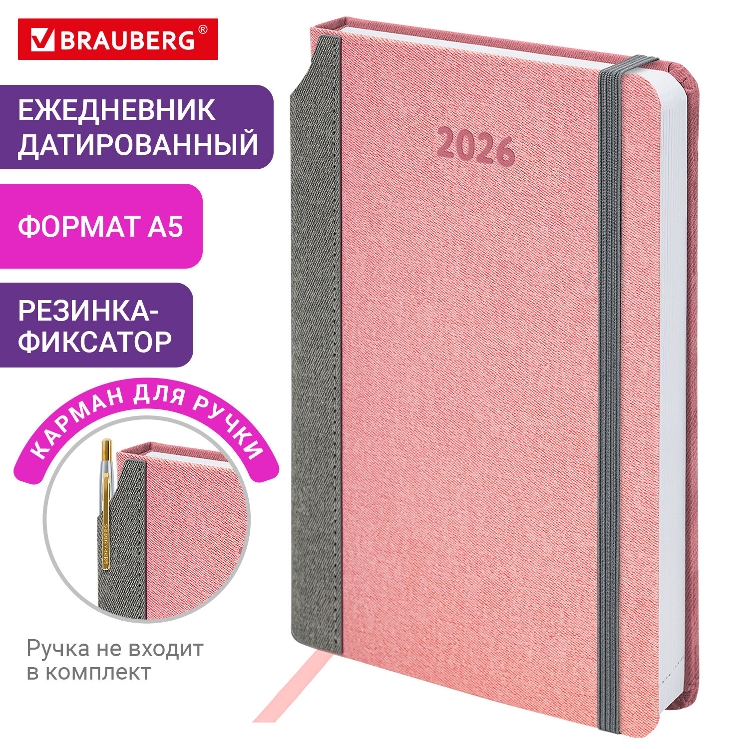 Внутренний блок включает 168 листов белой бумаги плотностью 70 г/м2. Каждая страничка имеет перфорированный угол. Благодаря стандартному формату А5 (138х213 мм) ежедневник удобно использовать как в офисе, так и на выездных деловых встречах. Выполнен в стильном сочетании розового и серого цветов. Жесткая книжная обложка стилизована под искусственную кожу с текстурой льна, фиксируется резинкой, поэтому ежедневник не откроется в сумке или портфеле и страницы не помнутся. Материал обложки подходит для горячего тиснения. Для удобства пользования ежедневник снабжен карманом для фиксации ручки. Дополнением является закладка-ляссе, с помощью которой при необходимости можно быстро открыть ежедневник на нужной странице. Ежедневник снабжен обширным справочным материалом. В конце есть 4 страницы для записей и заметок. Датированный ежедневник BRAUBERG «Mosaic» идеально подойдет для офисных работников, людей, занимающихся бизнесом.