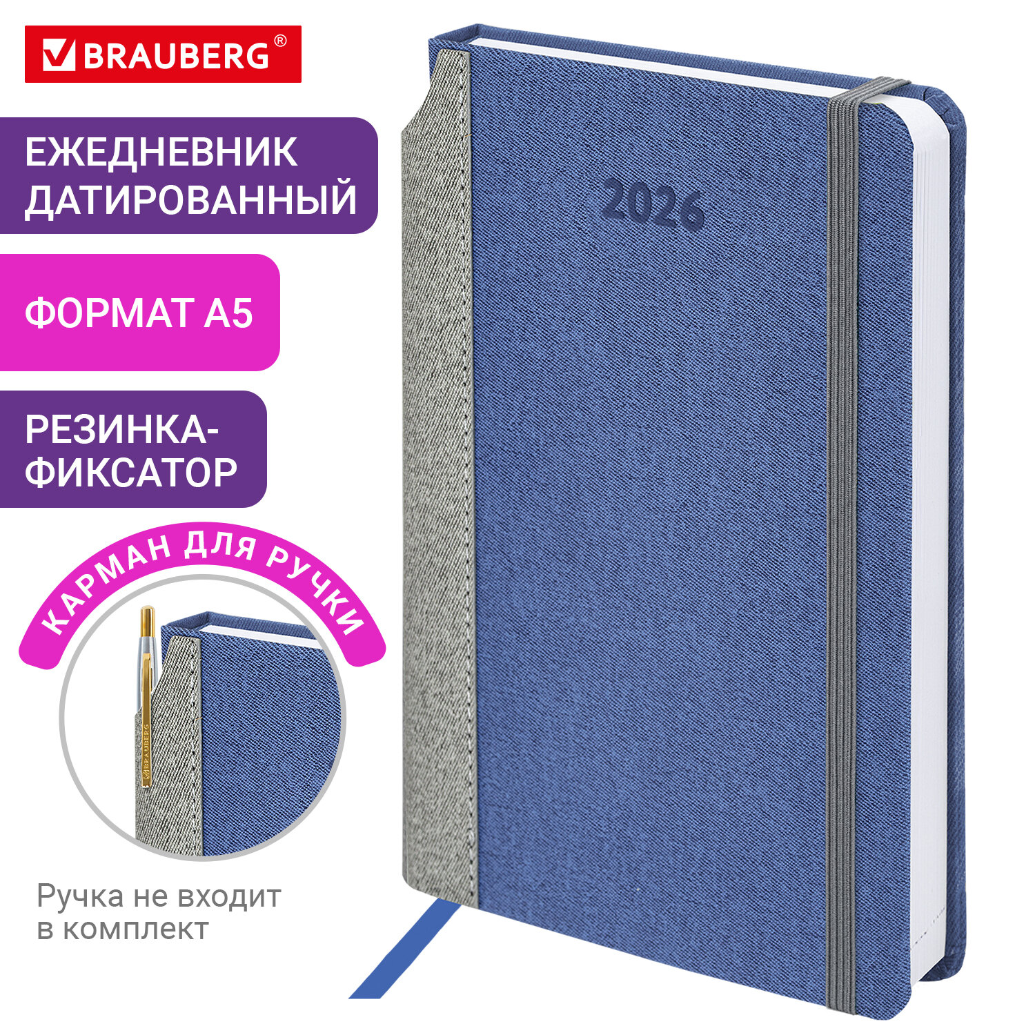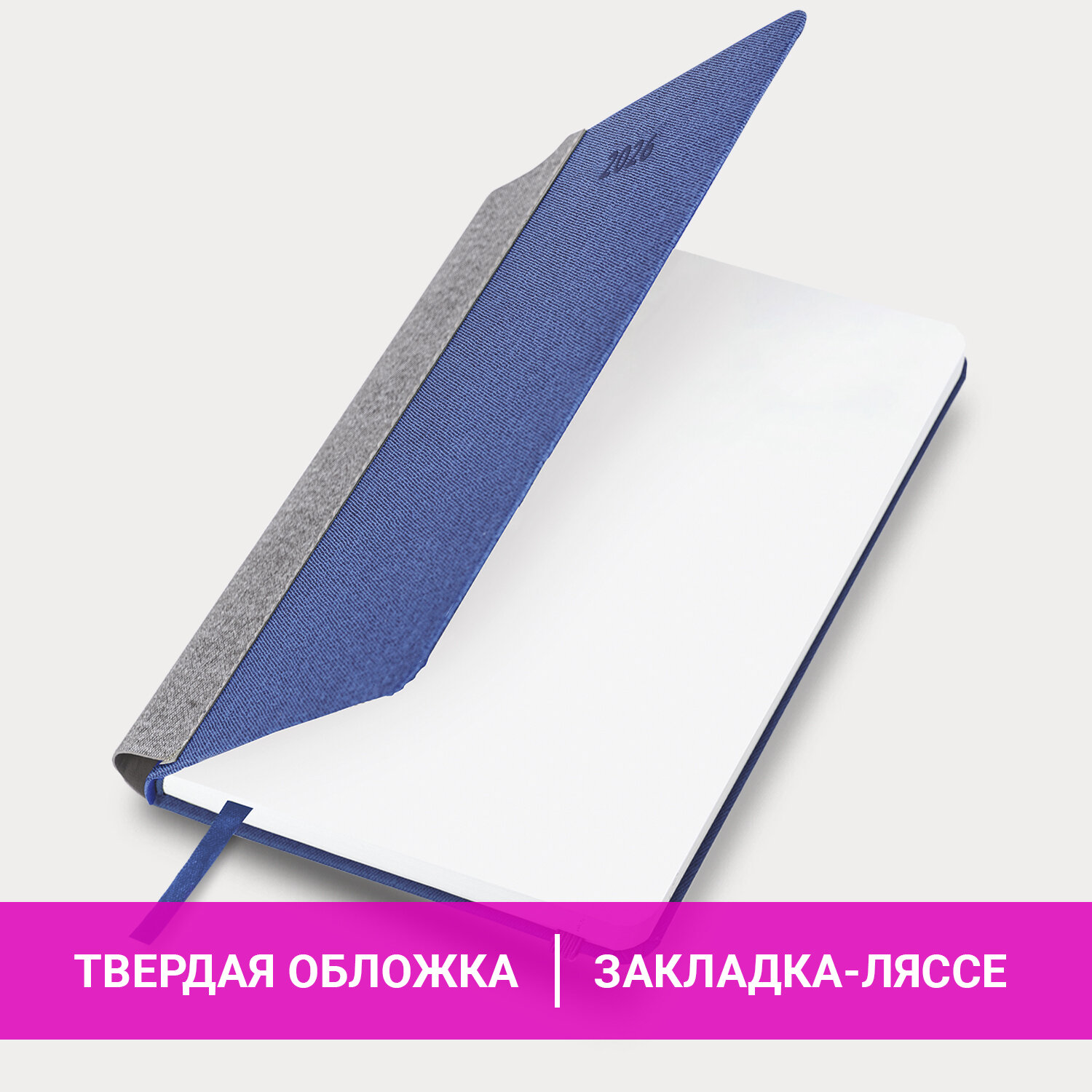 Внутренний блок включает 168 листов белой бумаги плотностью 70 г/м2. Каждая страничка имеет перфорированный угол. Благодаря стандартному формату А5 (138х213 мм) ежедневник удобно использовать как в офисе, так и на выездных деловых встречах. Выполнен в стильном сочетании синего и серого цветов. Жесткая книжная обложка стилизована под искусственную кожу с текстурой льна, фиксируется резинкой, поэтому ежедневник не откроется в сумке или портфеле и страницы не помнутся. Материал обложки подходит для горячего тиснения. Для удобства пользования ежедневник снабжен карманом для фиксации ручки. Дополнением является закладка-ляссе, с помощью которой при необходимости можно быстро открыть ежедневник на нужной странице. Ежедневник снабжен обширным справочным материалом. В конце есть 4 страницы для записей и заметок. Датированный ежедневник BRAUBERG «Mosaic» идеально подойдет для офисных работников, людей, занимающихся бизнесом.