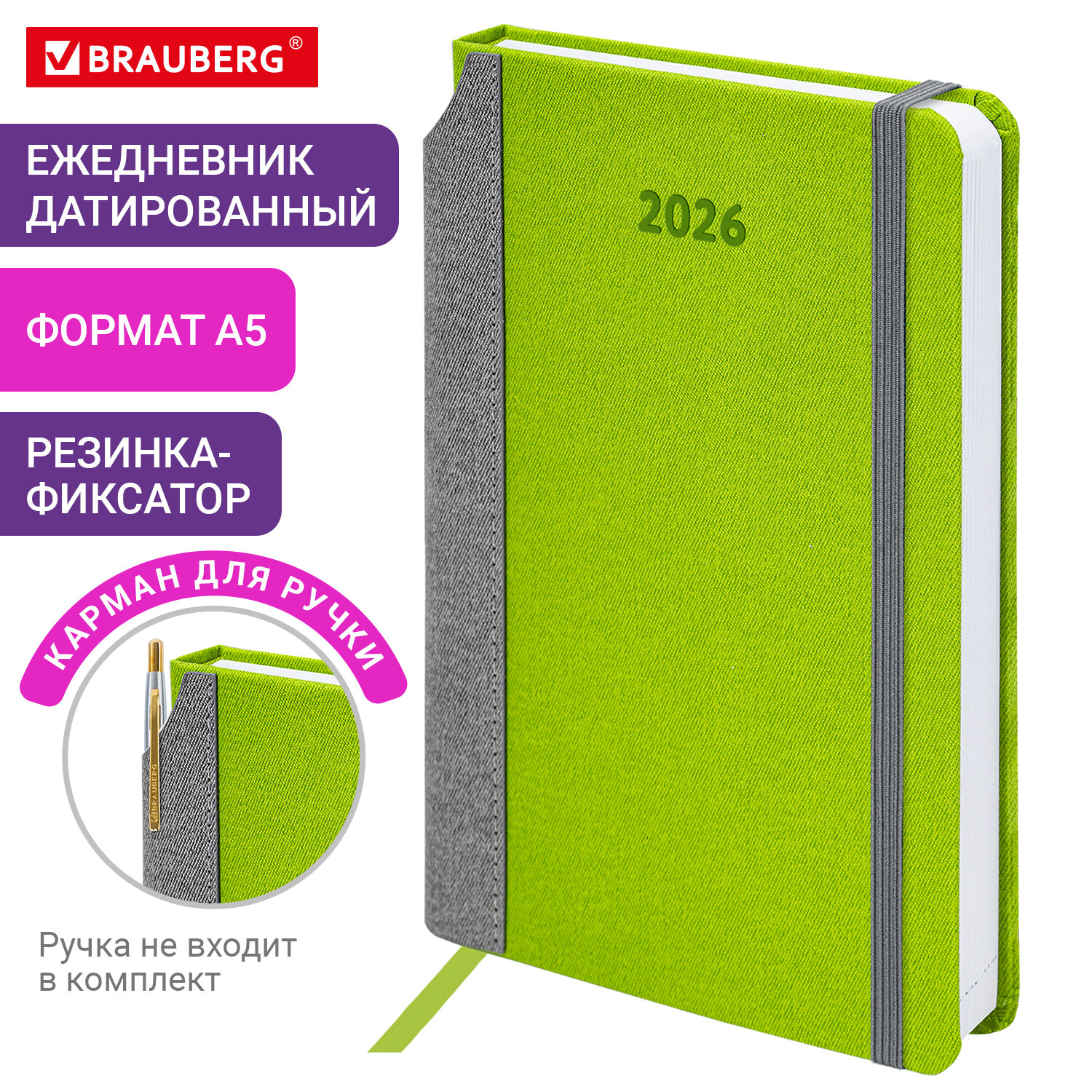 Внутренний блок включает 168 листов белой бумаги плотностью 70 г/м2. Каждая страничка имеет перфорированный угол. Благодаря стандартному формату А5 (138х213 мм) ежедневник удобно использовать как в офисе, так и на выездных деловых встречах. Выполнен в стильном сочетании зеленого и серого цветов. Жесткая книжная обложка стилизована под искусственную кожу с текстурой льна, фиксируется резинкой, поэтому ежедневник не откроется в сумке или портфеле и страницы не помнутся. Материал обложки подходит для горячего тиснения. Для удобства пользования ежедневник снабжен карманом для фиксации ручки. Дополнением является закладка-ляссе, с помощью которой при необходимости можно быстро открыть ежедневник на нужной странице. Ежедневник снабжен обширным справочным материалом. В конце есть 4 страницы для записей и заметок. Датированный ежедневник BRAUBERG «Mosaic» идеально подойдет для офисных работников, людей, занимающихся бизнесом.
