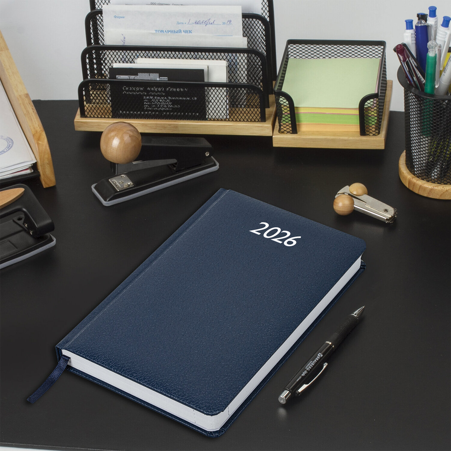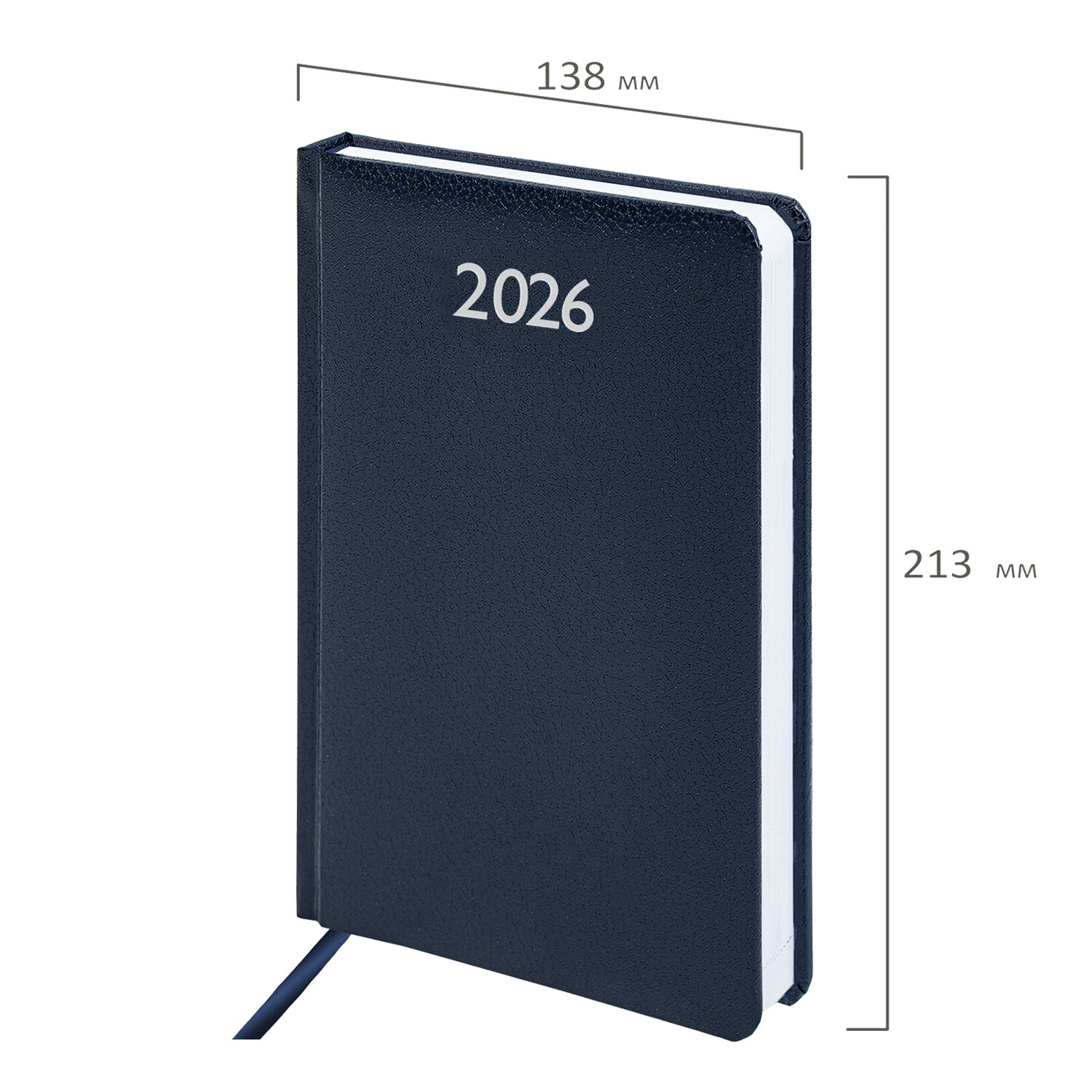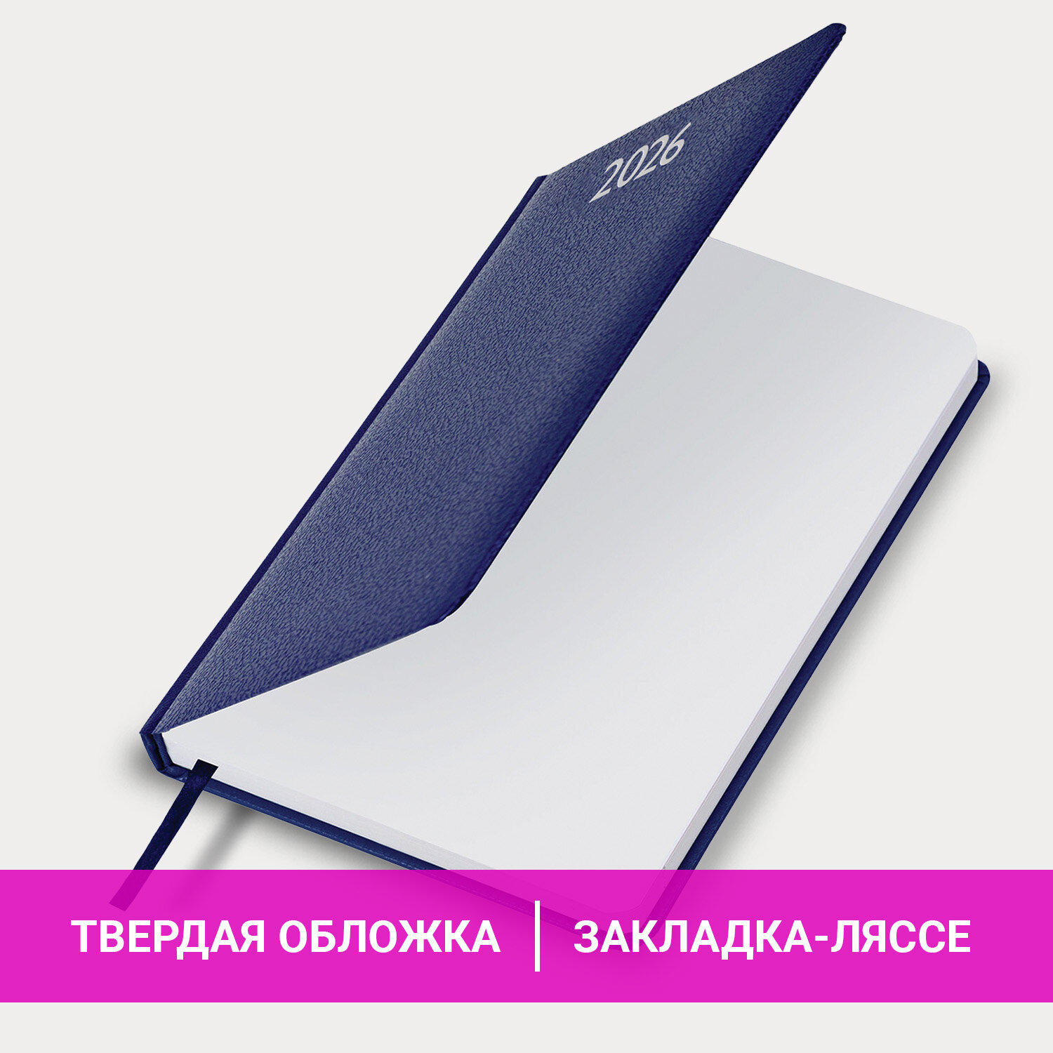 Ежедневник датированный 2026, А5, 138×213 мм, BRAUBERG «Profile», балакрон, синий, 117073