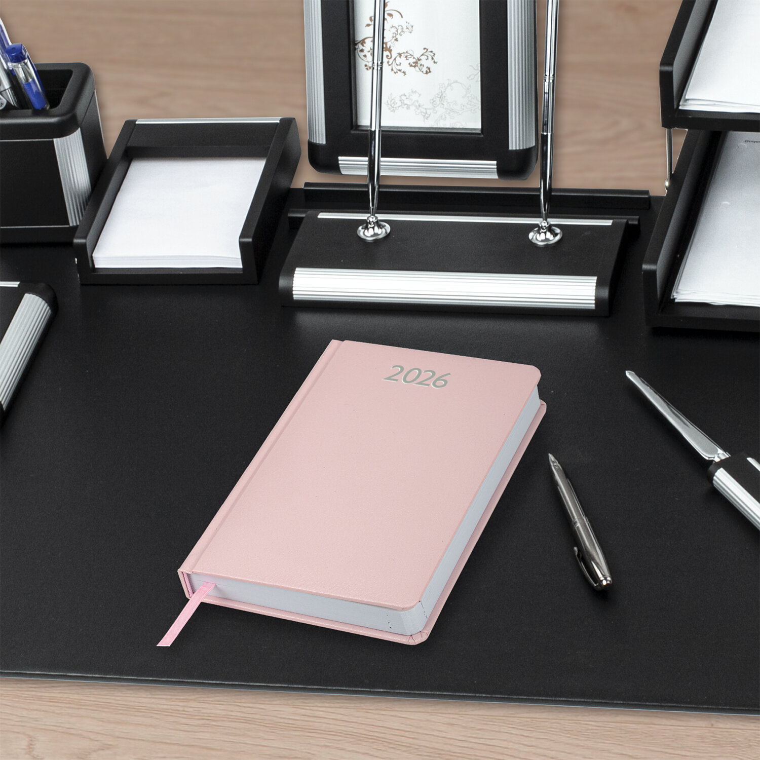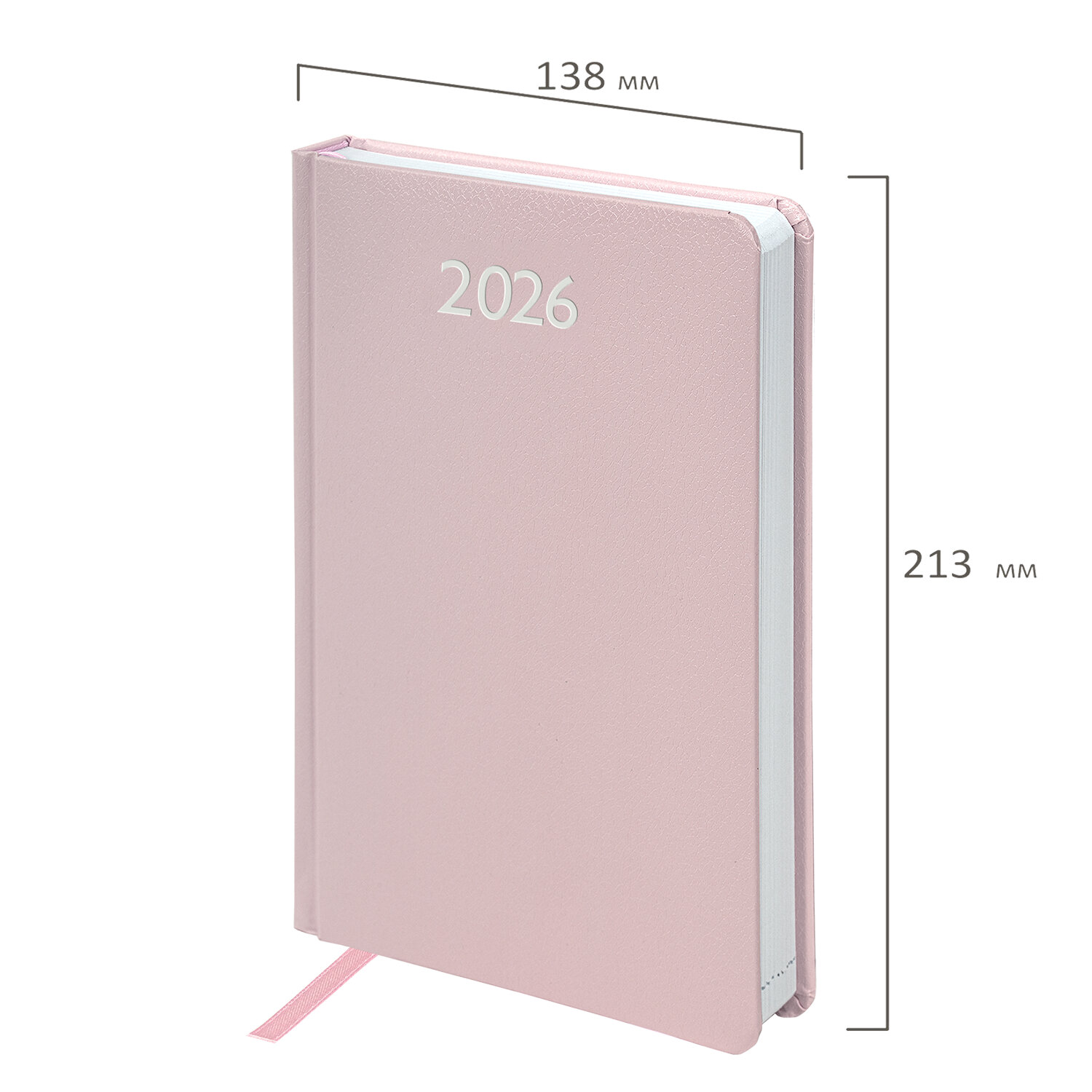 Ежедневник датированный 2026, А5, 138×213 мм, BRAUBERG «Profile», балакрон, светло-розовый, 117075