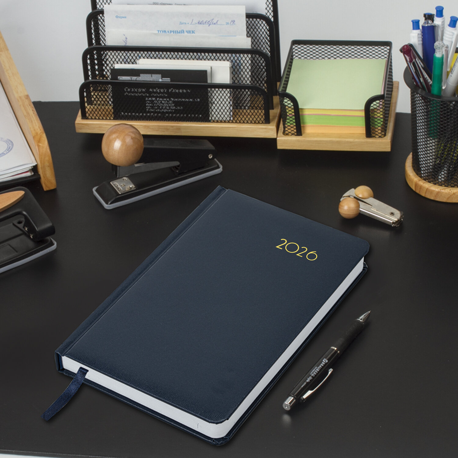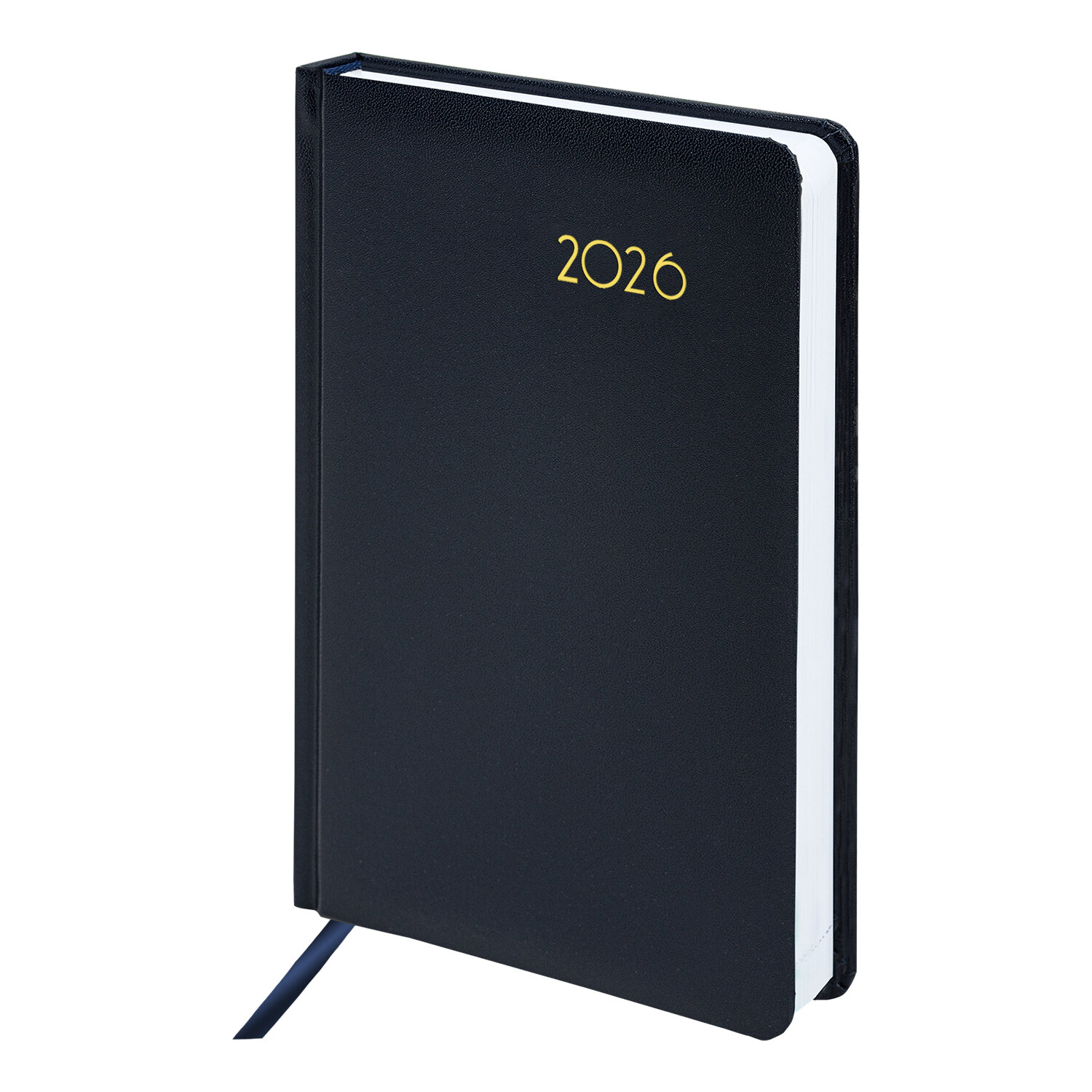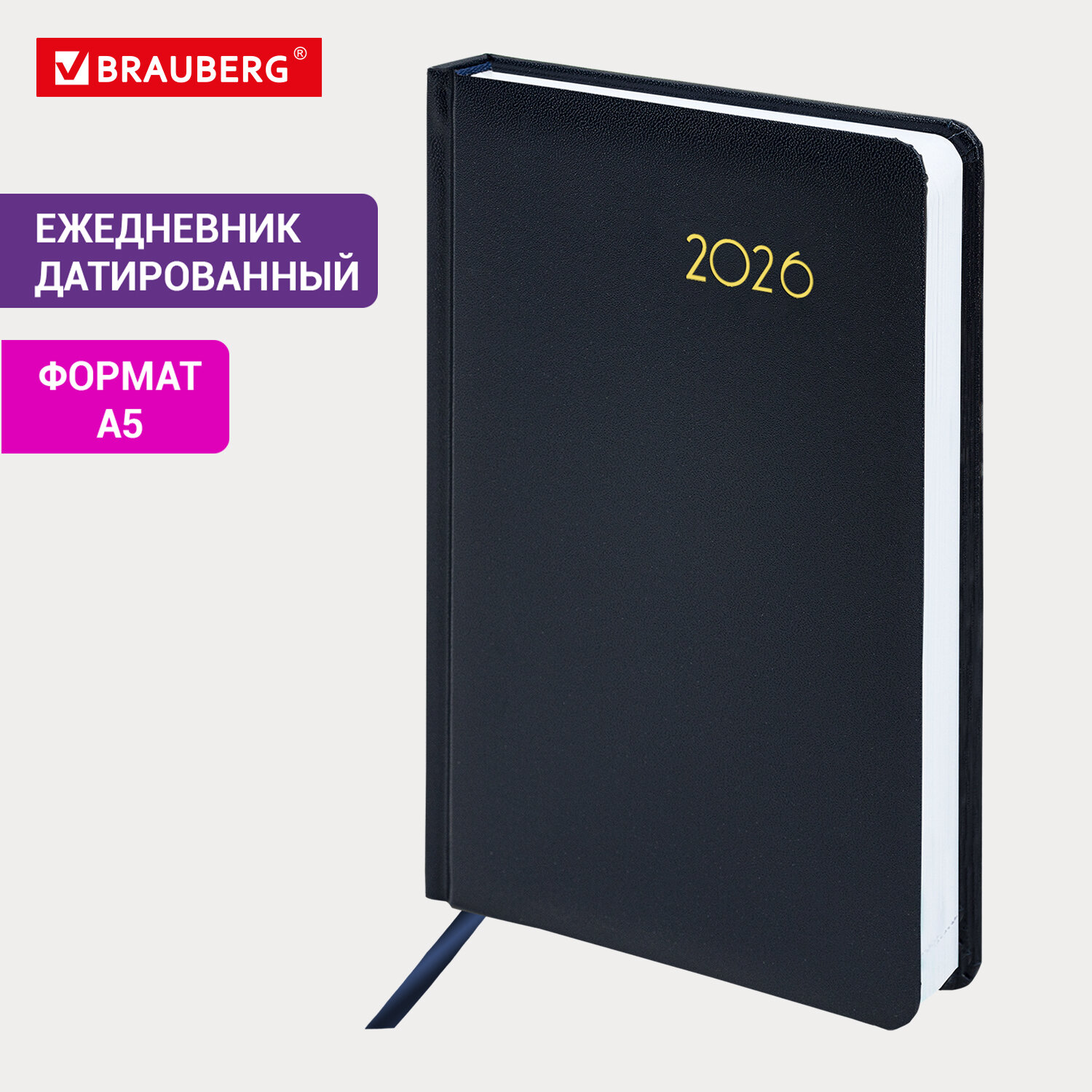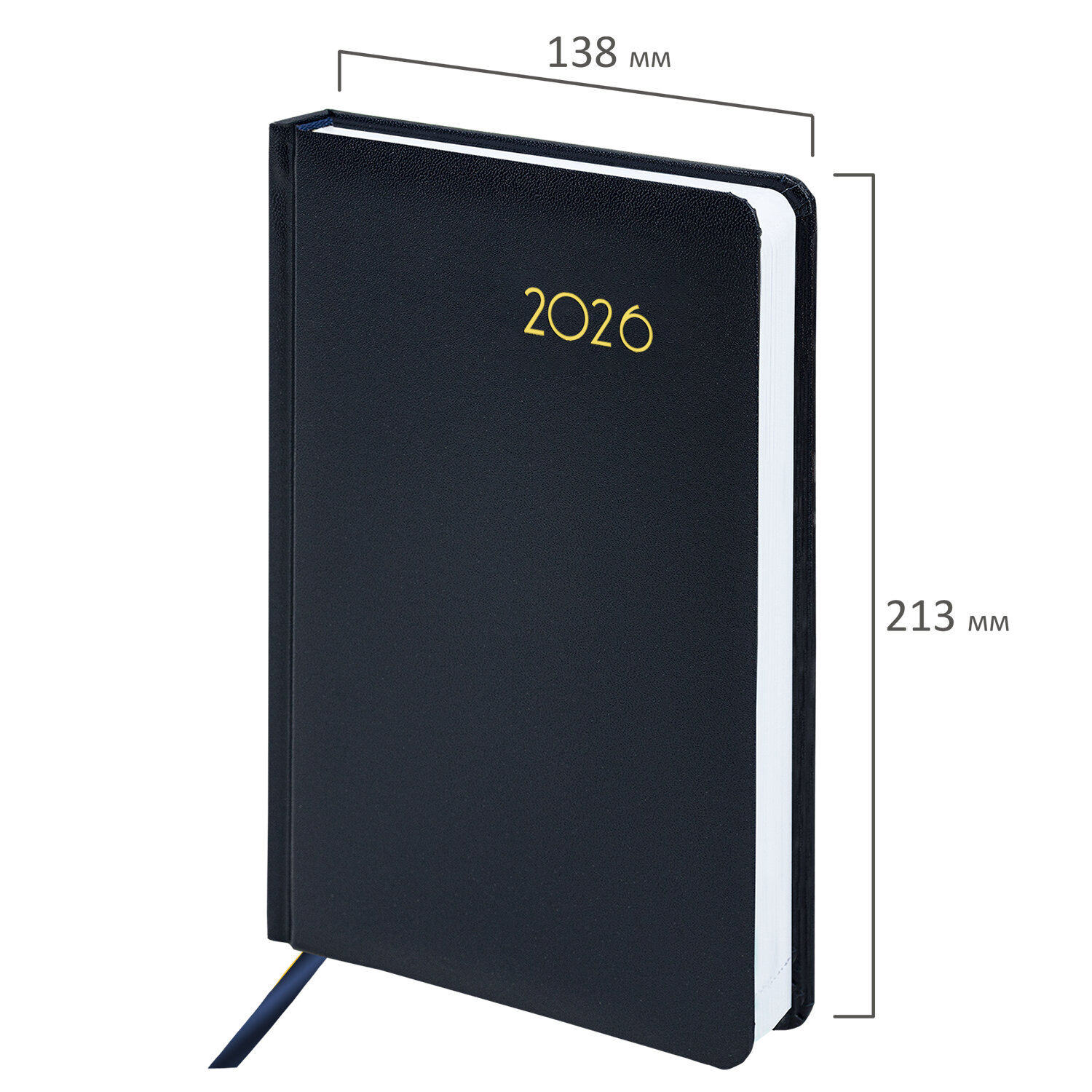 Ежедневник датированный 2026, А5, 138×213 мм, BRAUBERG «Select», балакрон, темно-синий, 117085