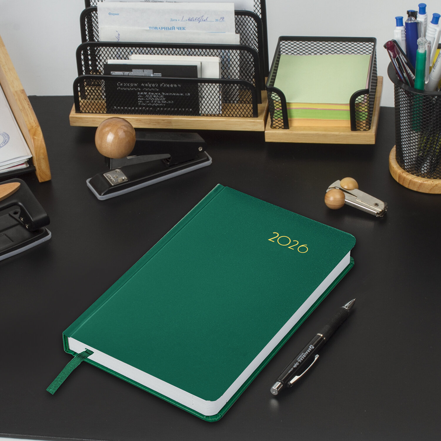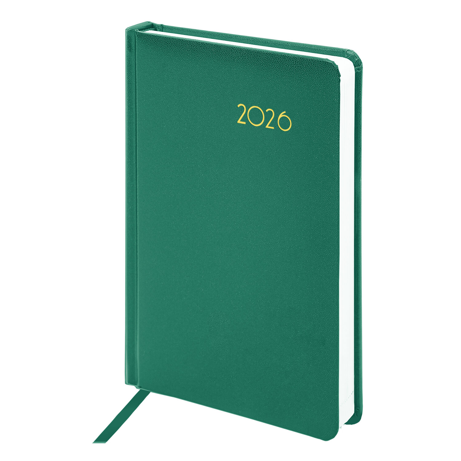 Ежедневник датированный 2026, А5, 138×213 мм, BRAUBERG «Select», балакрон, зеленый, 117083