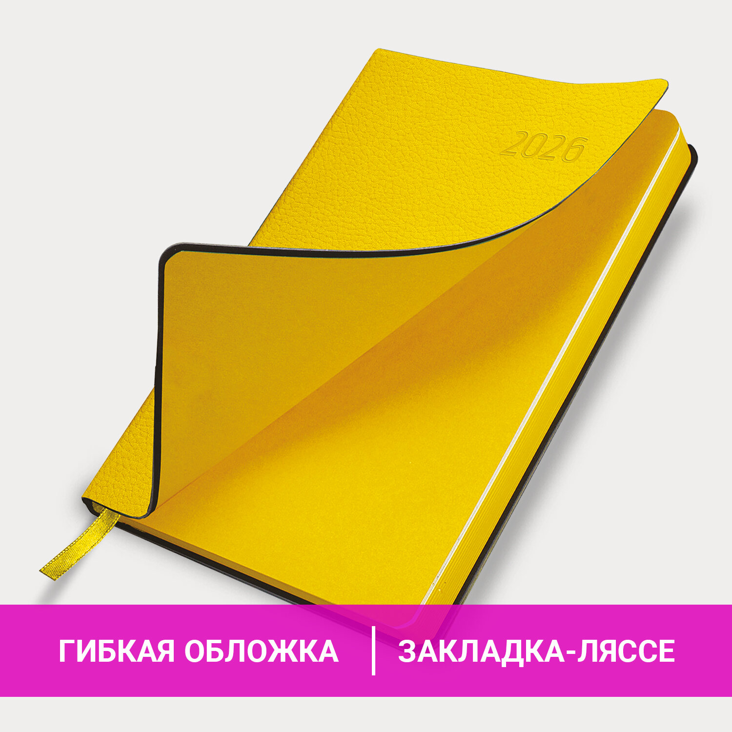 Внутренний блок включает 168 листов тонированной бумаги плотностью 70 г/м2. Каждая страничка имеет перфорированный угол. Благодаря стандартному формату А5 (138х213 мм) ежедневник удобно использовать как в офисе, так и на выездных деловых встречах. Мягкая (интегральная) обложка стилизована под фактурную кожу неординарного желтого цвета. Подходит для горячего тиснения. Дополнением является закладка-ляссе, с помощью которой при необходимости можно быстро открыть ежедневник на нужной странице. Помимо прочего, ежедневник снабжен справочным материалом. В конце есть 4 страницы для записей и заметок.Датированный ежедневник BRAUBERG «Stylish» идеально подойдет для офисных работников и людей, занимающихся бизнесом.