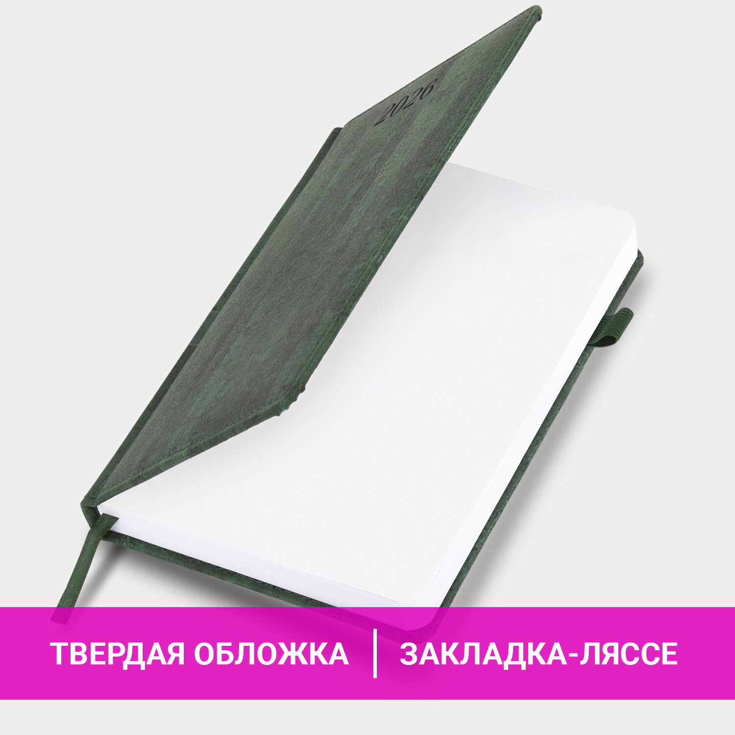 Ежедневник датированный 2026 А5 138×213 мм, BRAUBERG «Wood», под кожу, держатель для ручки, зеленый, 117109