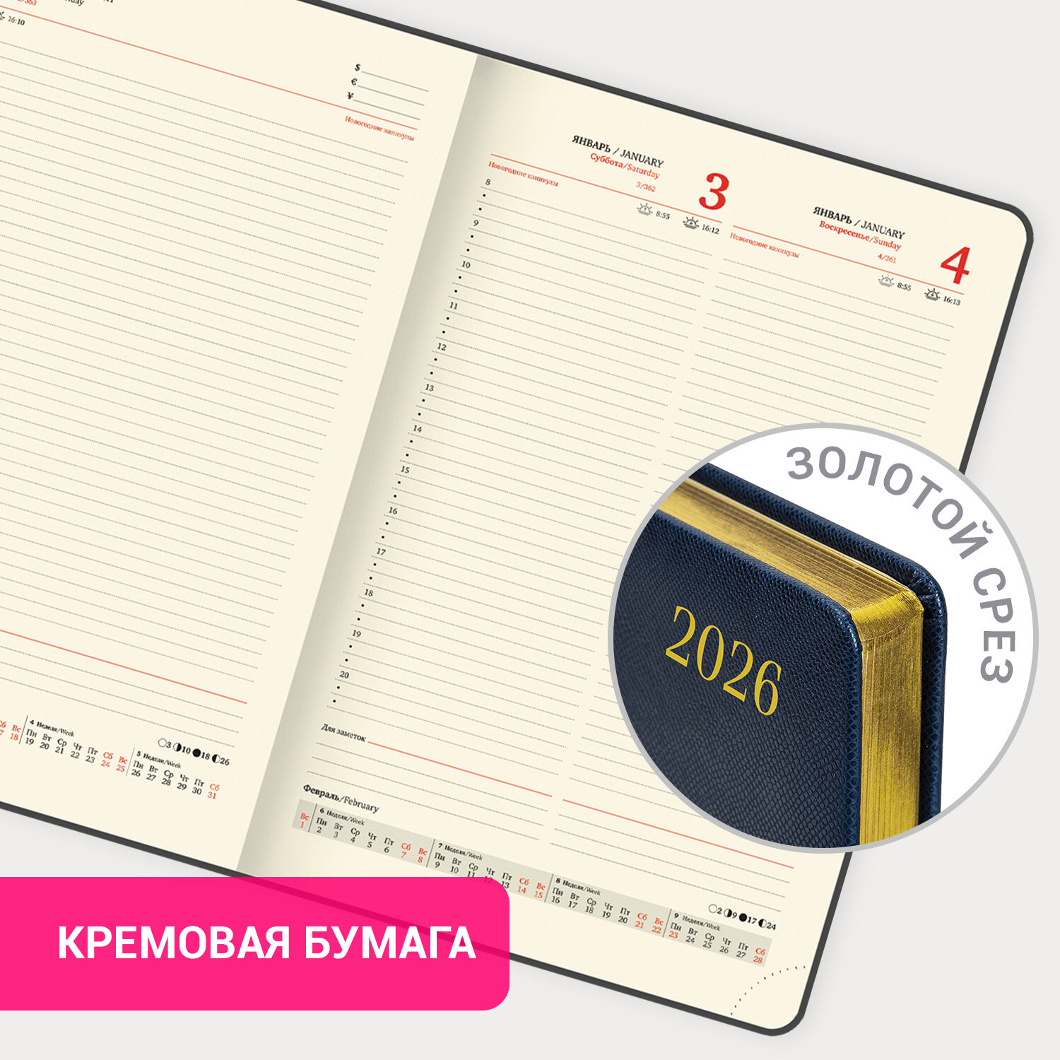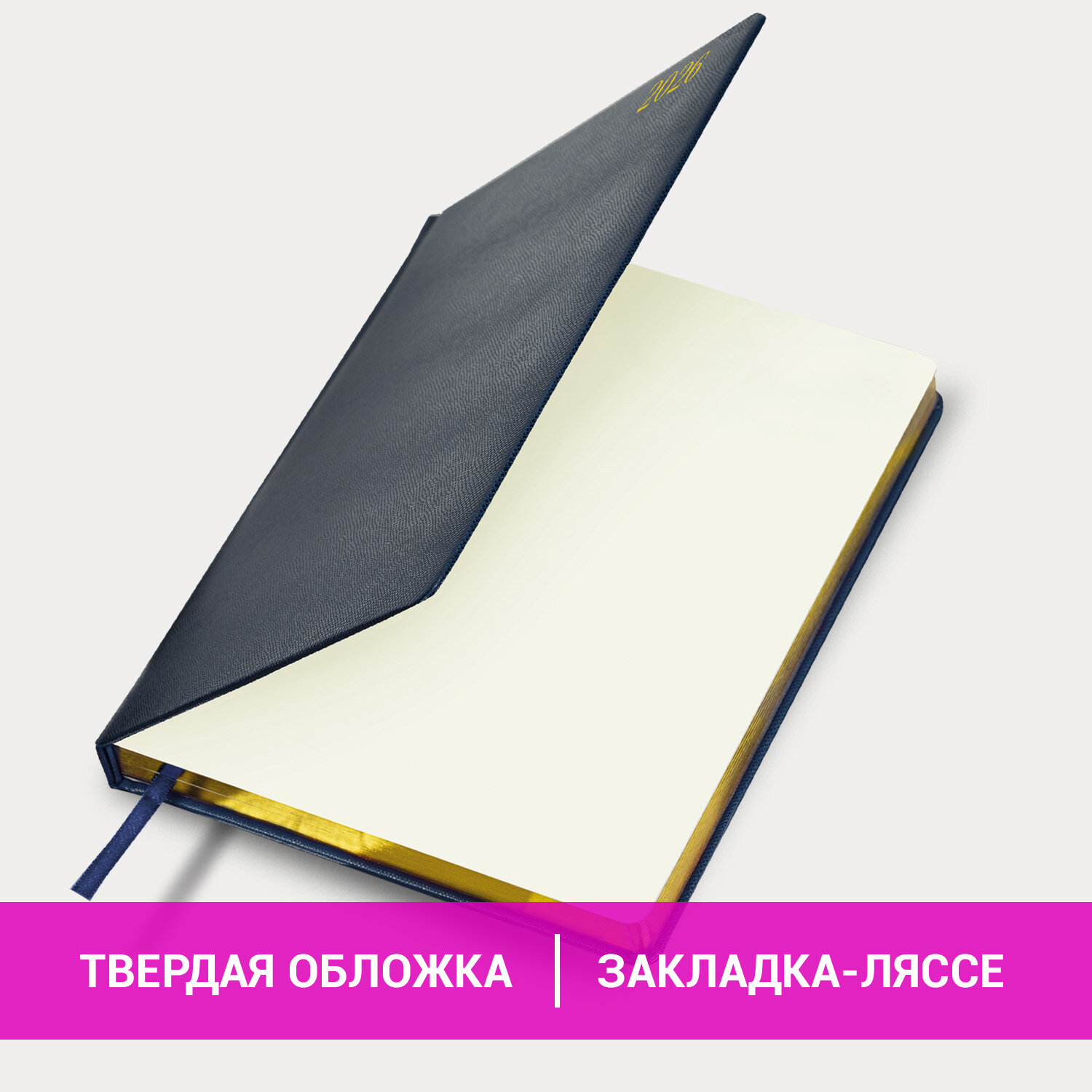 Ежедневник датированный 2026 БОЛЬШОЙ ФОРМАТ 210х297 мм, А4, BRAUBERG «Iguana», под кожу, синий, 117245