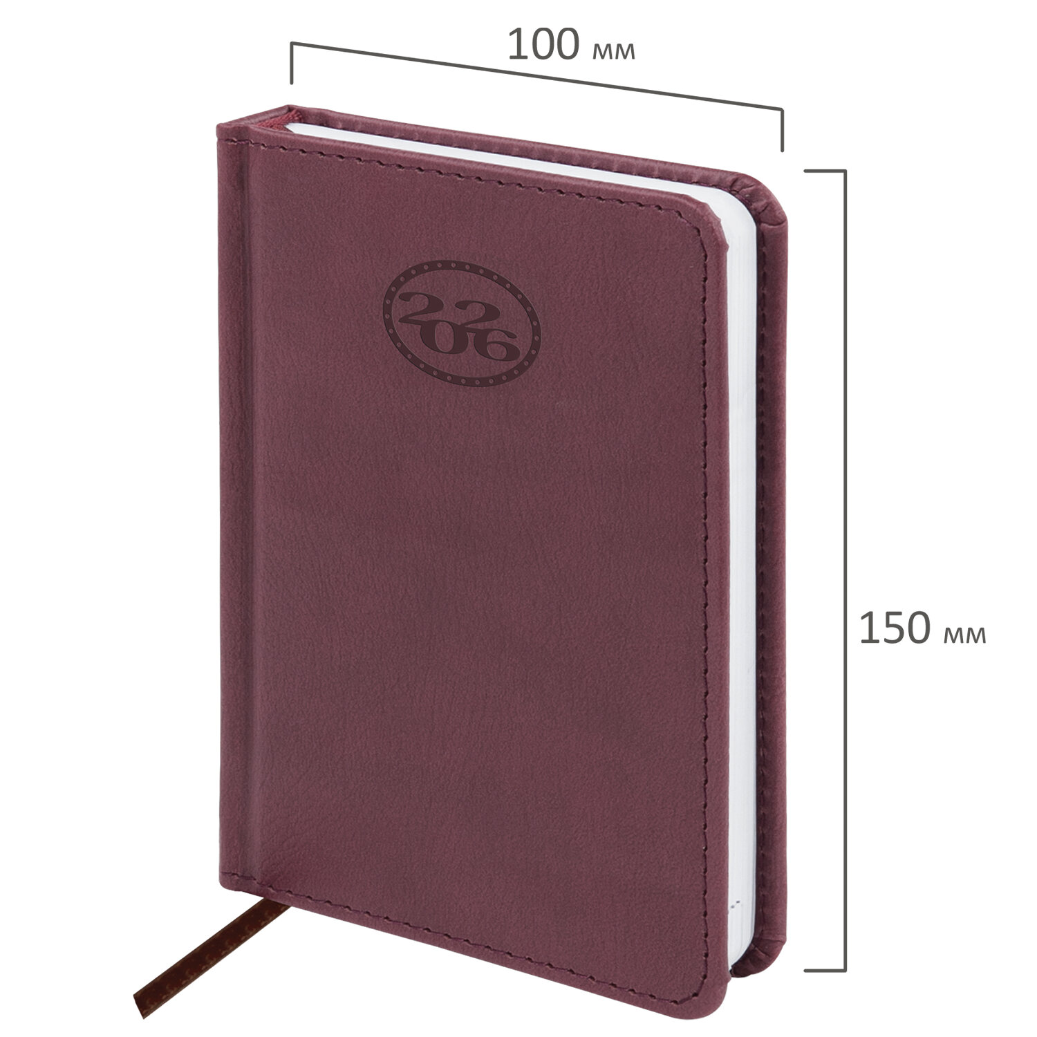 Ежедневник датированный 2026, МАЛЫЙ ФОРМАТ 100х150 мм, А6, BRAUBERG «Favorite», под кожу, коричневый, 117249