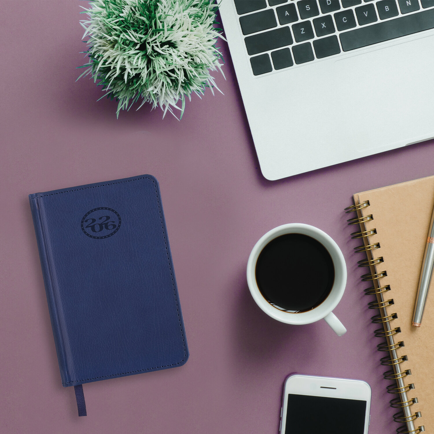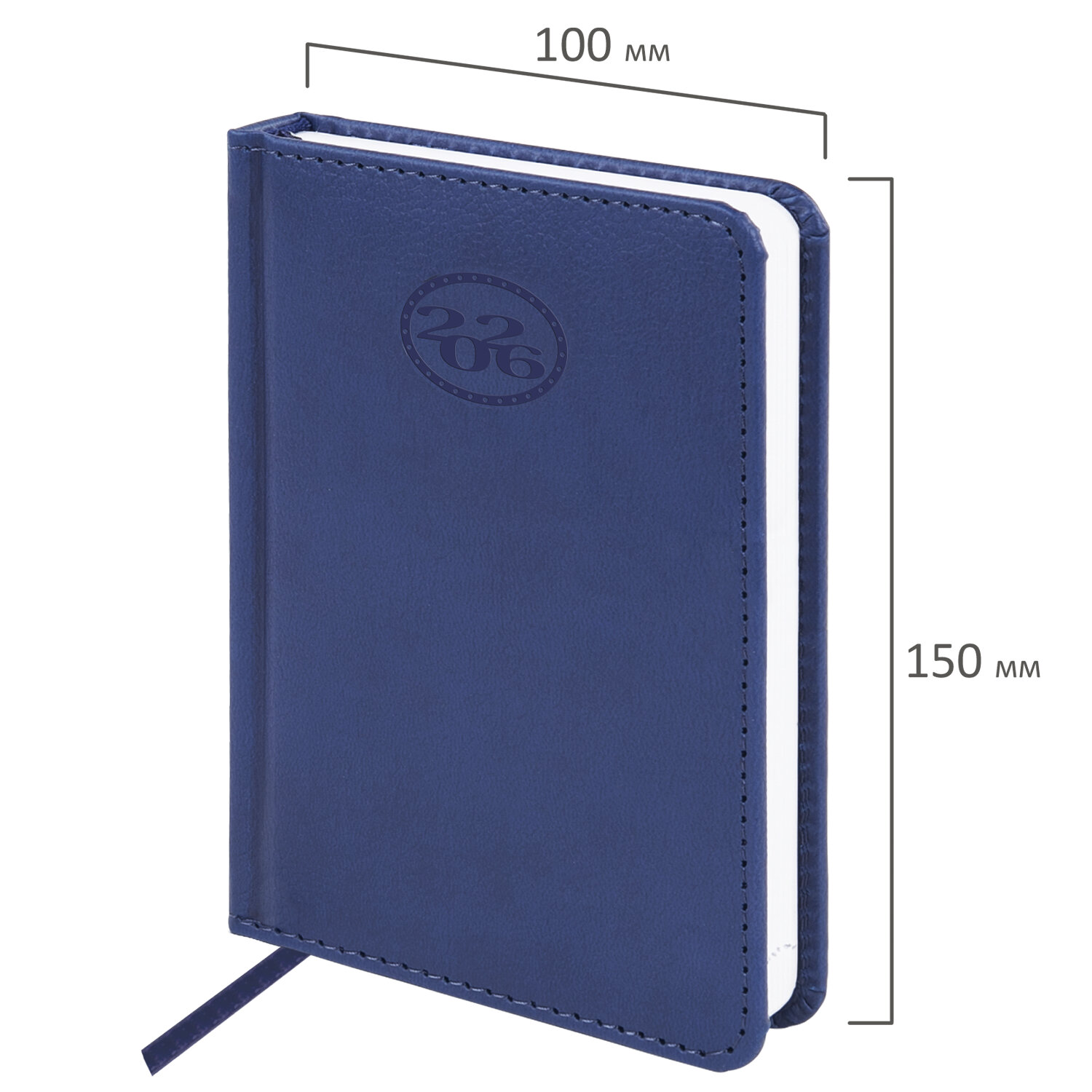 Ежедневник датированный 2026, МАЛЫЙ ФОРМАТ 100х150 мм, А6, BRAUBERG «Favorite», под кожу, синий, 117250