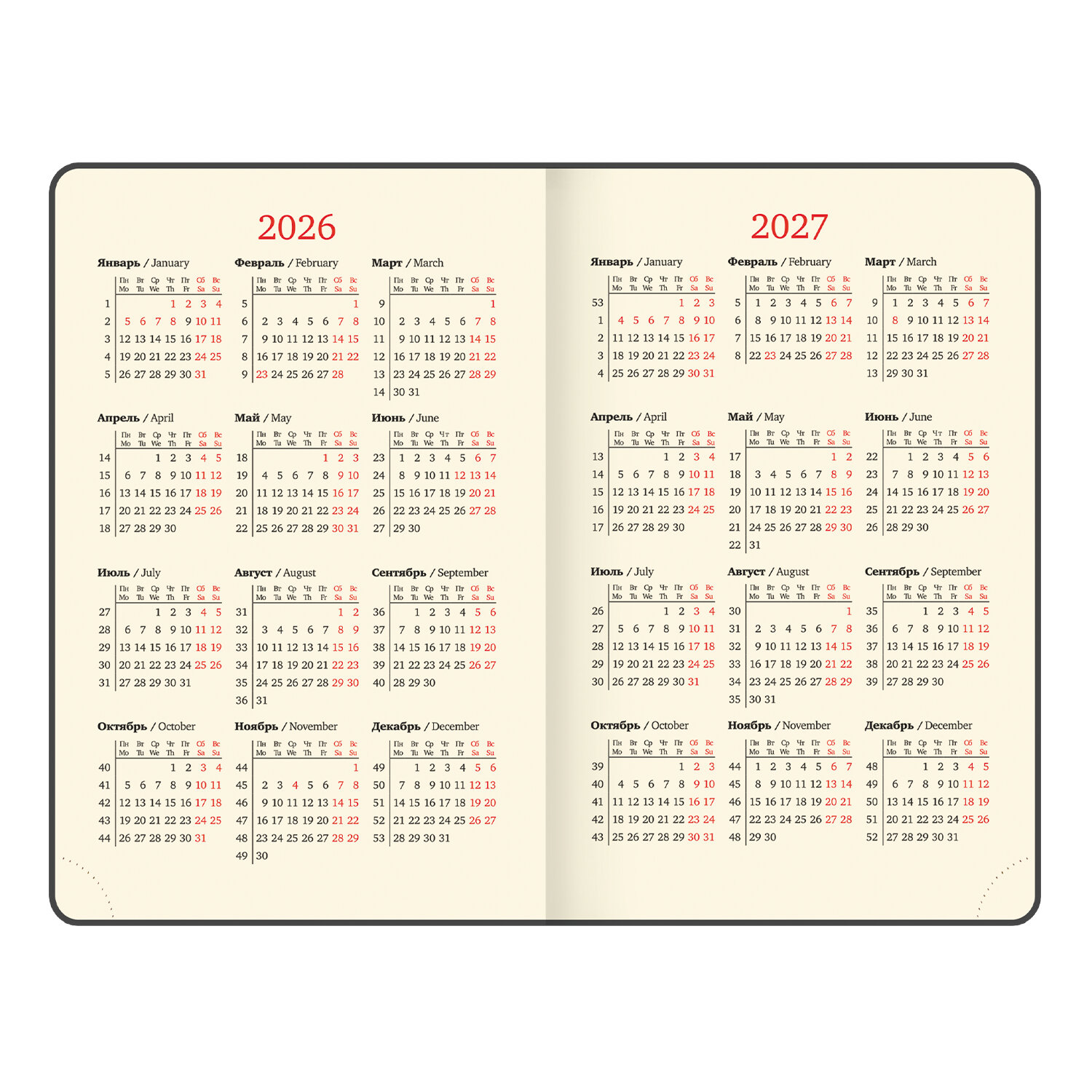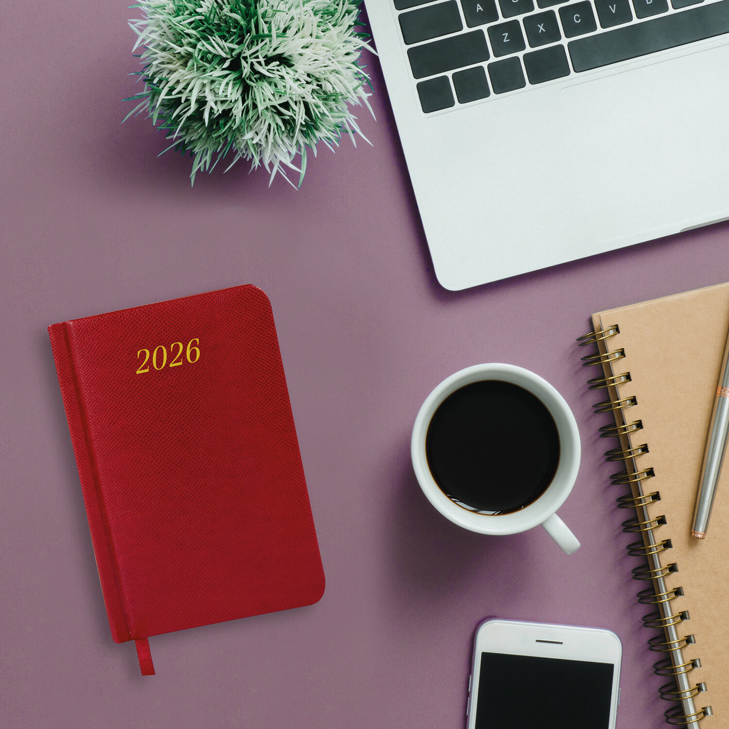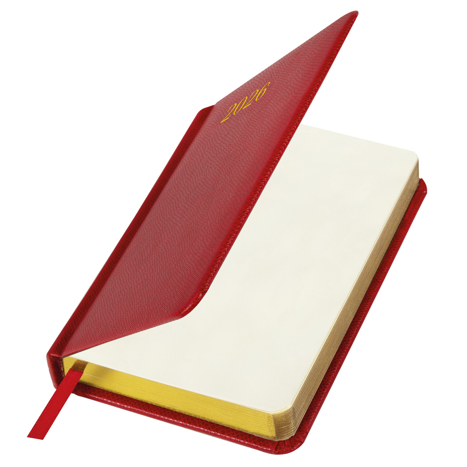 Ежедневник датированный 2026, МАЛЫЙ ФОРМАТ 100х150 мм, А6, BRAUBERG «Iguana», под кожу, красный, 117251