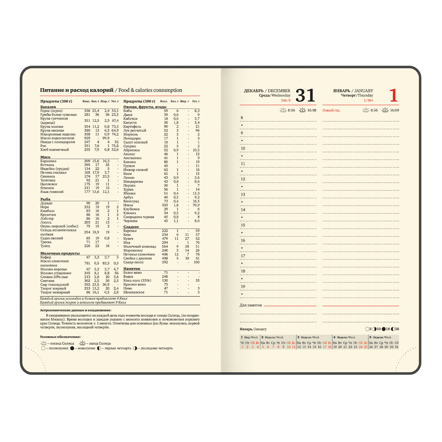 Внутренний блок включает 168 листов тонированной бумаги плотностью 70 г/м2. Каждая страничка имеет перфорированный угол. Благодаря малому формату А6 (100х150 мм) ежедневник удобно использовать как в офисе, так и на выездных деловых встречах. Твердая обложка классического красного цвета стилизована под кожу рептилии. Подходит для горячего тиснения. Срез ежедневника украшен золотым фольгированием – это подчеркивает премиальность изделия.Дополнением является закладка-ляссе, с помощью которой при необходимости можно быстро открыть ежедневник на нужной странице. Помимо прочего, ежедневник снабжен обширным справочным материалом. В конце ежедневника есть 4 страницы для записей и заметок.Датированный ежедневник BRAUBERG «Iguana» идеально подойдет для офисных работников и людей, занимающихся бизнесом, ценящих свое драгоценное время.
