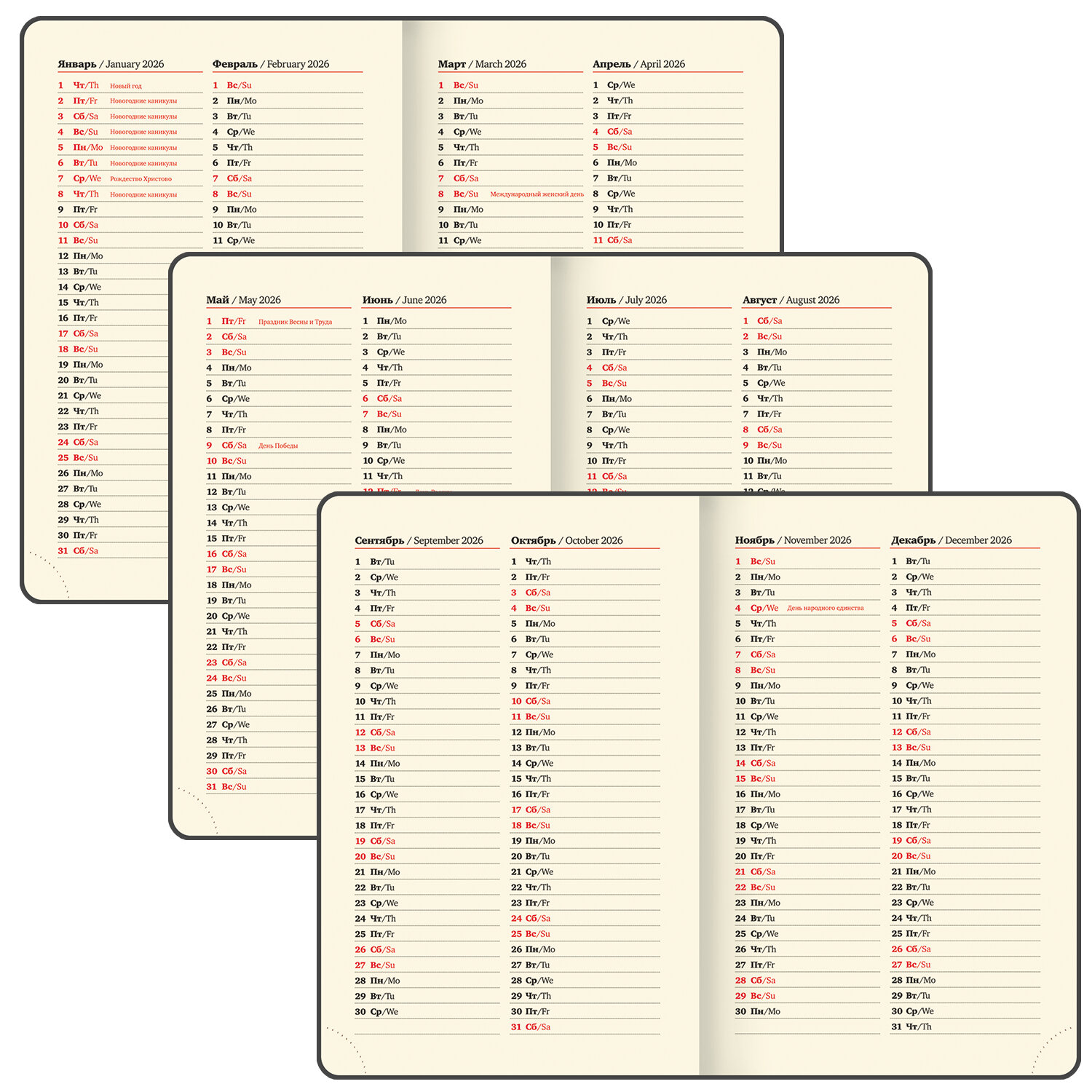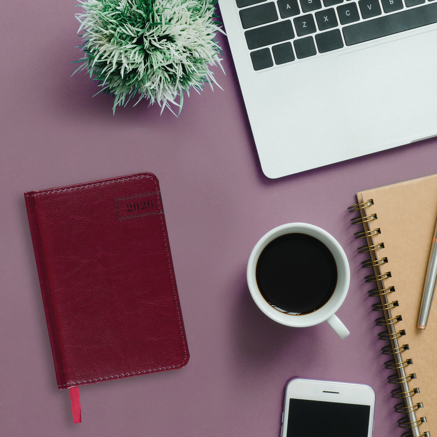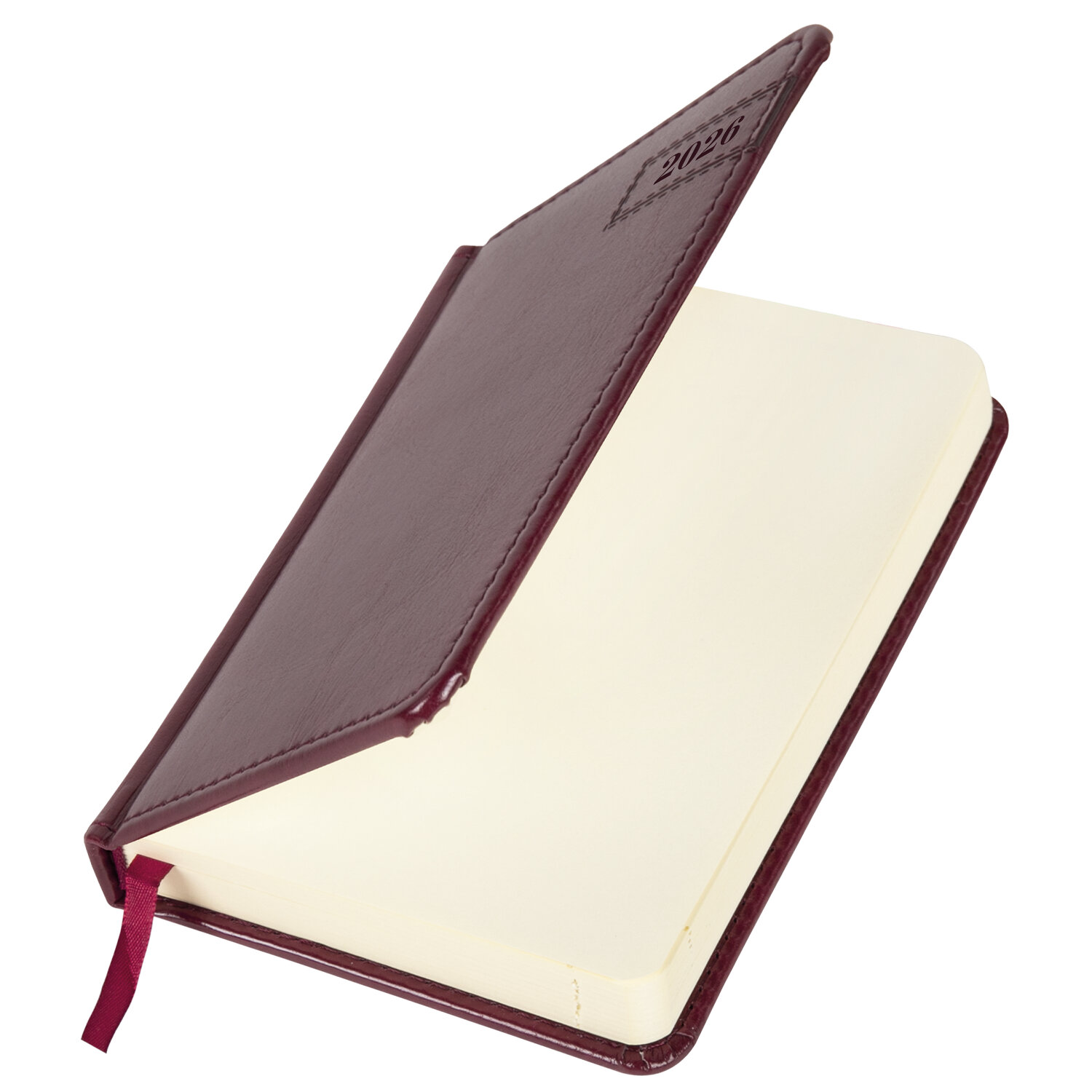 Ежедневник датированный 2026, МАЛЫЙ ФОРМАТ 100х150 мм, А6, BRAUBERG «Imperial», под кожу, бордо, 117254
