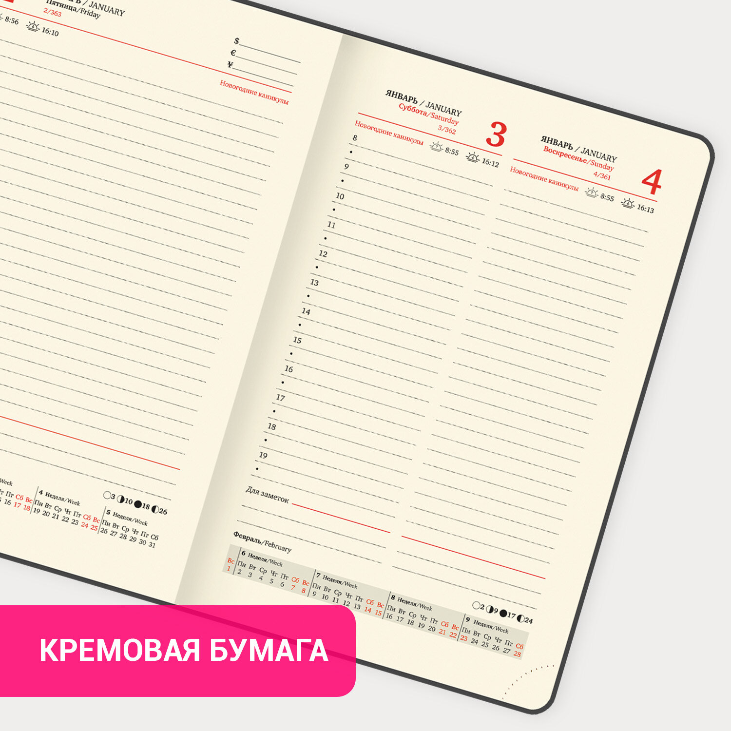 Внутренний блок включает 168 листов тонированной бумаги плотностью 70 г/м2. Каждая страничка имеет перфорированный угол. Благодаря малому формату А6 (100х150 мм) ежедневник удобно использовать как в офисе, так и на выездных деловых встречах. Твердая обложка благородного бордового цвета стилизована под гладкую кожу. Материал обложки подходит для горячего тиснения. Дополнением является закладка-ляссе, с помощью которой при необходимости можно быстро открыть ежедневник на нужной странице. Обширный справочный материал расширяет функциональность ежедневника. В конце внутреннего блока есть 4 страницы для записей и заметок.Датированный ежедневник BRAUBERG «Imperial» идеально подойдет для офисных работников и людей, занимающихся бизнесом, ценящих свое драгоценное время.