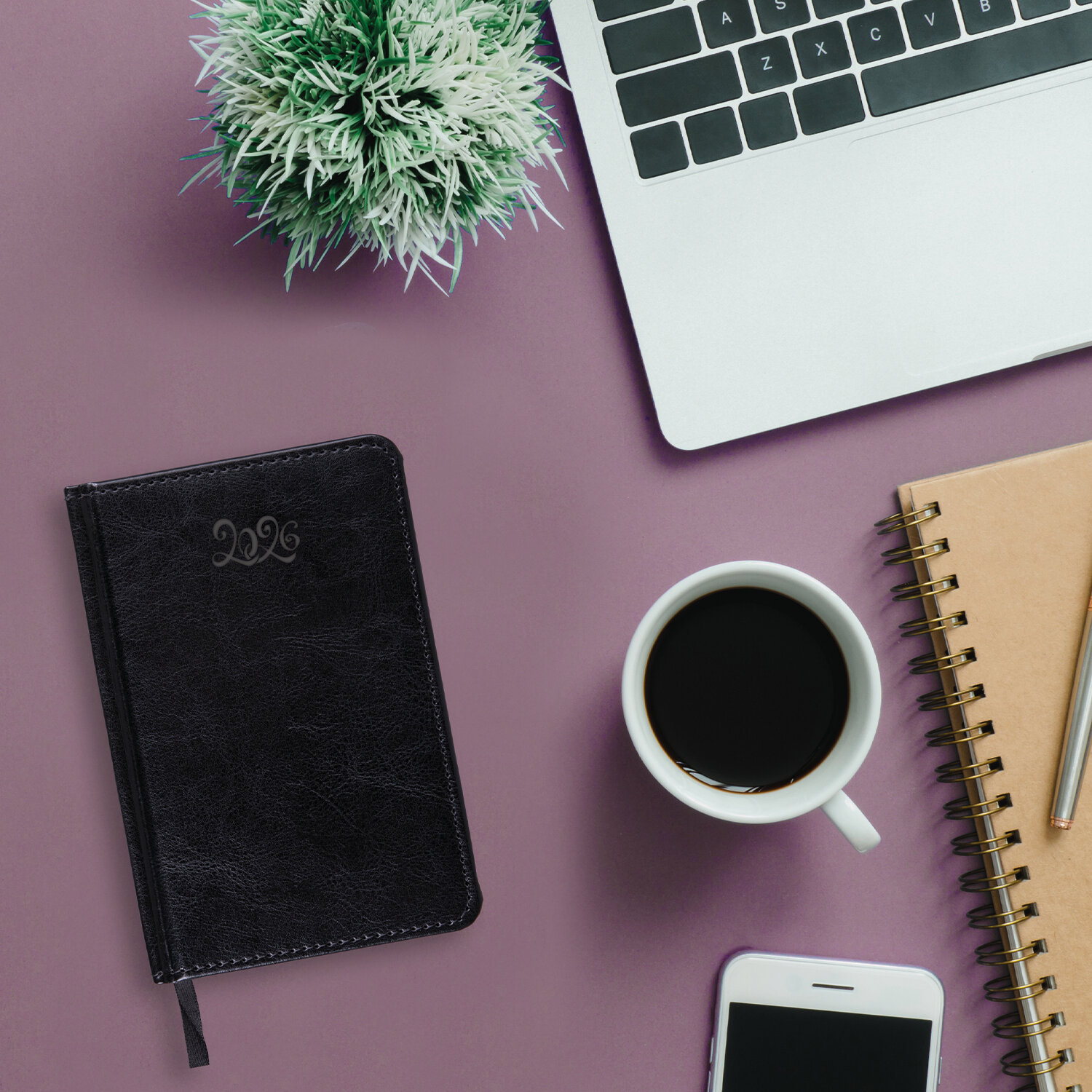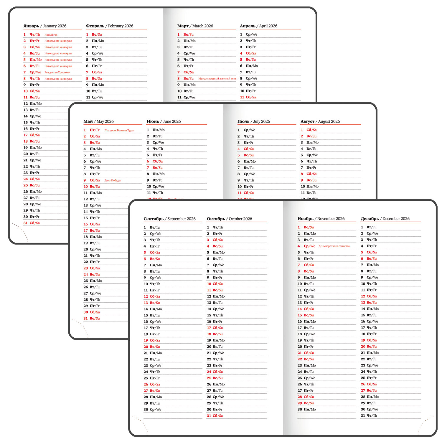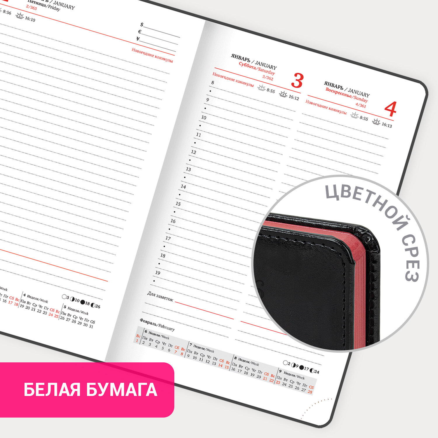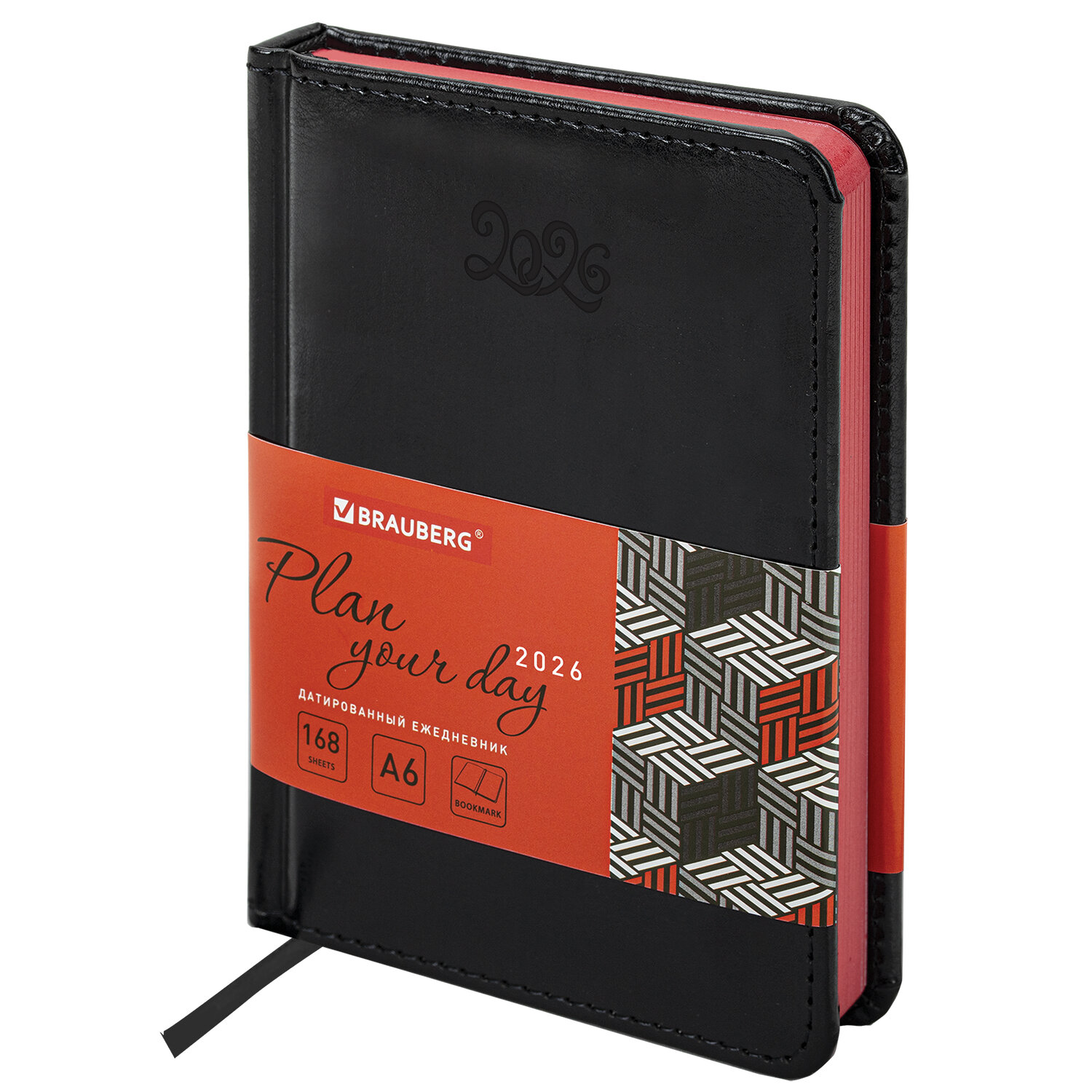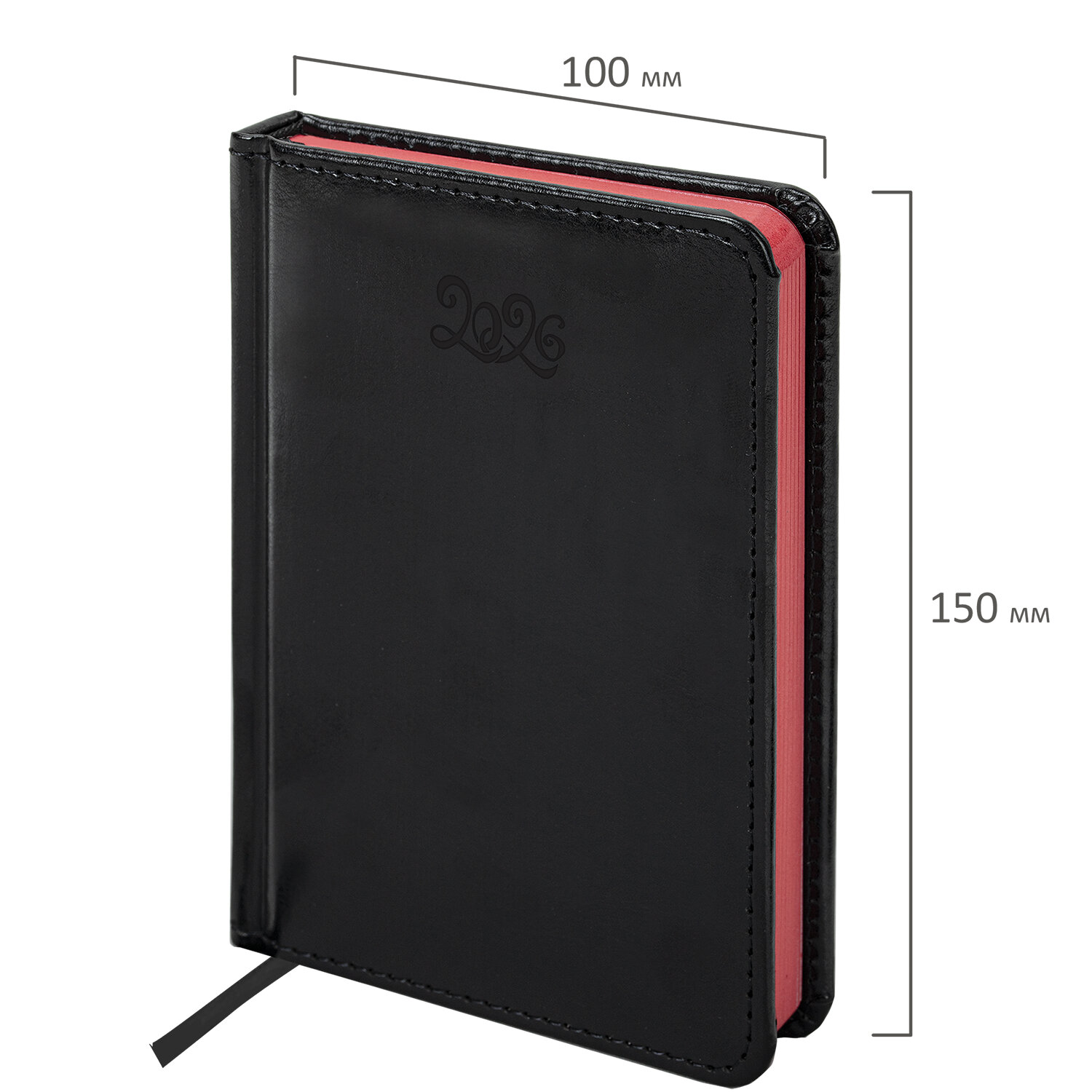 Ежедневник датированный 2026, МАЛЫЙ ФОРМАТ 100х150 мм, А6, BRAUBERG «Rainbow», под кожу, черный, 117257