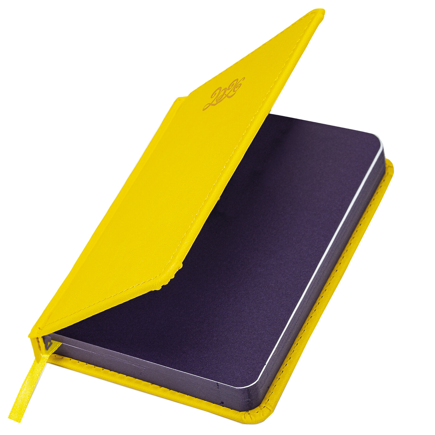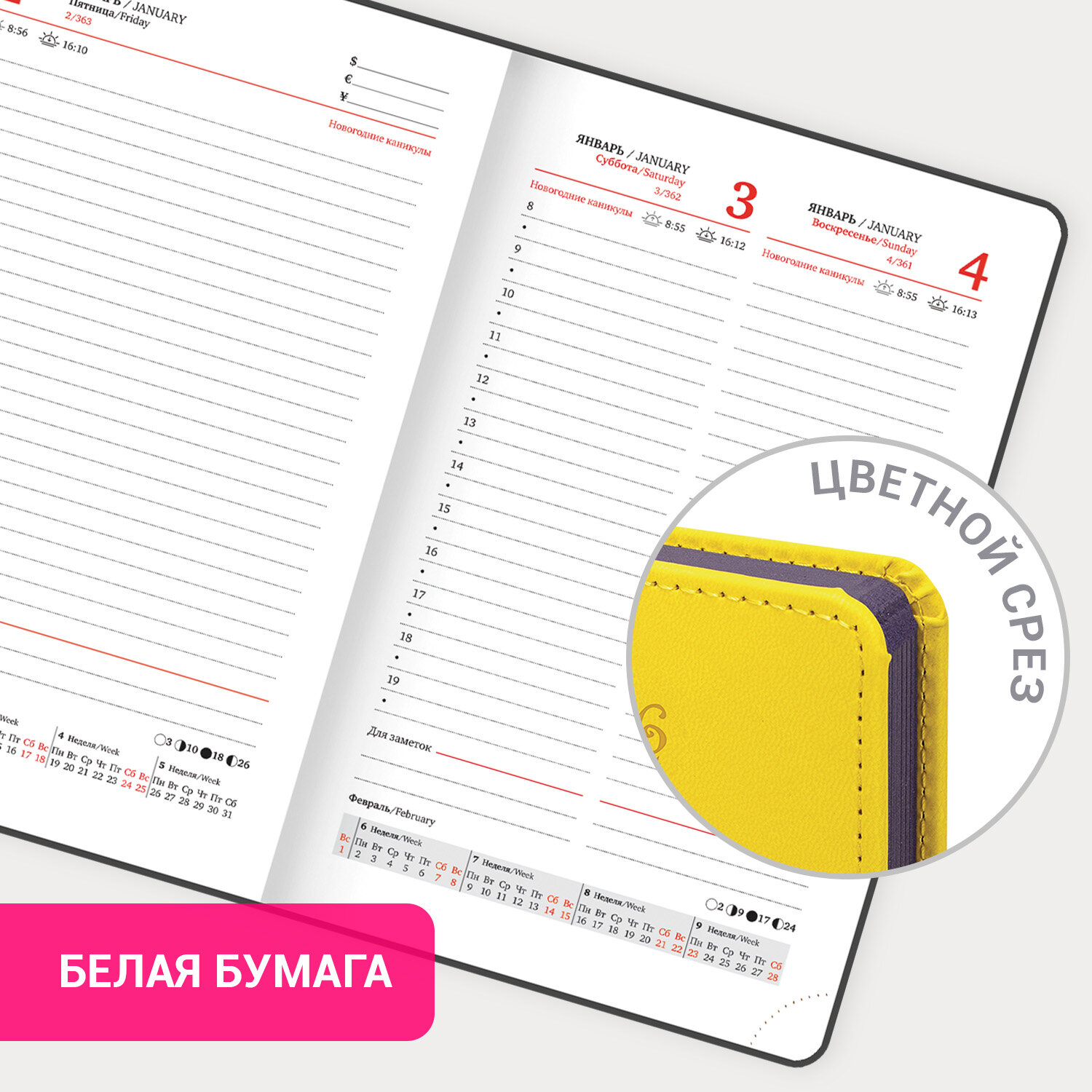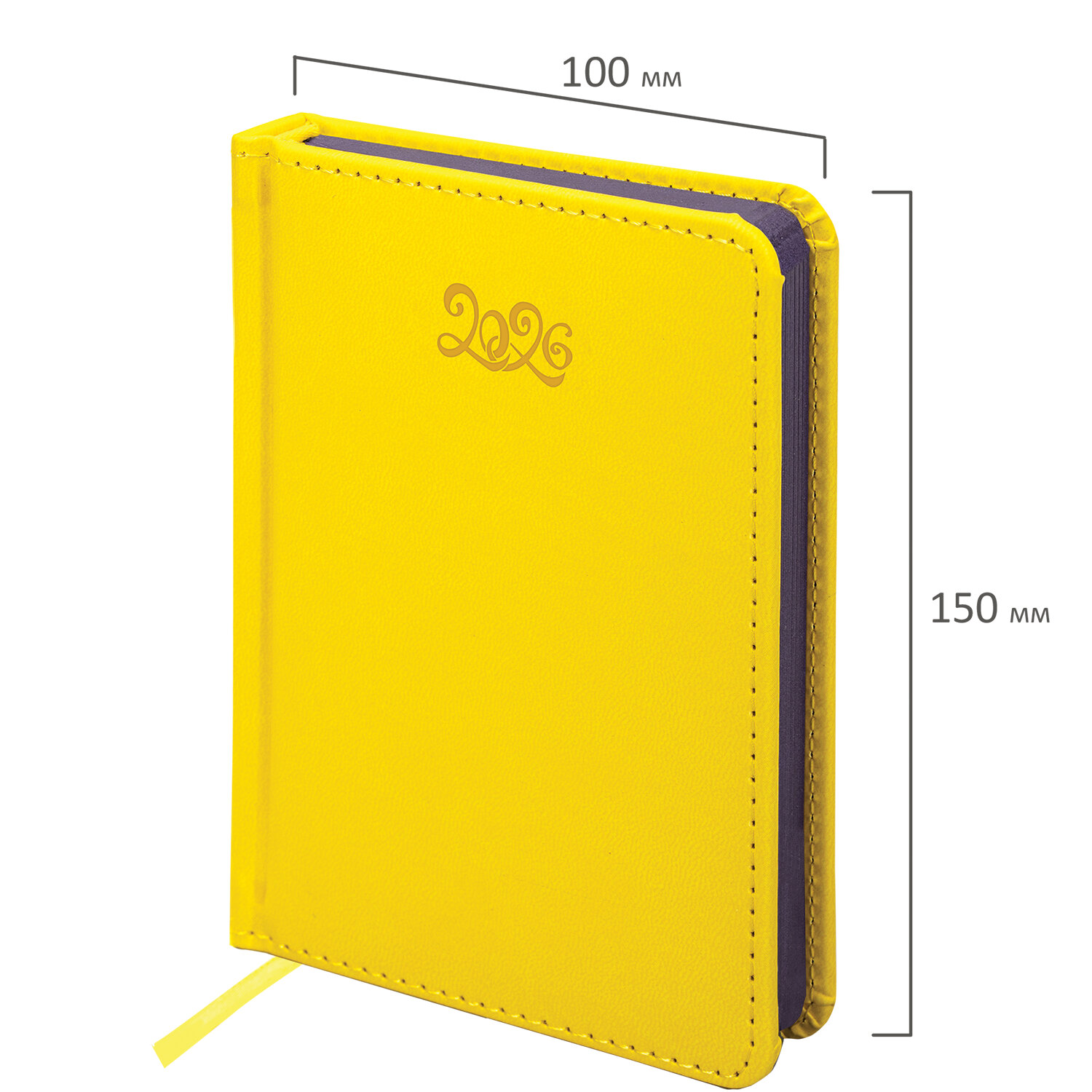 Ежедневник датированный 2026, МАЛЫЙ ФОРМАТ 100х150 мм, А6, BRAUBERG «Rainbow», под кожу, желтый, 117258