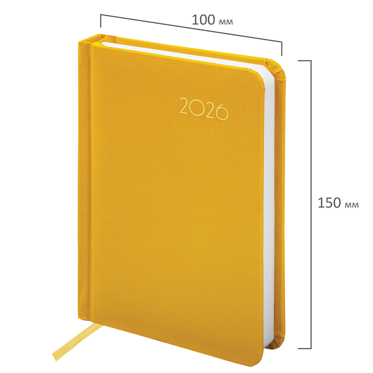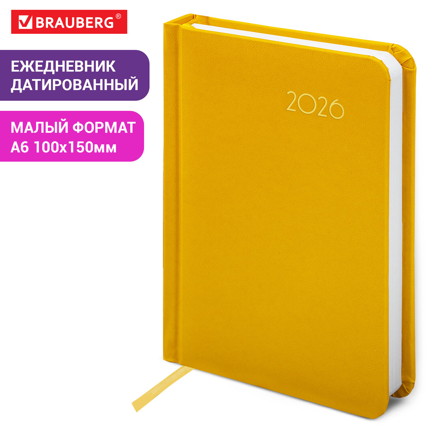 Ежедневник датированный 2026, МАЛЫЙ ФОРМАТ 100х150 мм, А6, BRAUBERG «Select», балакрон, желтый, 117261