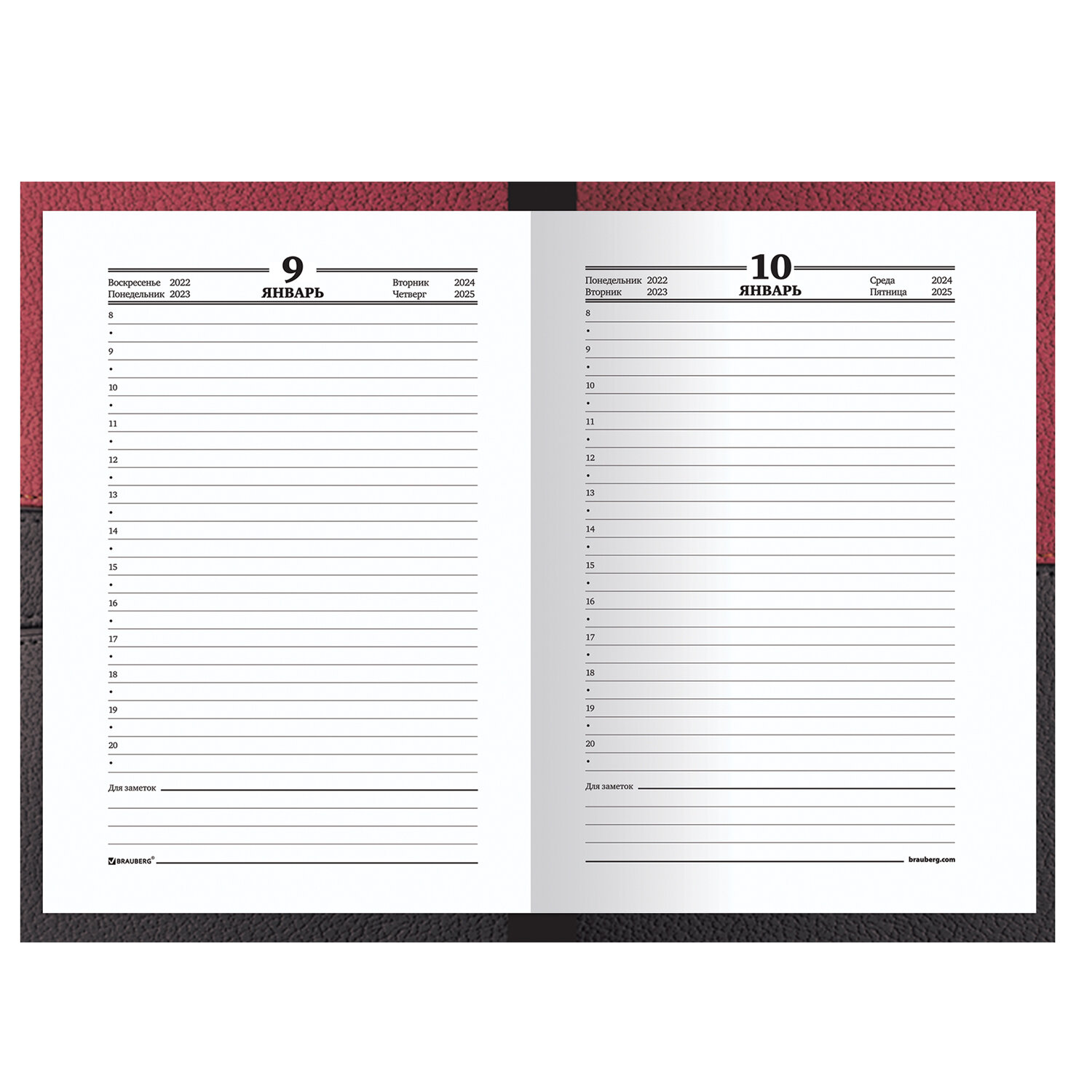 Ежедневник датированный на 4 года А5 135х207 мм BRAUBERG ламинированный 192 л., «Кожа бордо», 121592