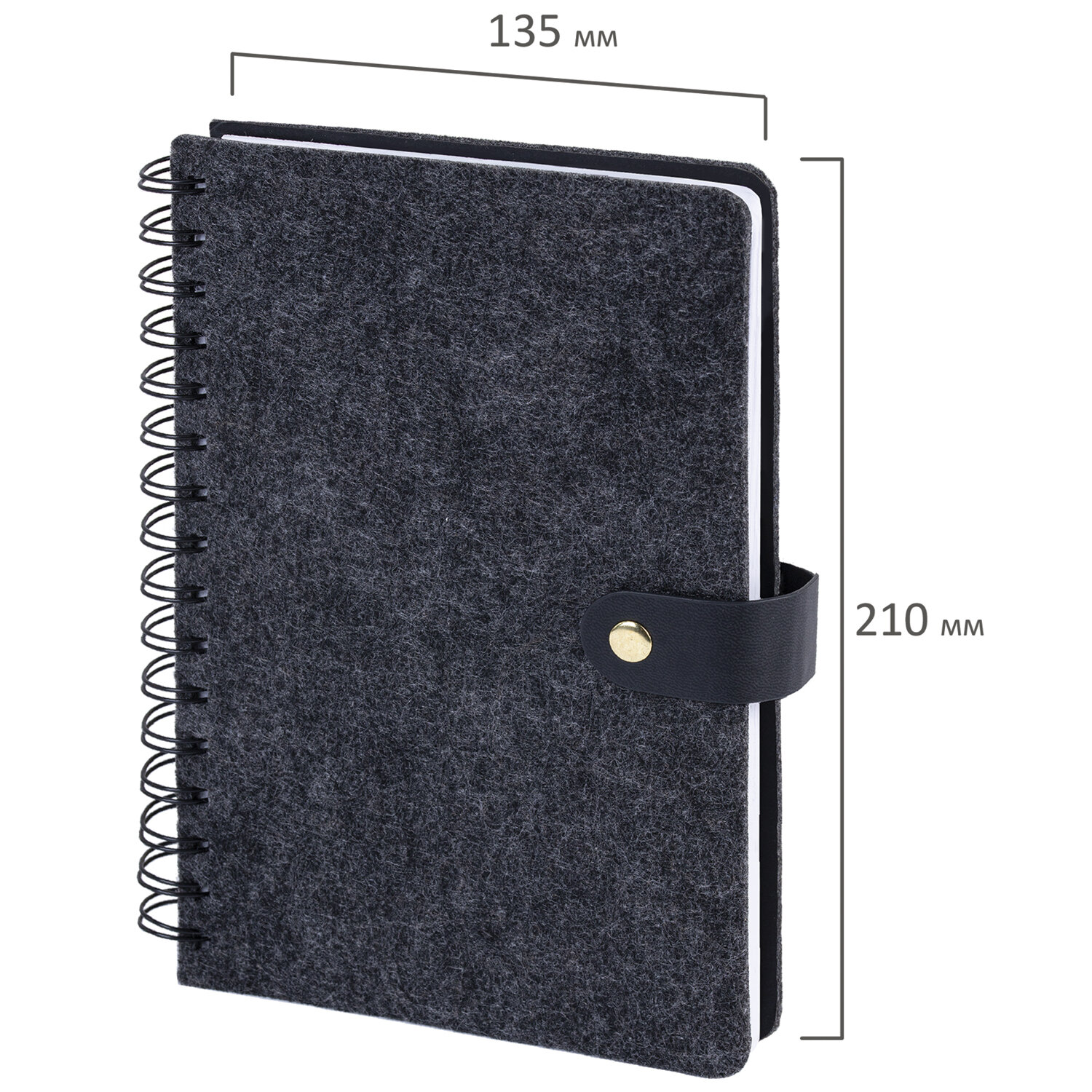 Ежедневник недатированный, А5, 135х210 мм, BRAUBERG «Felt», на гребне, войлок, застежка на кнопке, 160 л., черный, 117132