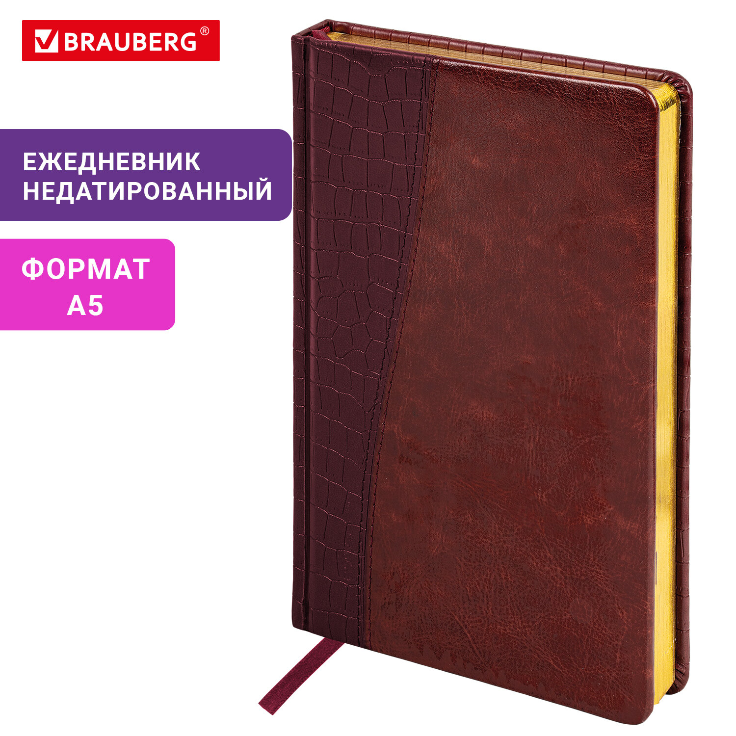 Внутренний блок включает 160 листов тонированной бумаги плотностью 70 г/м2. Каждая страничка имеет перфорированный угол. Благодаря стандартному формату А5 ежедневник удобно использовать как в офисе, так и на выездных деловых встречах. Твердая обложка состоит из двух материалов – под кожу крокодила и гладкую кожу. Подходит для горячего тиснения. Срез ежедневника фольгирован под «золото», что придает ему особый шарм. Дополнением является закладка-ляссе, с помощью которой при необходимости можно быстро открыть ежедневник на нужной странице. Ежедневник снабжен обширным справочным материалом. В конце имеются 7 страниц для записей и заметок. Недатированный ежедневник BRAUBERG «Cayman» станет отличным подарком к любому празднику.