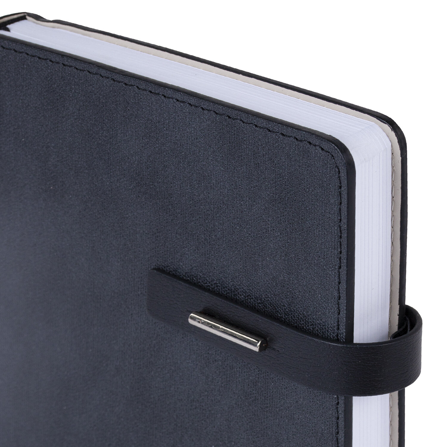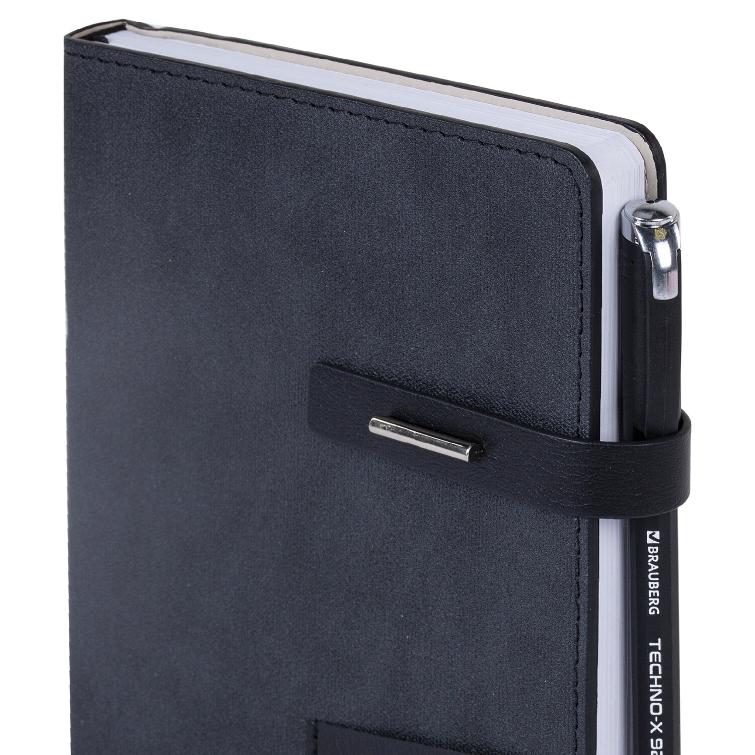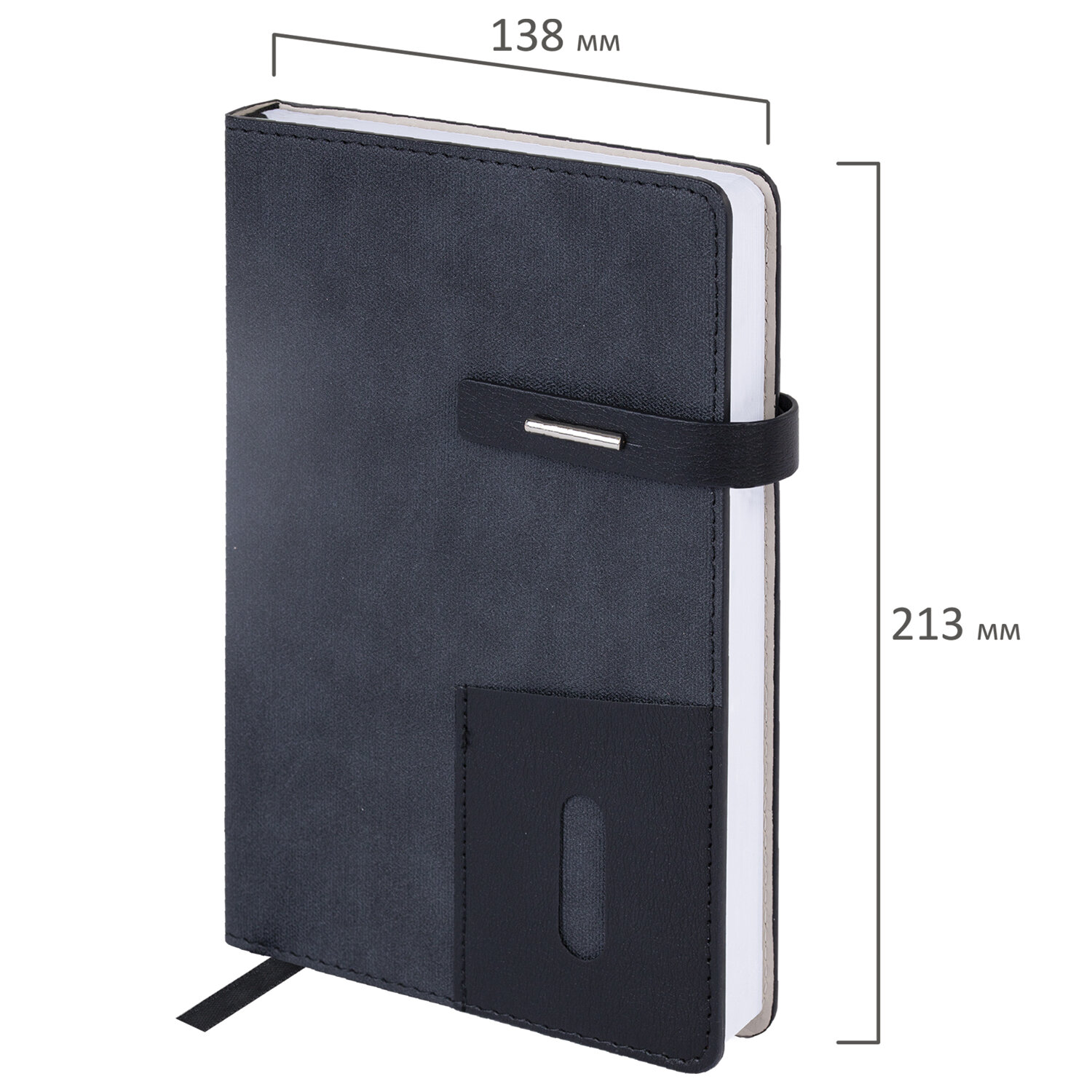 Внутренний блок включает 160 листов белой бумаги плотностью 70 г/м2. Благодаря стандартному формату А5 (138х213 мм) ежедневник удобно использовать как в офисе, так и на выездных деловых встречах. Твердая обложка, стилизованная под текстурную кожу, подходит для горячего тиснения. Ежедневник снабжен стильной застежкой, благодаря чему он не откроется в сумочке или портфеле, и листы не помнутся. Дополнением является закладка-ляссе, с помощью которой при необходимости можно быстро открыть нужную страницу, а также держатель для ручки, повышающий функциональность. На обложке и внутри ежедневника расположены удобные карманы для хранения бумаг и карточек. Ежедневник содержит обширный справочный материал, а также 7 страниц для записей и заметок. Уголки – закругленные.