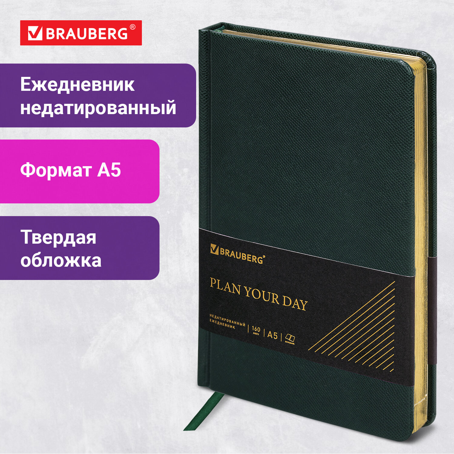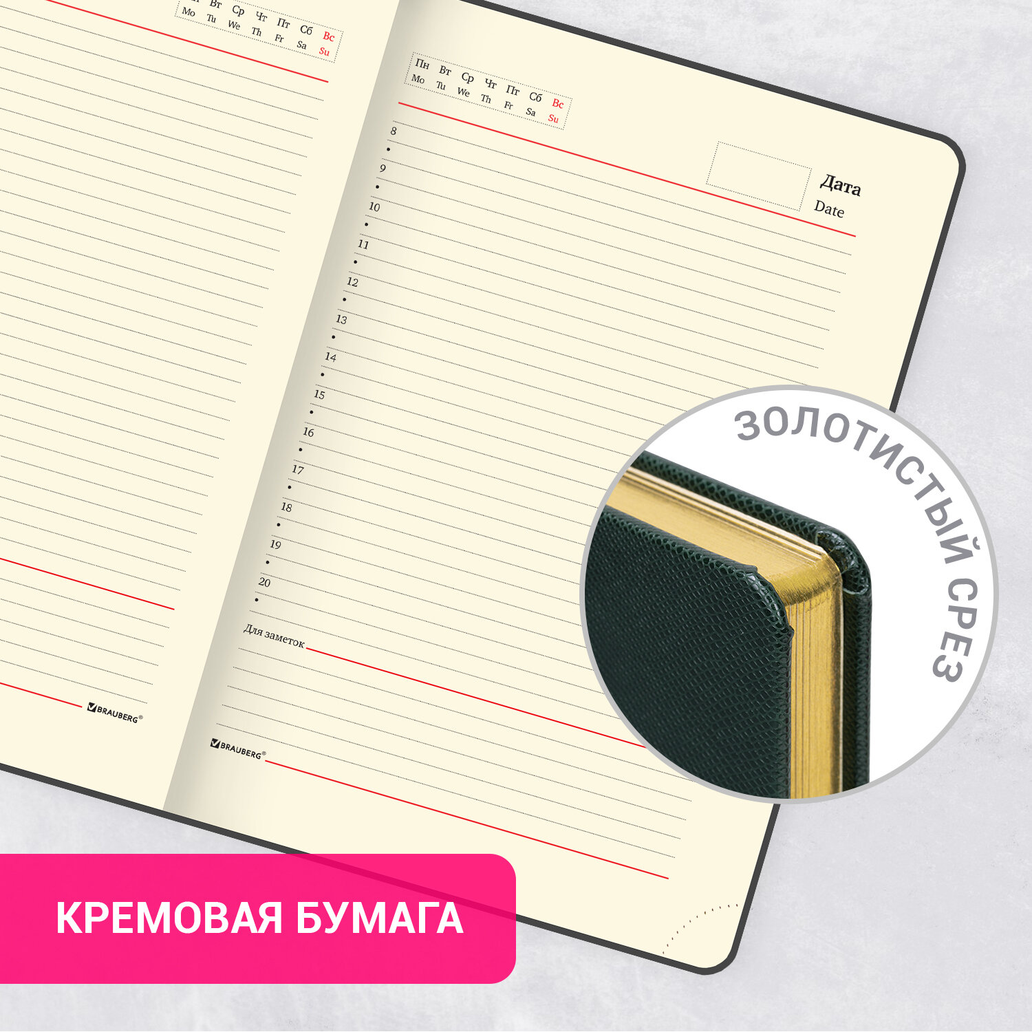 Ежедневник недатированный А5, 138х213 мм, BRAUBERG «Iguana», под кожу, 160 л., тёмно-зеленый, 114457