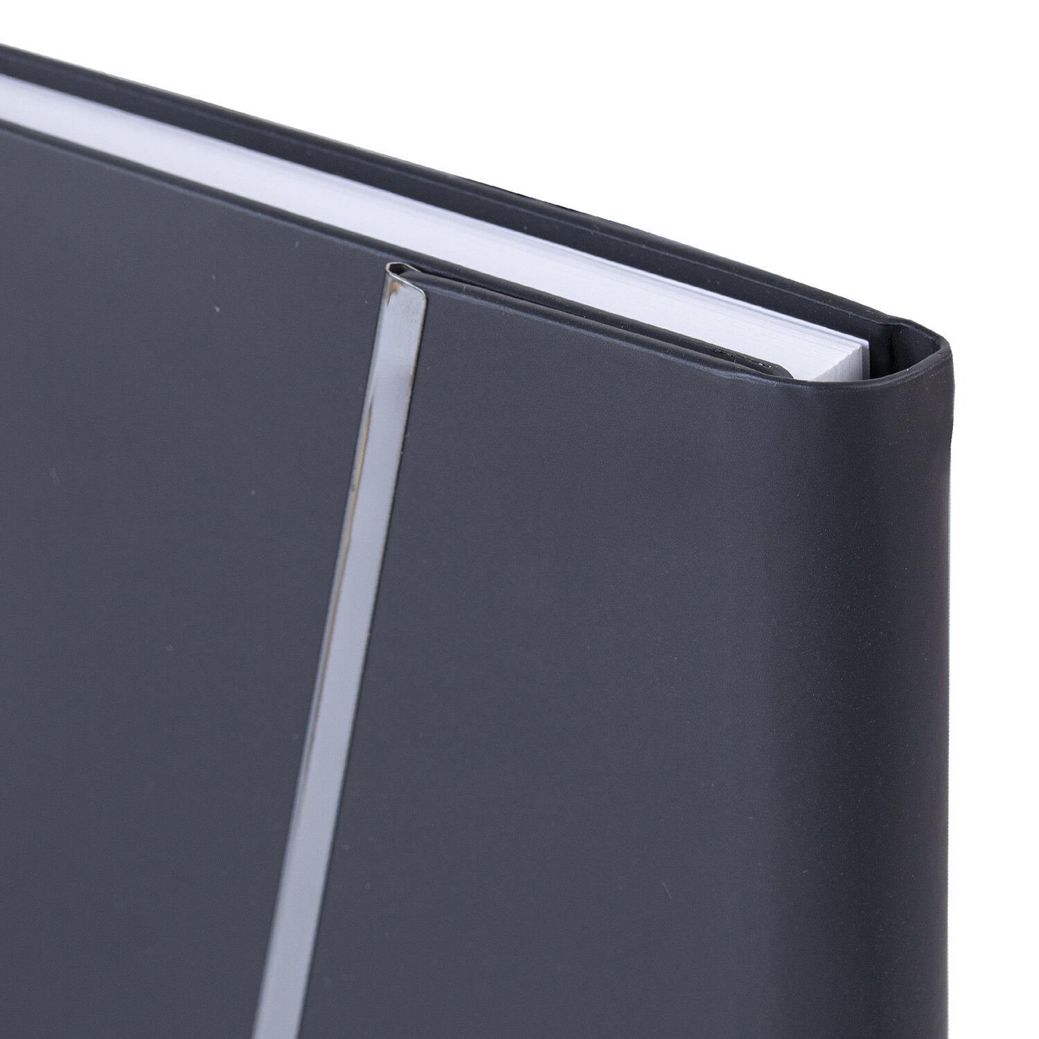 Внутренний блок включает 160 листов белой бумаги плотностью 70 г/м2. Каждая страничка имеет перфорированный угол. Благодаря стандартному формату А5 (145х213 мм) ежедневник удобно использовать как в офисе, так и на выездных деловых встречах. Твердая обложка стилизована под гладкую кожу и имеет стильный магнитный клапан, благодаря чему он не откроется в сумочке или портфеле, и листы не помнутся. Материал обложки подходит для горячего тиснения. Дополнениями являются две закладки-ляссе, с помощью которых при необходимости можно быстро открыть ежедневник на нужной странице. Справочный материал дополнительно расширяет функциональность ежедневника. В конце внутреннего блока есть 7 страниц для записей и заметок.