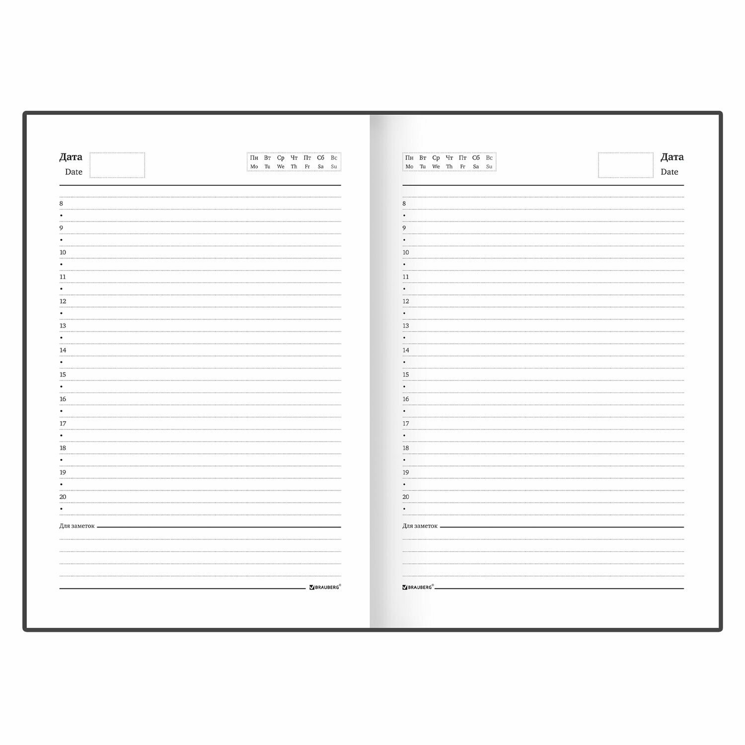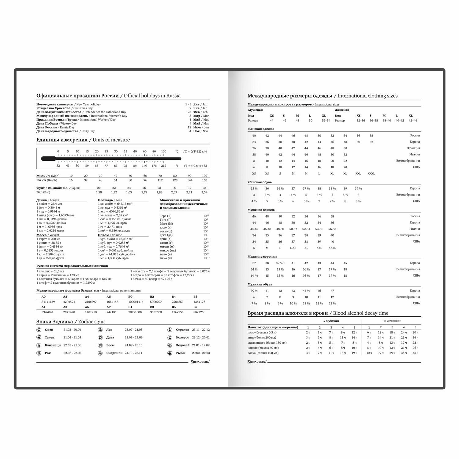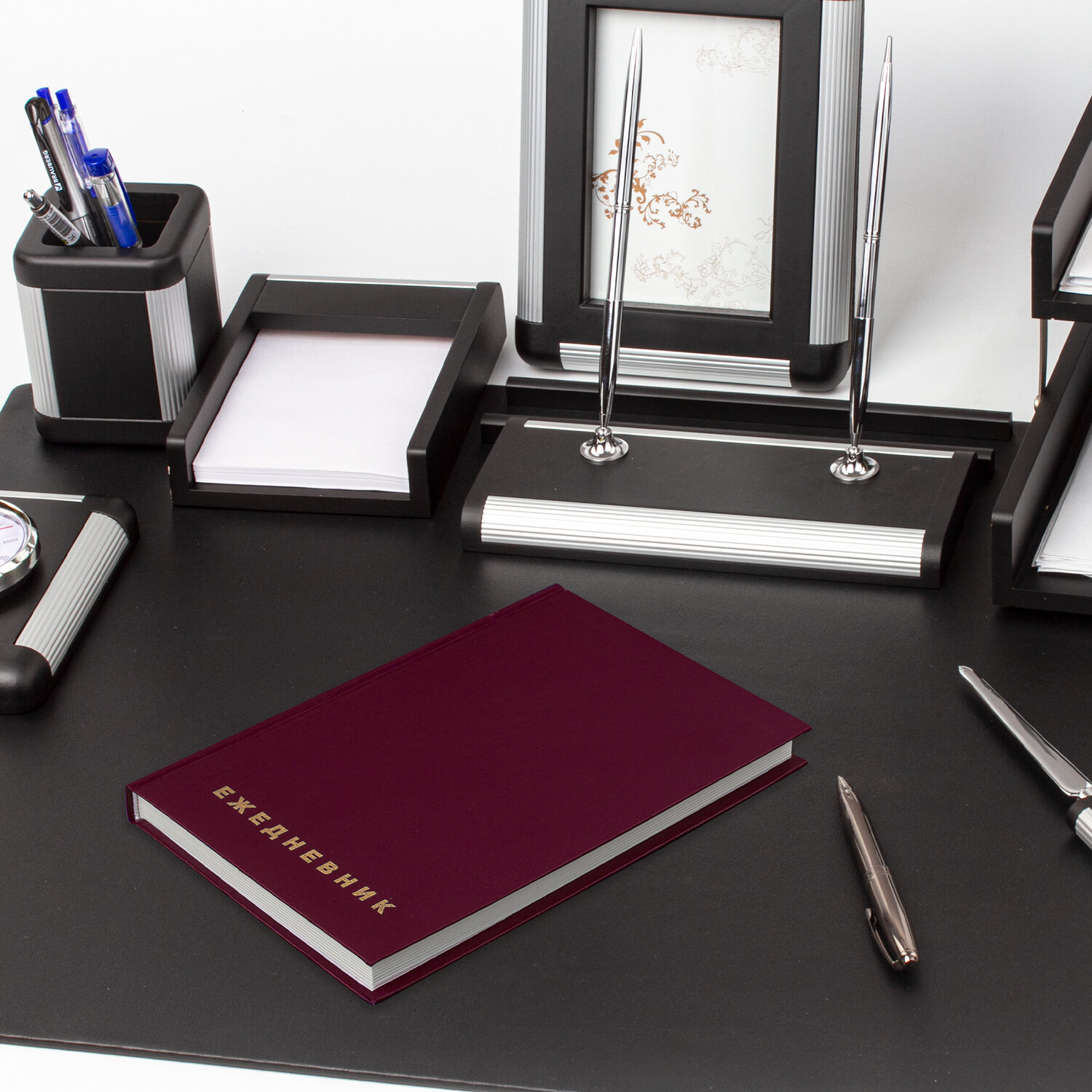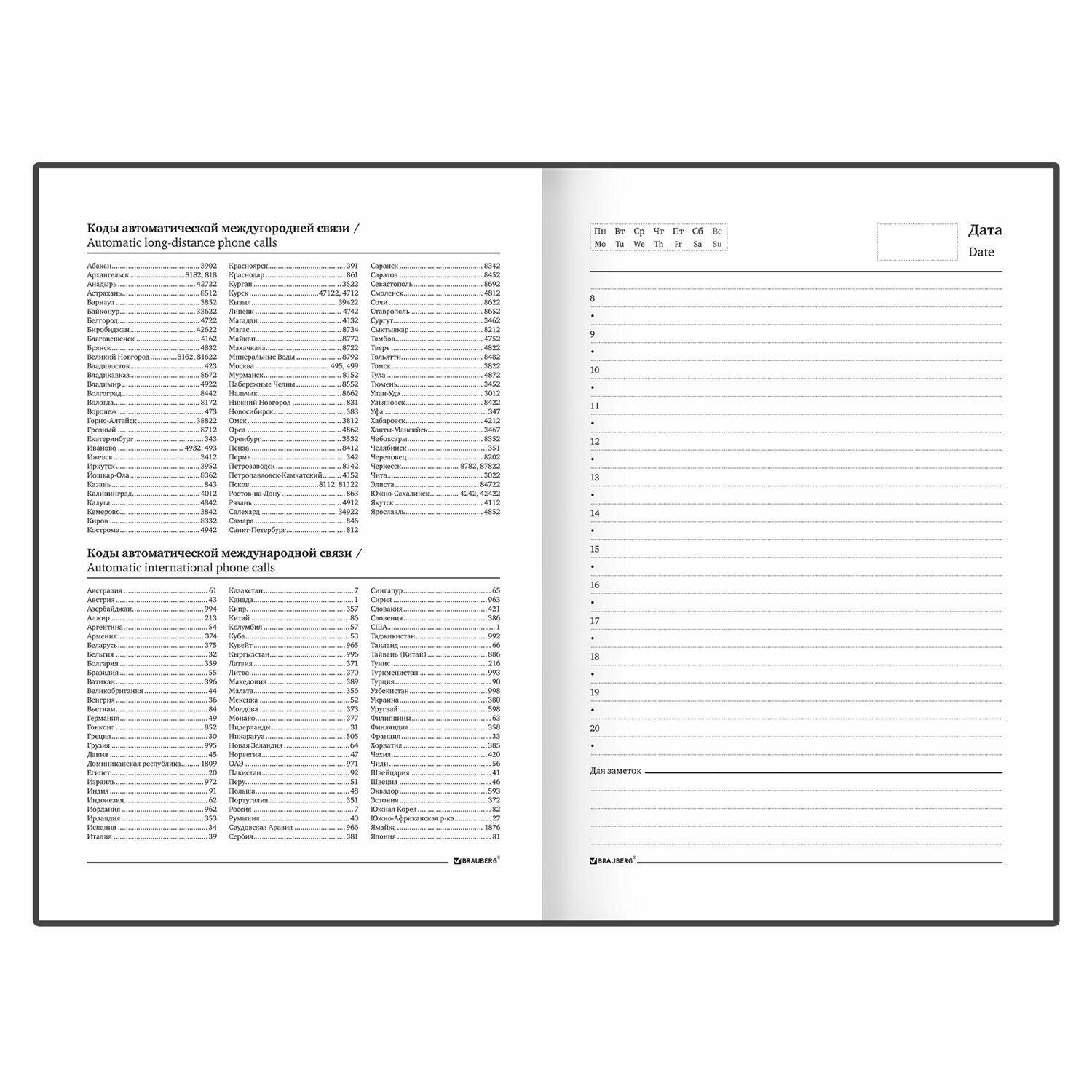 Внутренний блок содержит 160 листов офсетной бумаги плотностью 60 г/м2. Обложка из бумвинила и твердый переплет обеспечивают долгий срок службы. Ежедневник содержит коды городов и телефонную книгу. В конце имеются 8 страниц для записей и заметок. Отличительная особенность – это поля, на которых можно проставить даты. Они не пропечатаны, поэтому владелец может отводить на каждый день сколько угодно листов и записывать все важные сведения.