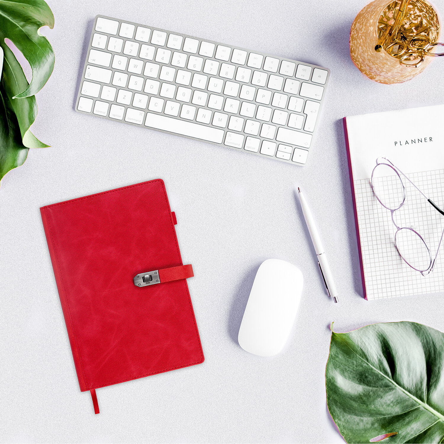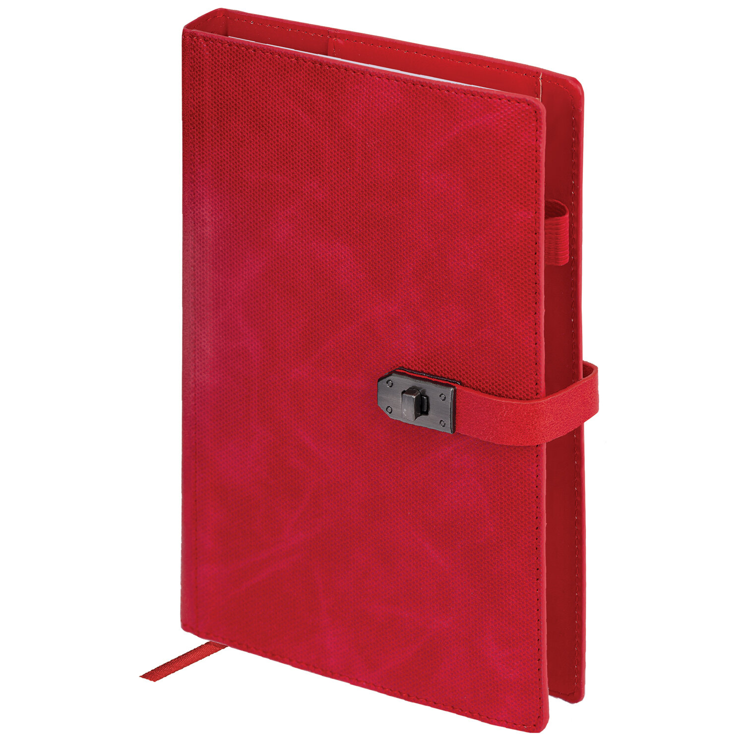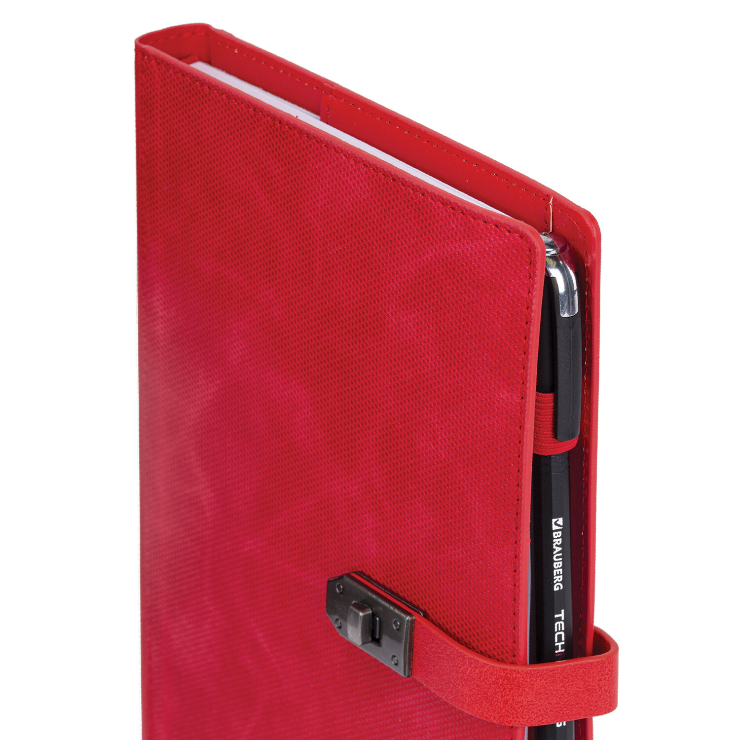 Ежедневник недатированный А5 152х220 мм BRAUBERG «Sirius», под кожу, застежка 160 л., красный, 116212