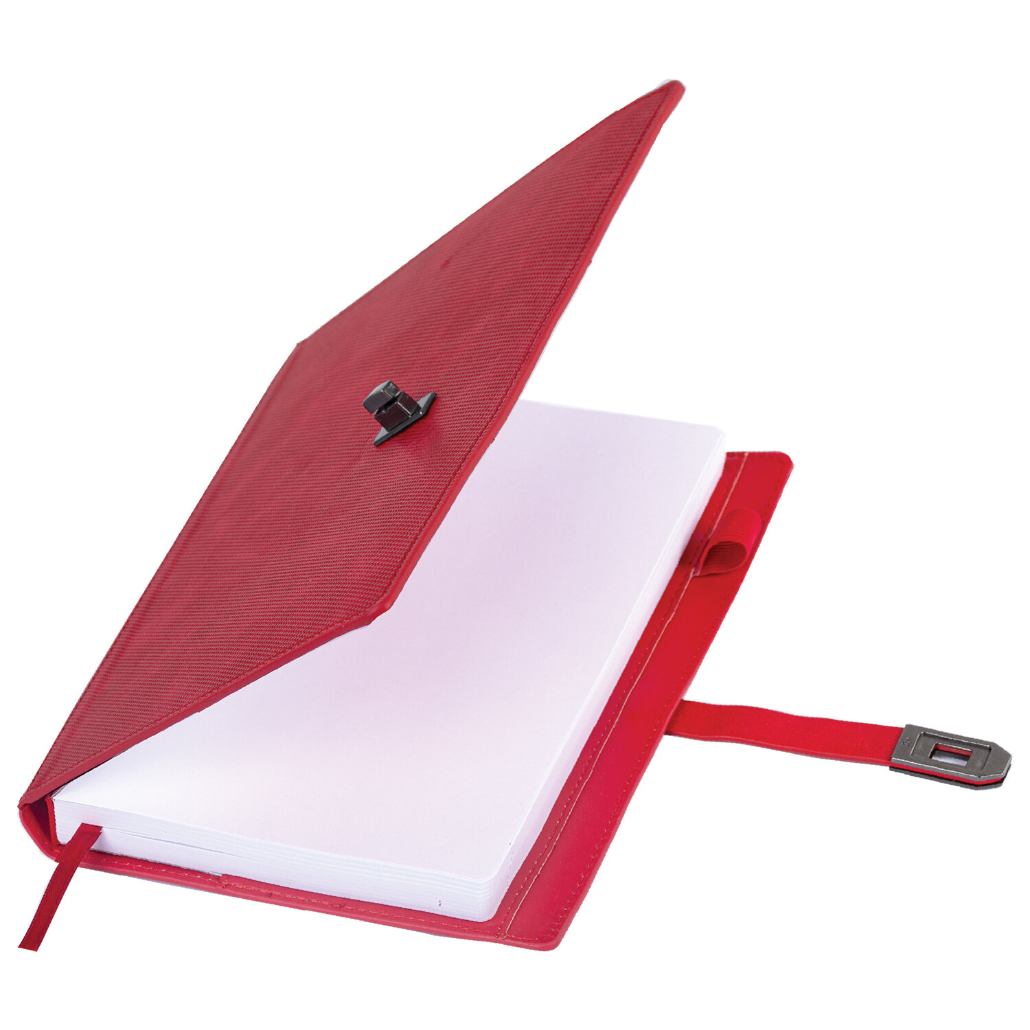 Внутренний блок включает 160 листов белой бумаги плотностью 70 г/м2. Каждая страничка имеет перфорированный угол. Благодаря классическому формату А5 (152х220 мм) ежедневник удобно использовать как в офисе, так и на выездных деловых встречах. Твердая обложка стилизована под текстурную кожу. Материал обложки подходит для горячего тиснения. Ежедневник фиксируется застежкой-ремешком, поэтому не откроется в сумке или портфеле и страницы не помнутся. Дополнениями являются закладка-ляссе, с помощью которой при необходимости можно быстро открыть ежедневник на нужной странице, и держатель для ручки. Имеется органайзер с несколькими отделениями для карт, визиток или купюр. Справочный материал дополнительно расширяет функциональность ежедневника. В конце внутреннего блока есть 7 страниц для записей и заметок.