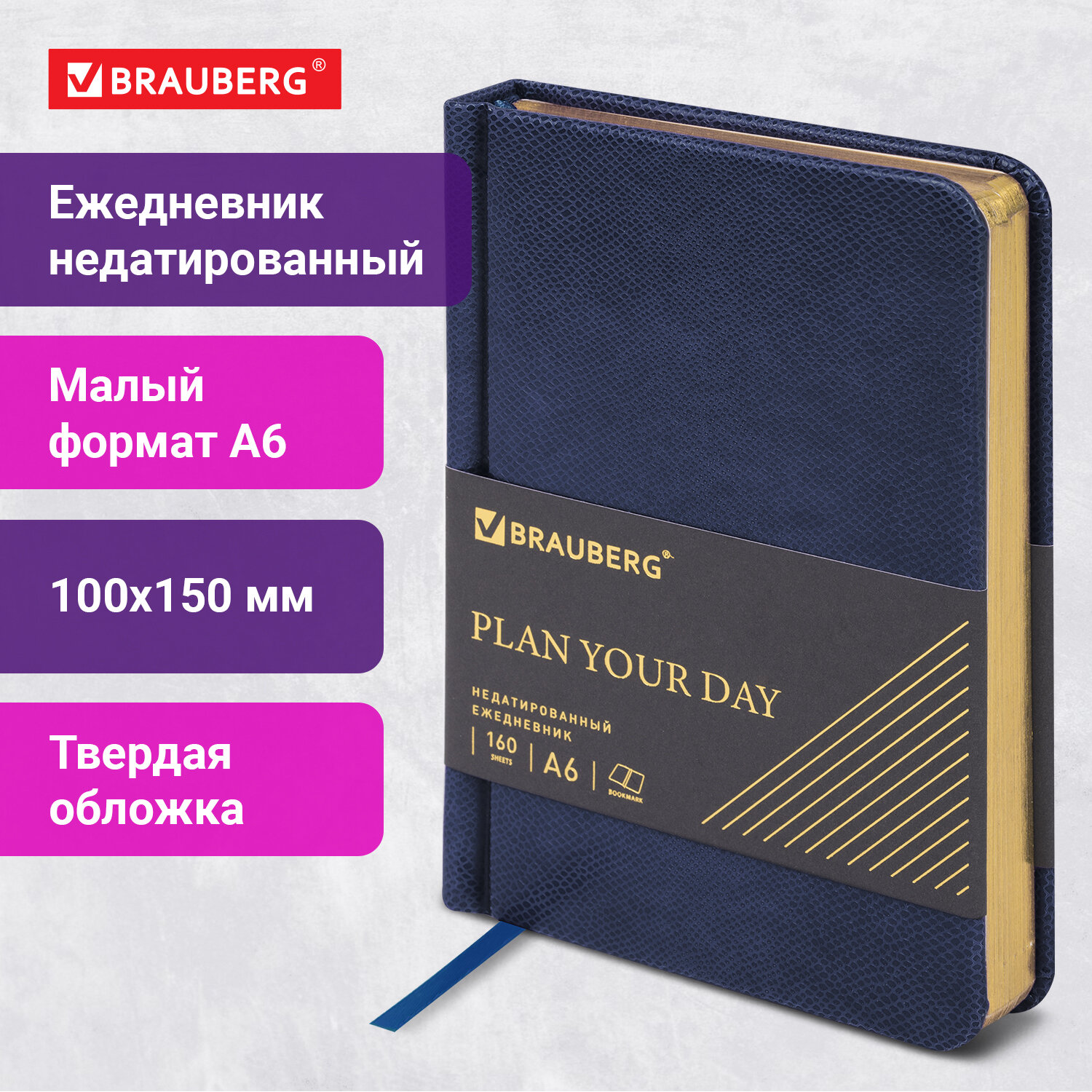 Ежедневник недатированный МАЛЫЙ ФОРМАТ 100×150 мм, А6, BRAUBERG «Iguana», под кожу, 160 л., синий, 114467