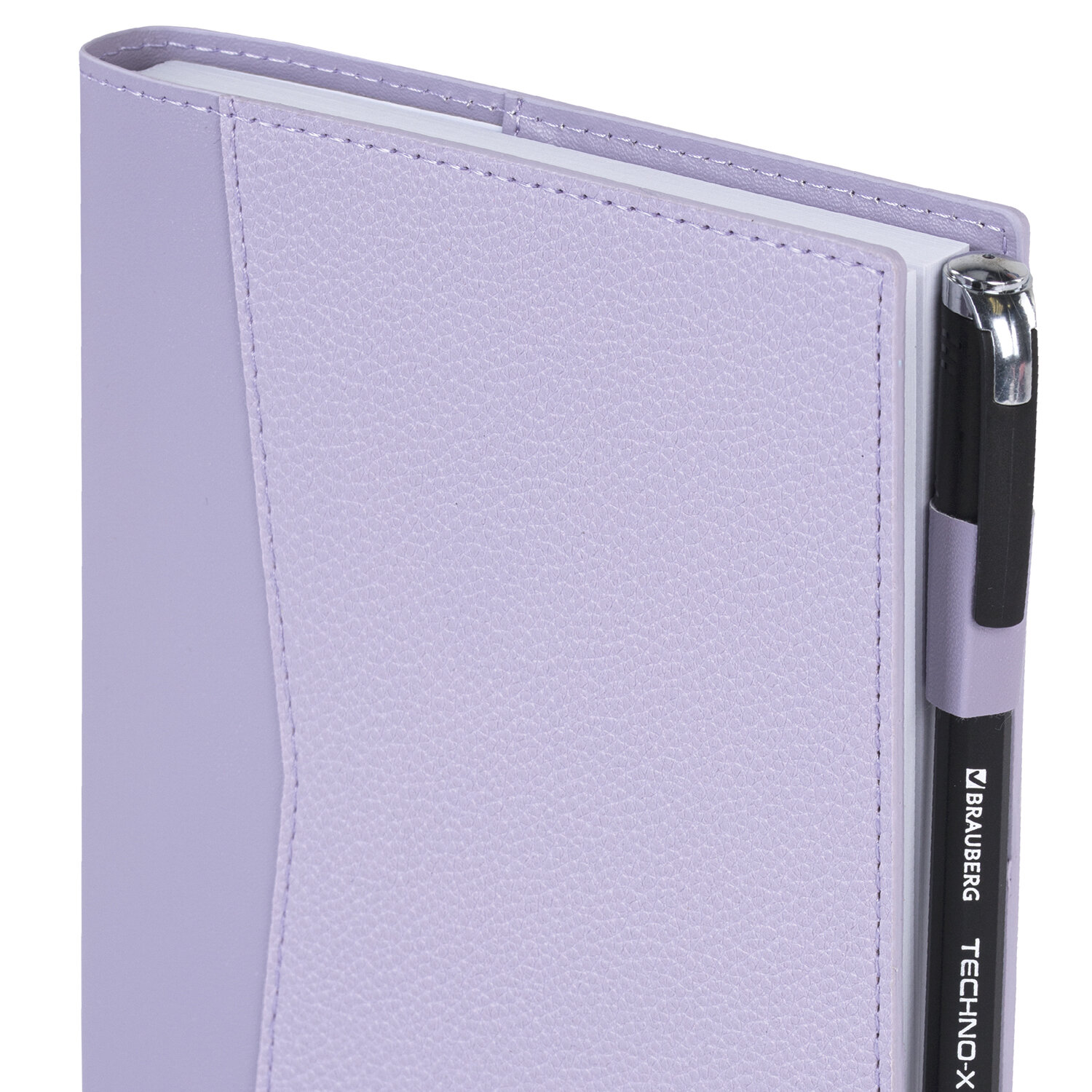 Ежедневник недатированный В6 130х185 мм BRAUBERG «Glam», под кожу, 160 л., сиреневый, 116221